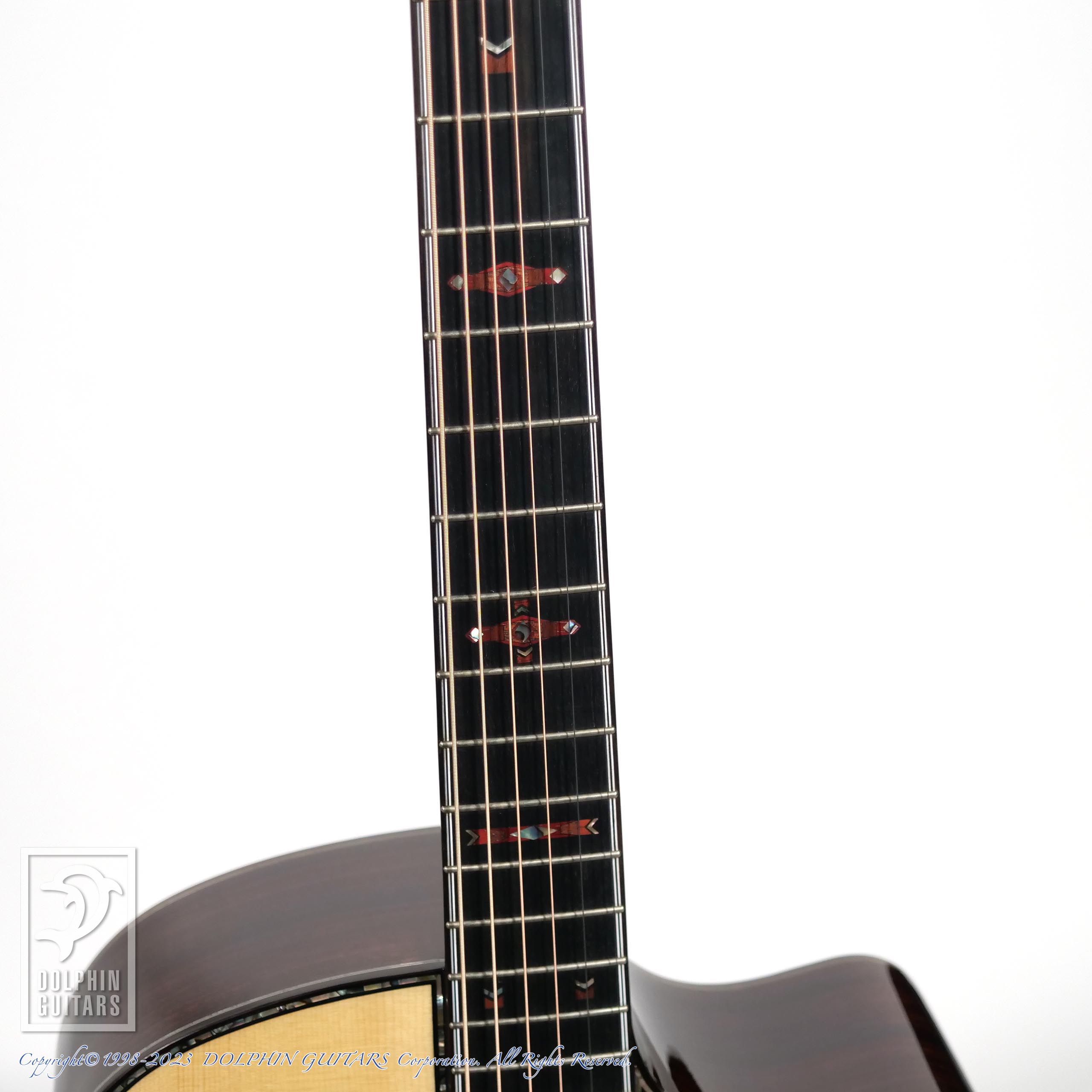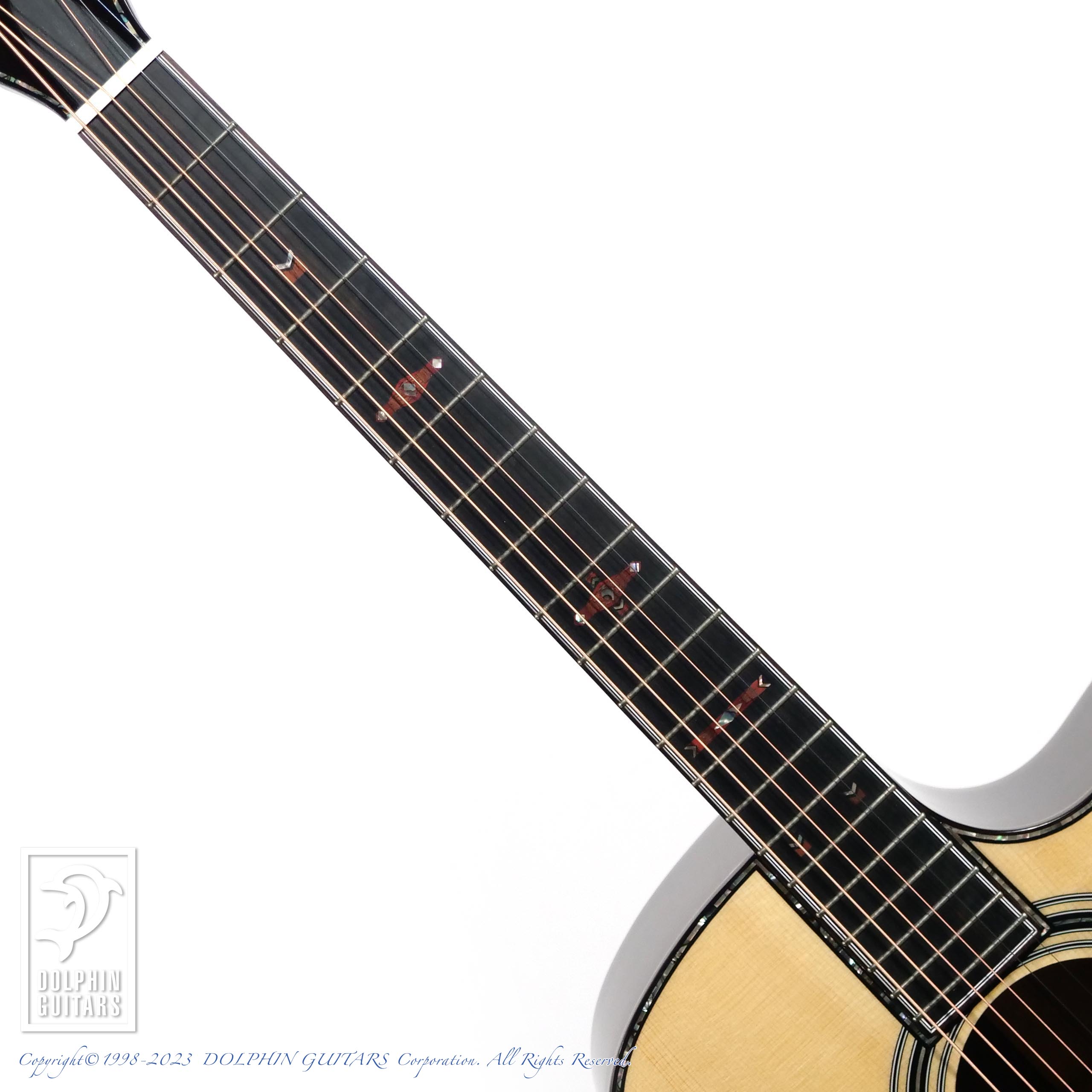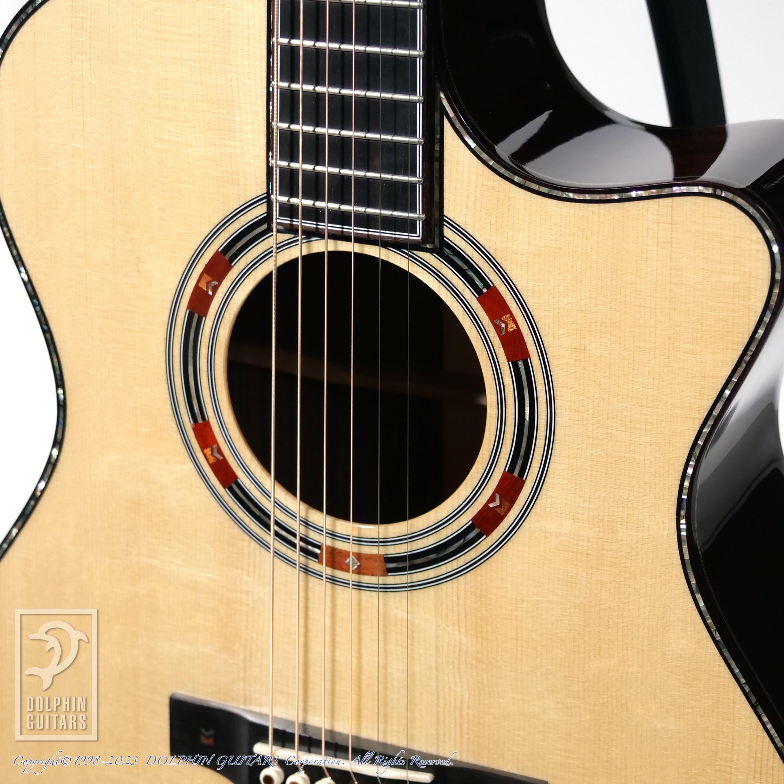 OMを一回り大きくしたグランドオーディトリアムシェイプは、適度な厚みで抱えやすさと低域の特性を併せ持った美味しいとこどりのボディ。輪郭のハッキリとした高音域とタイトな低音はフィンガースタイルに見事にマッチするでしょう。