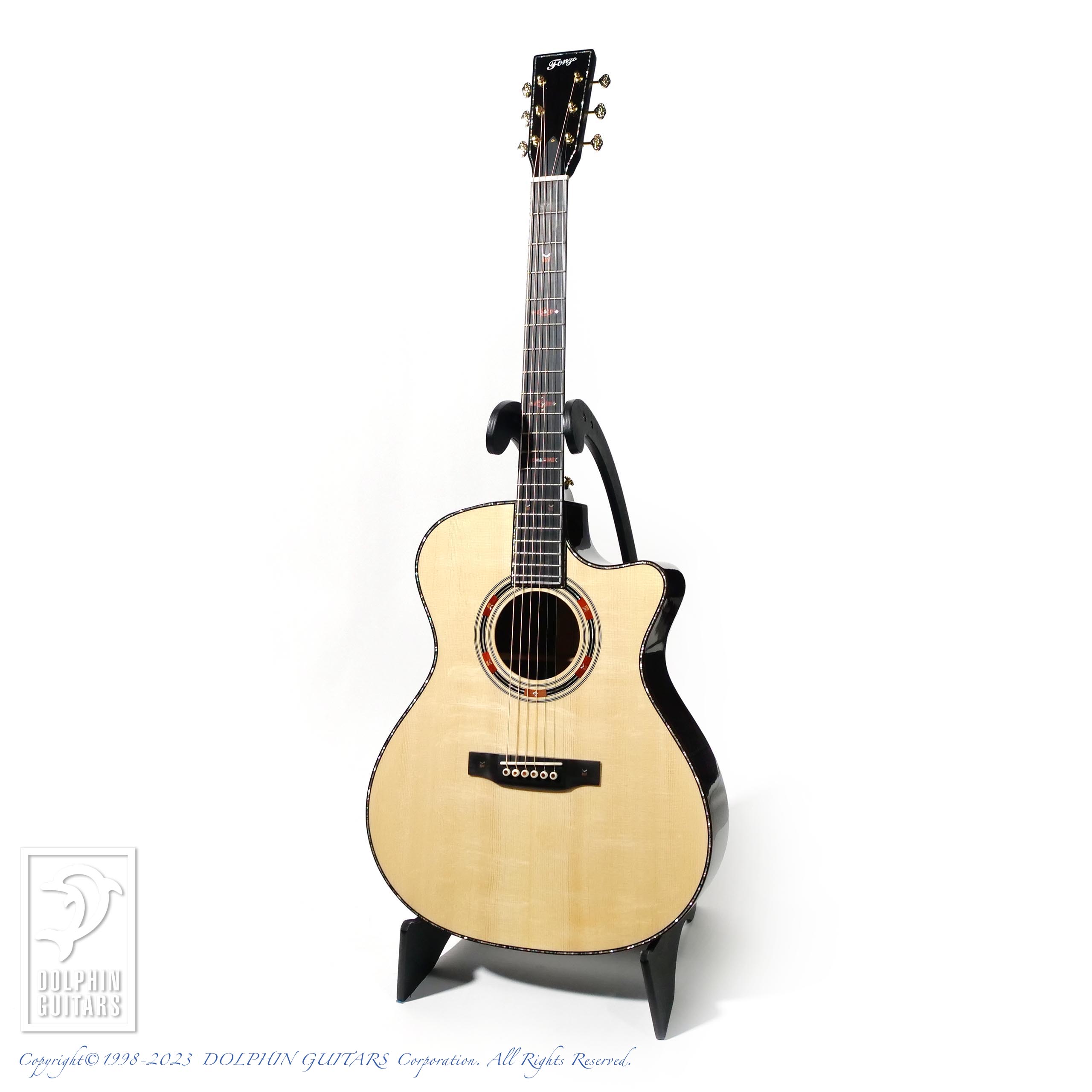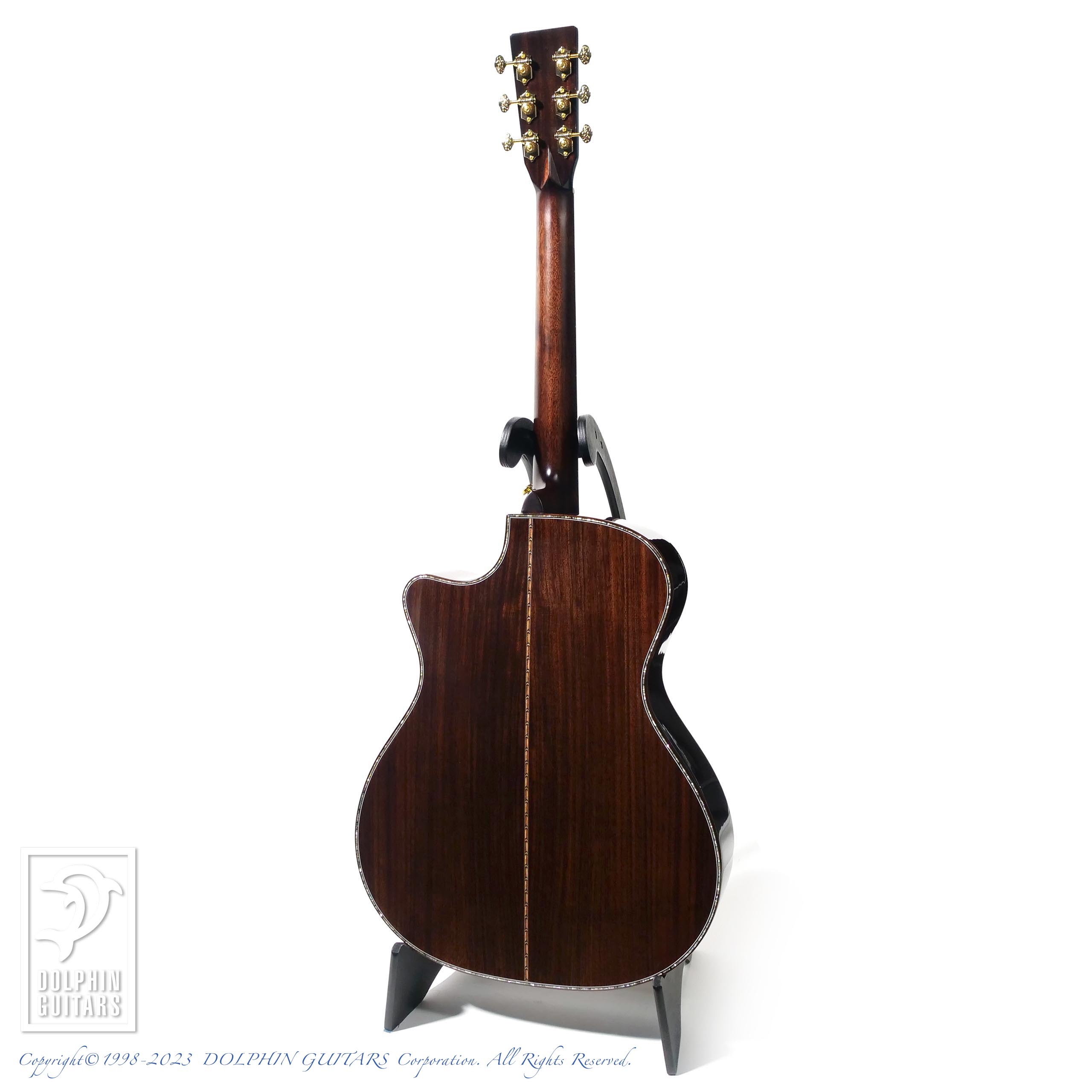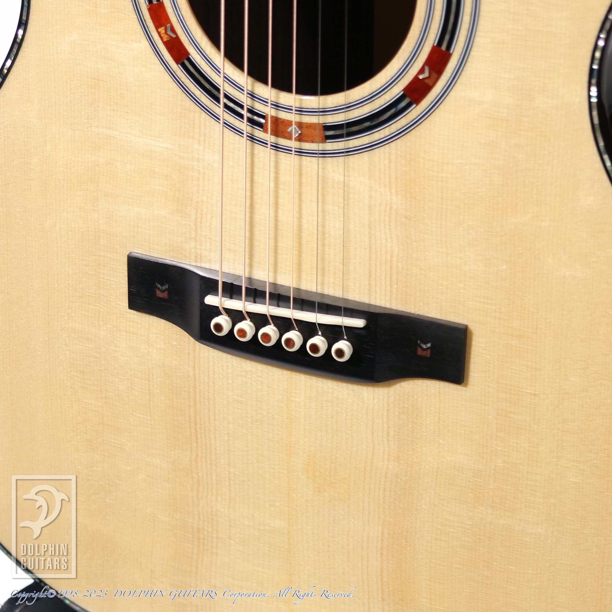 OMを一回り大きくしたグランドオーディトリアムシェイプは、適度な厚みで抱えやすさと低域の特性を併せ持った美味しいとこどりのボディ。輪郭のハッキリとした高音域とタイトな低音はフィンガースタイルに見事にマッチするでしょう。