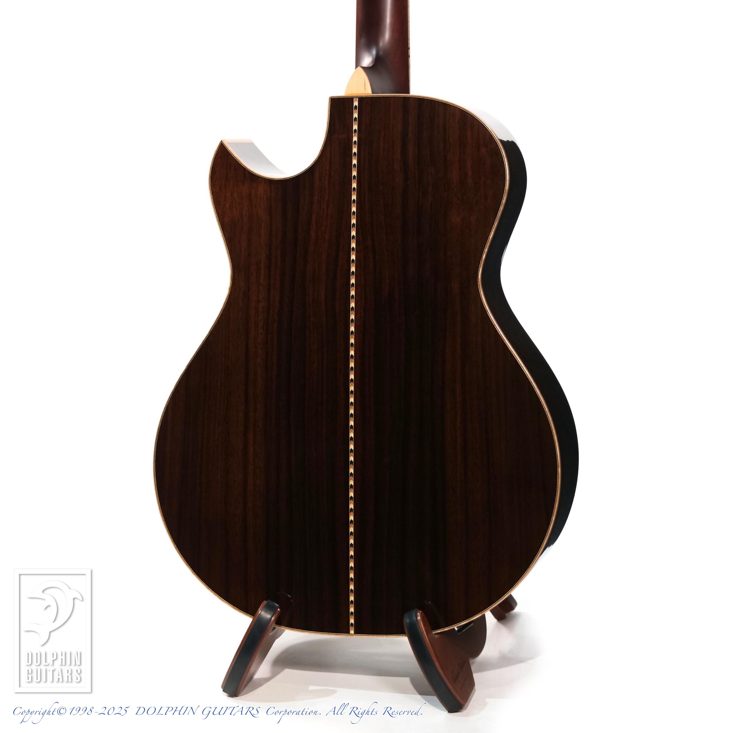 エカチャイ・ジィヤクン氏が使用するジェームズ・オルソンのSJに由来するシェイプは、1音1音のタイトさもありながら、低音域のふくよかさもあるサウンドにつながっています。オルソン氏の意匠であるダヴインレイも施されている本モデルは何か特別なオーラすら感じます。