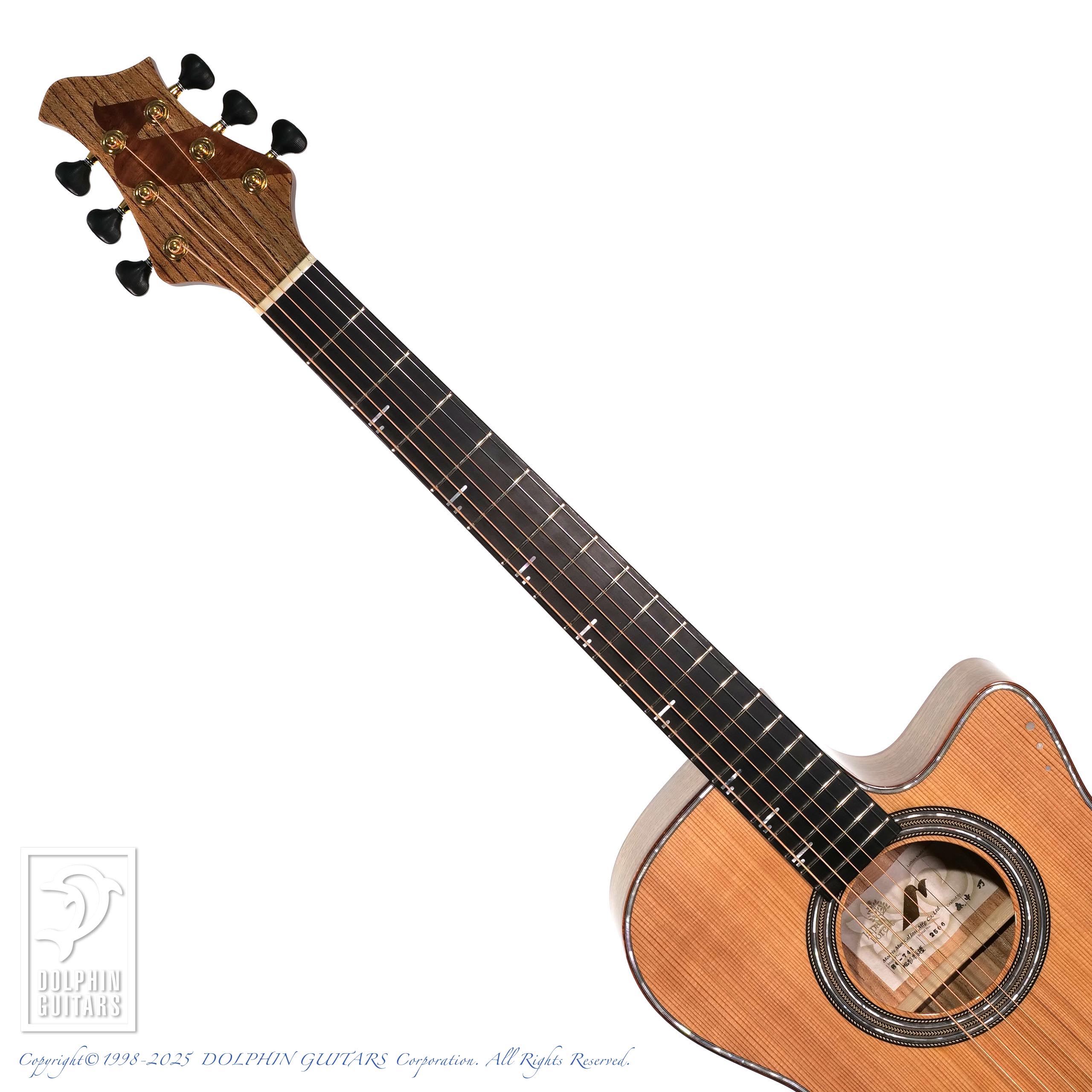 ギター界で杉と聞くと、ウェスタンレッドシダーをイメージしますが、こちらはヒノキ科ネズコ属。これは明治時代に国産杉の代替え材として輸入された時、見た目が杉に似ているため"米杉"と呼ばれたことに由来しており、本器に使われている国産地杉は学名:Cryptomeria japonicaの示す通り、スギ属の日本の固有種です。