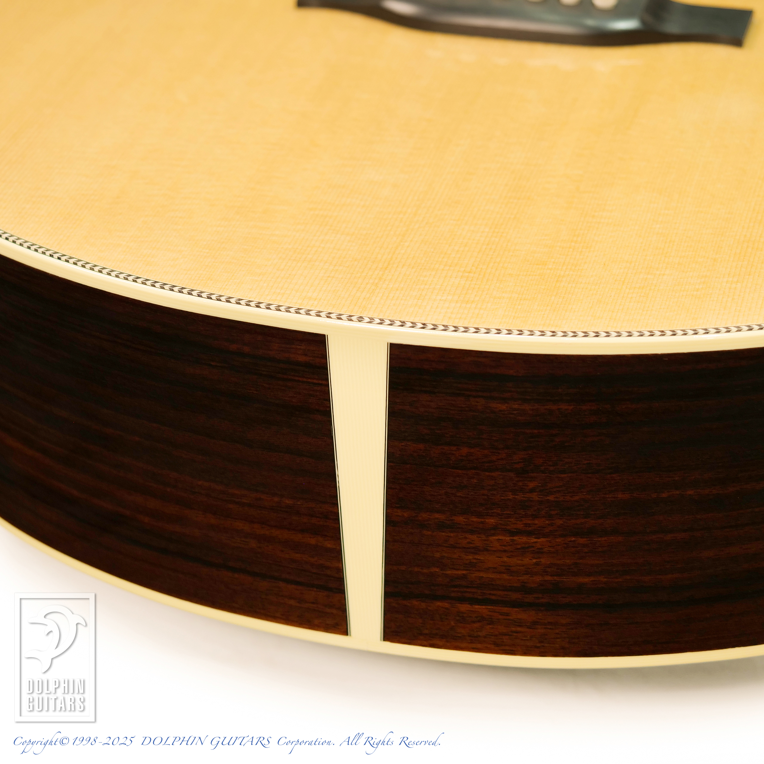 トップのルッツスプルース、サイドバックのインディアンローズは共に最高グレードを採用。