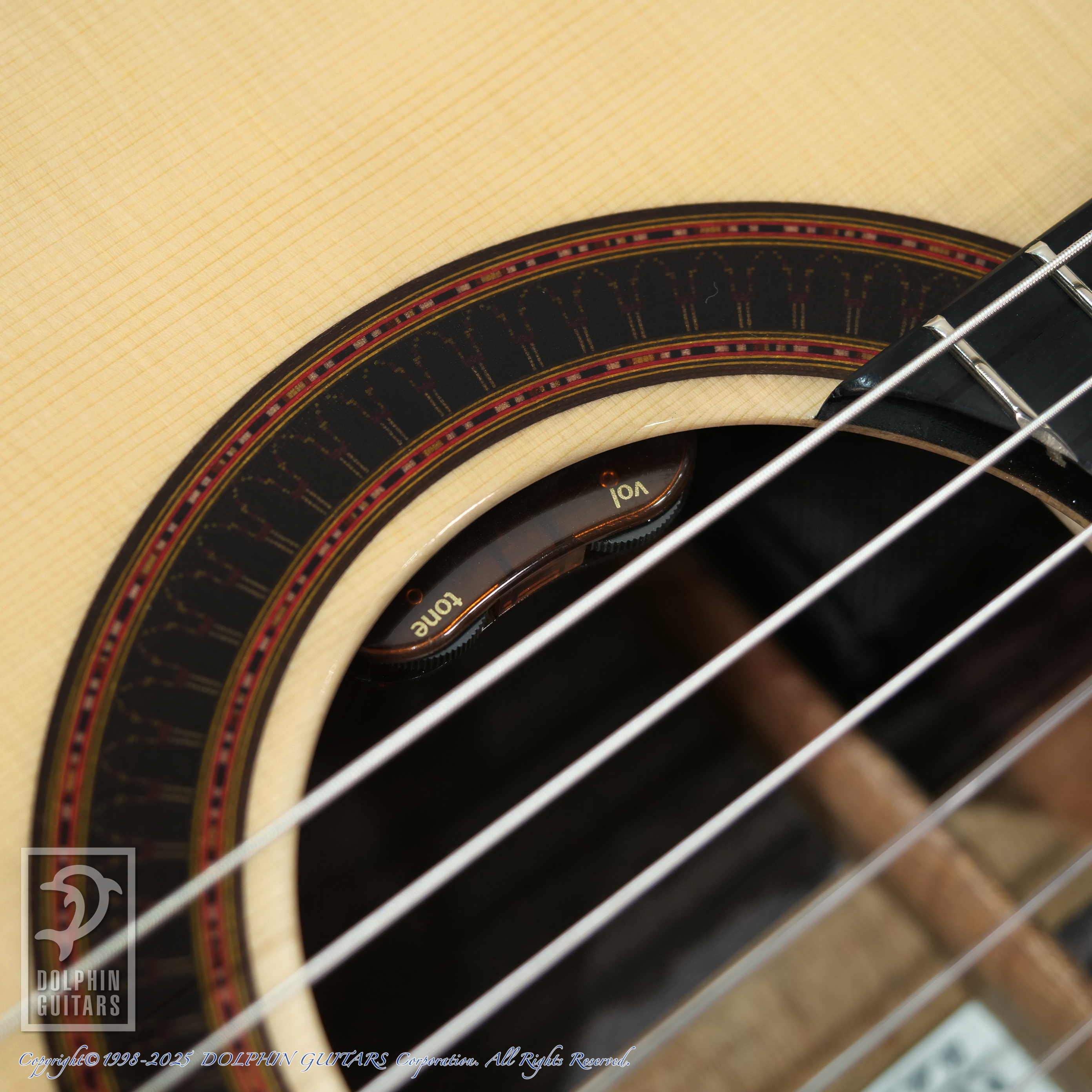 ピックアップはL.R.Baggs Element VTCを搭載。シンプルなピエゾ一発ですが、こちらのエレメント素子はナイロン弦と相性抜群で、生々しさと芯の太さ、反応の良さが特徴です。
