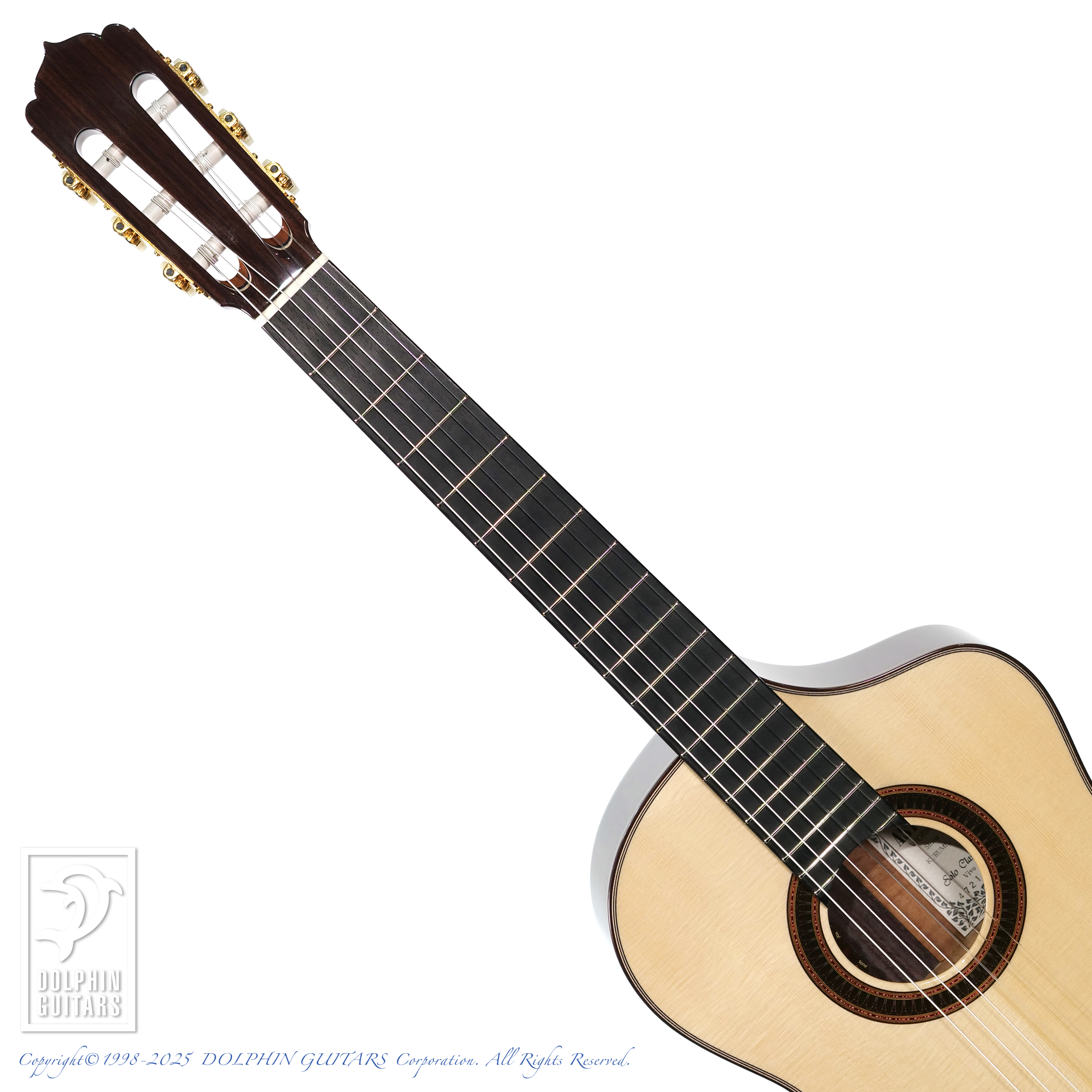 本格エレガット、Solo Classicoの特注薄ボディモデル、その名もVivo。美しいジャーマンスプルースの王道仕様。