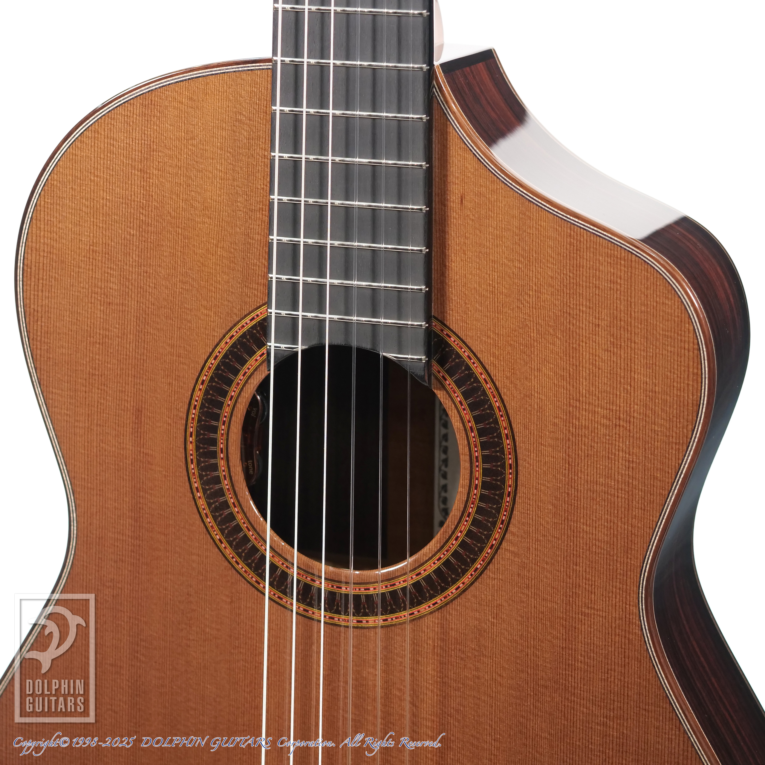 滑らかなカーヴのナローカッタウェイを採用し、サイドポジションの付いたスリムなカスタムネックも相まって鉄弦からの持ち換えにも違和感なくお使いいただけるでしょう。