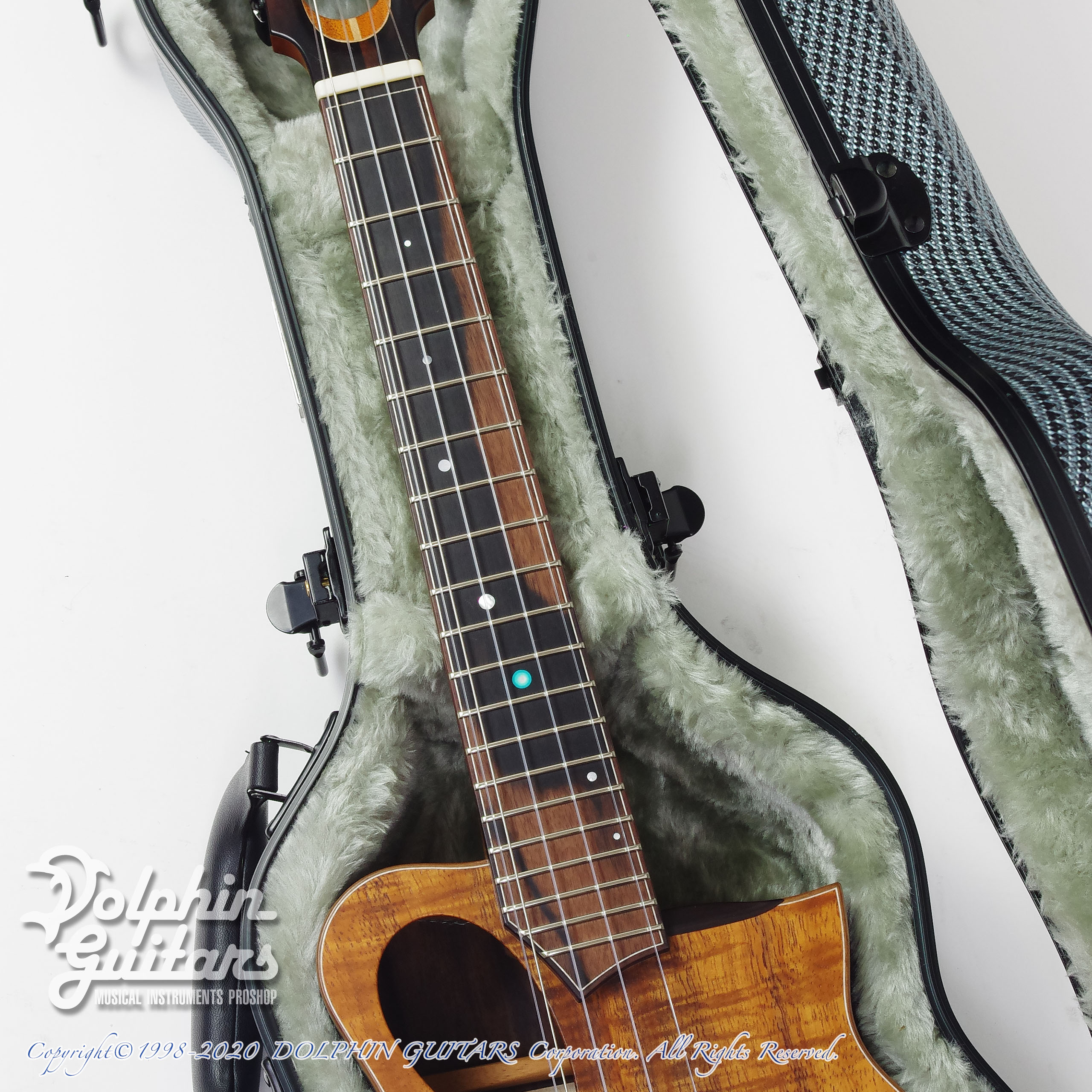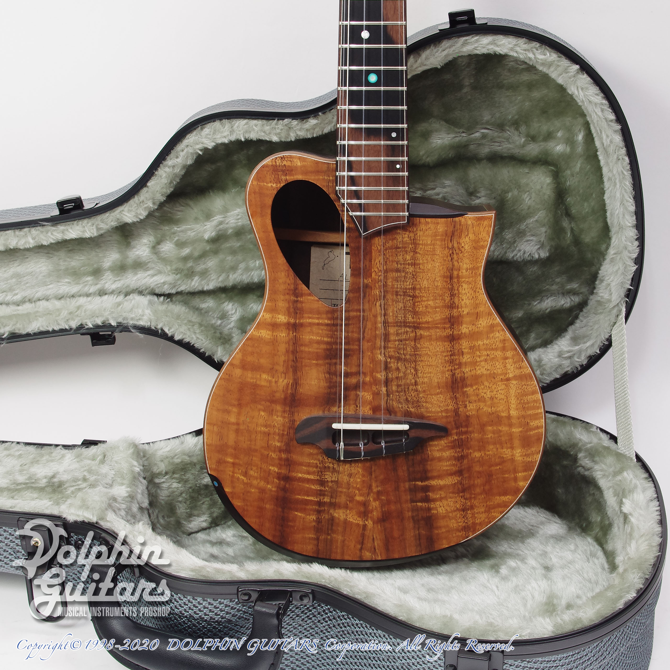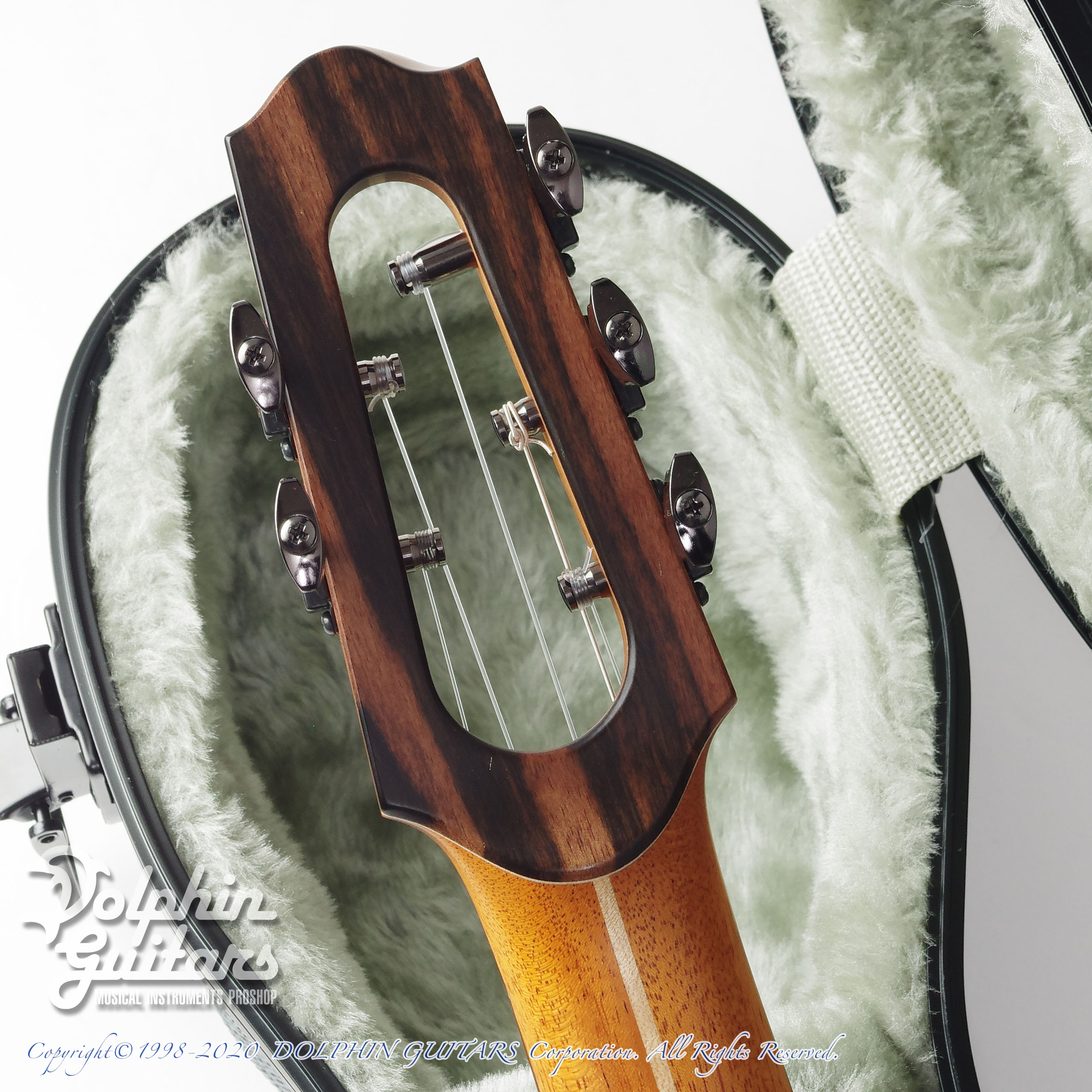 指板はフラットではなく僅かにR加工を施しており、従来のウクレレと比較しましても押さえ心地の違いを感じるかと思います。オクターヴピッチの精度も高く、表現力豊かな素晴らしい個体です。左右非対称のボディやブリッジシェイプ、モデル名を表すヘッドシェイプ、コンター加工などなど、ありとあらゆる拘りを詰め込んだ巨匠の作品です。ぜひお試しください。