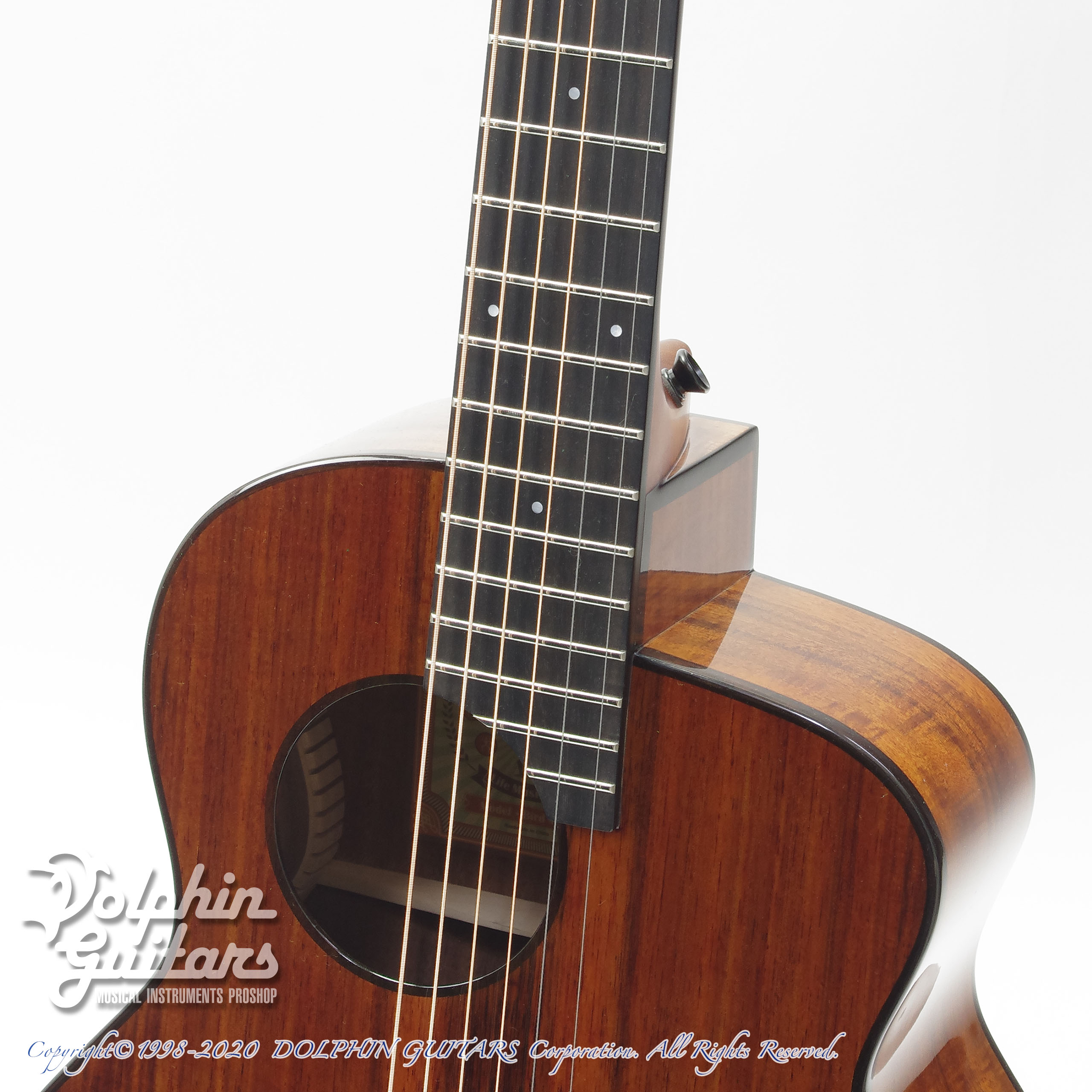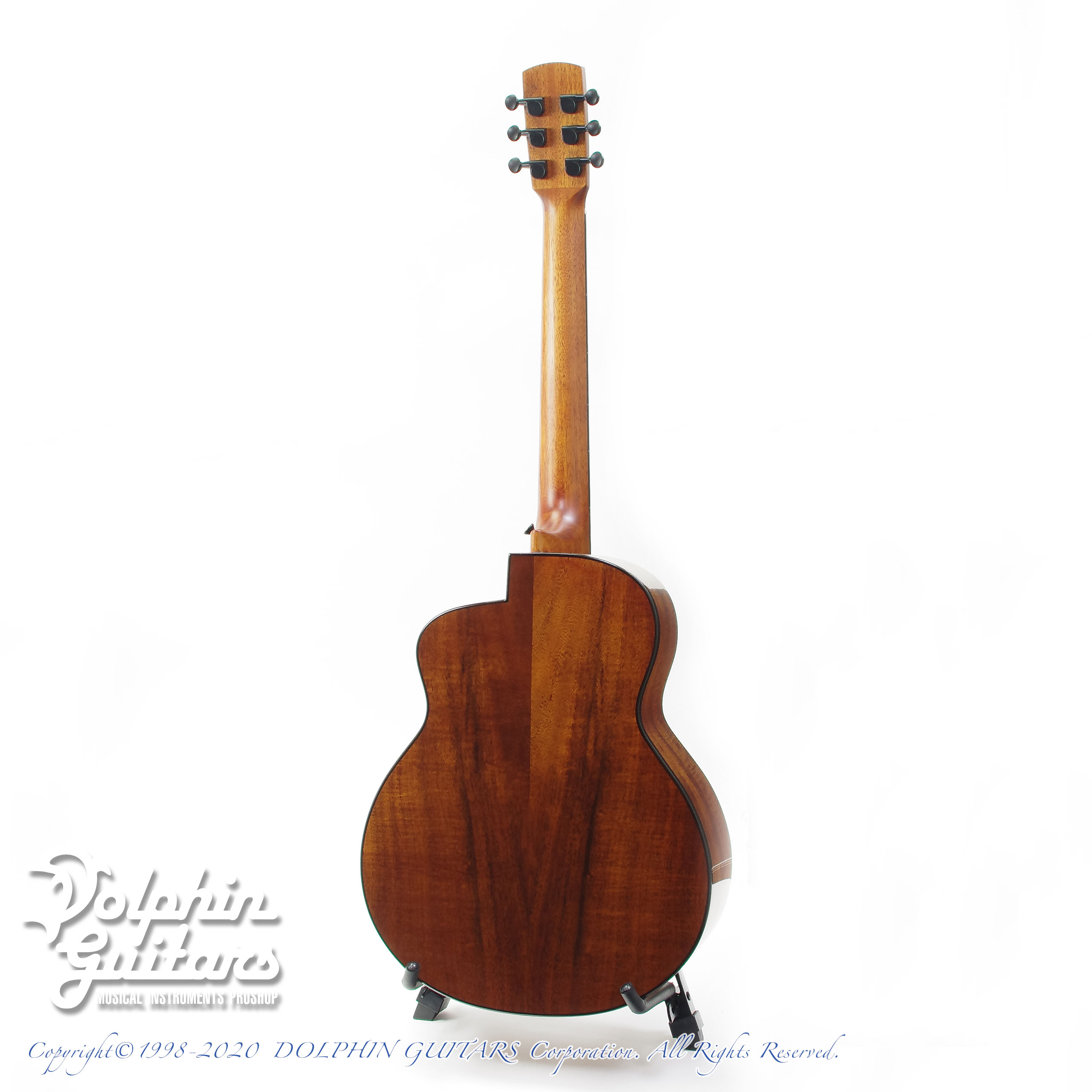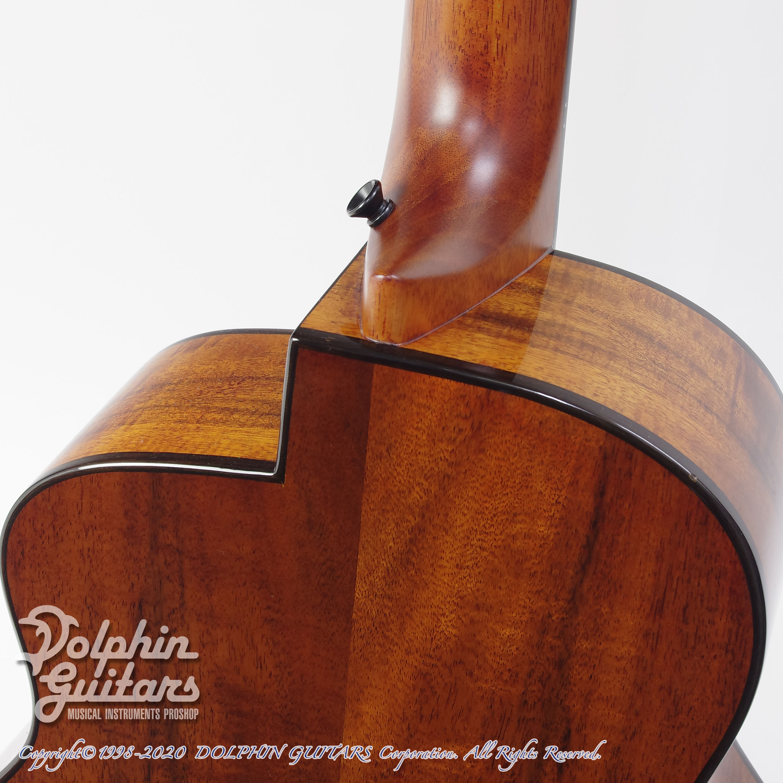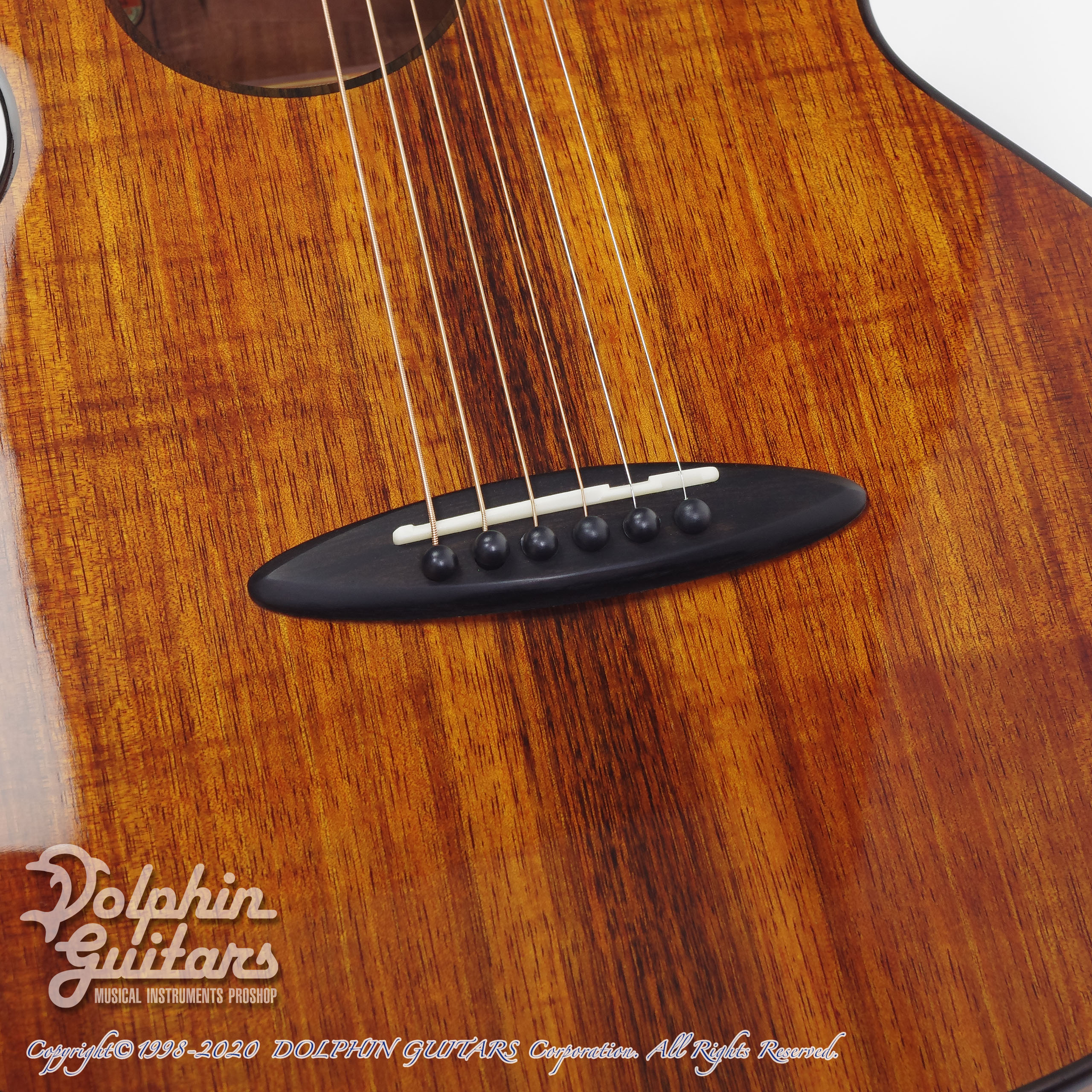 希少なコア材を単板でトップに、サイドバックにはコアので同種であるアカシアを採用。指板、ブリッジのエボニーとのコントラストが高級感を演出しています。ローズバインディングも質感良しです。