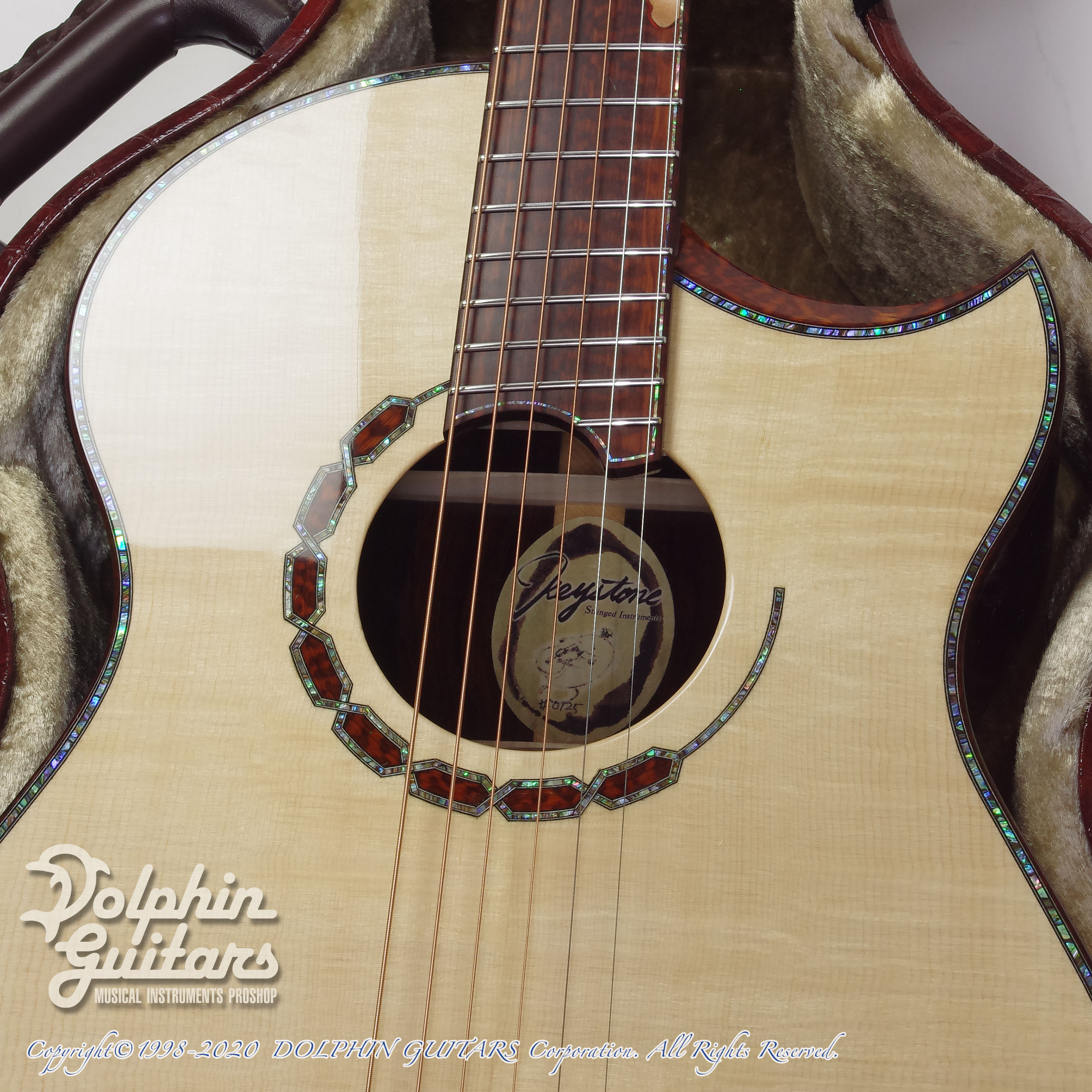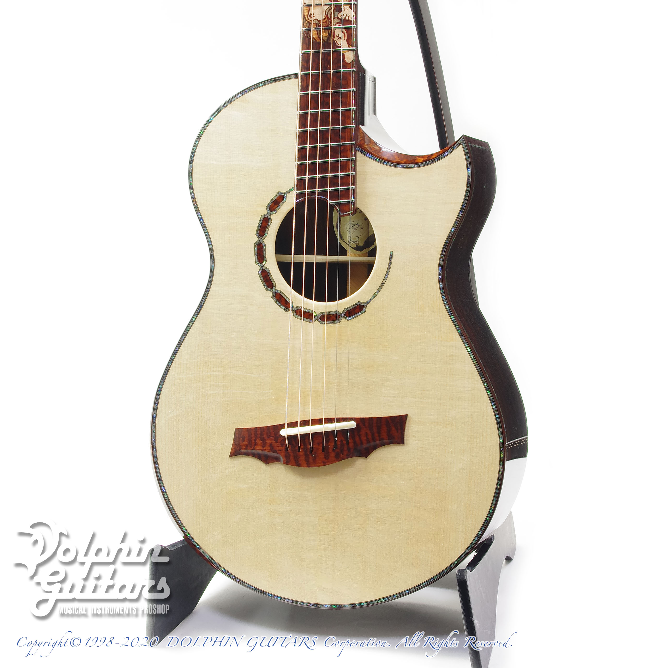 トップは色白できめ細く美しいジャーマンスプルース、フローレンタインカッタウェイ部にもコンター加工を施しております。