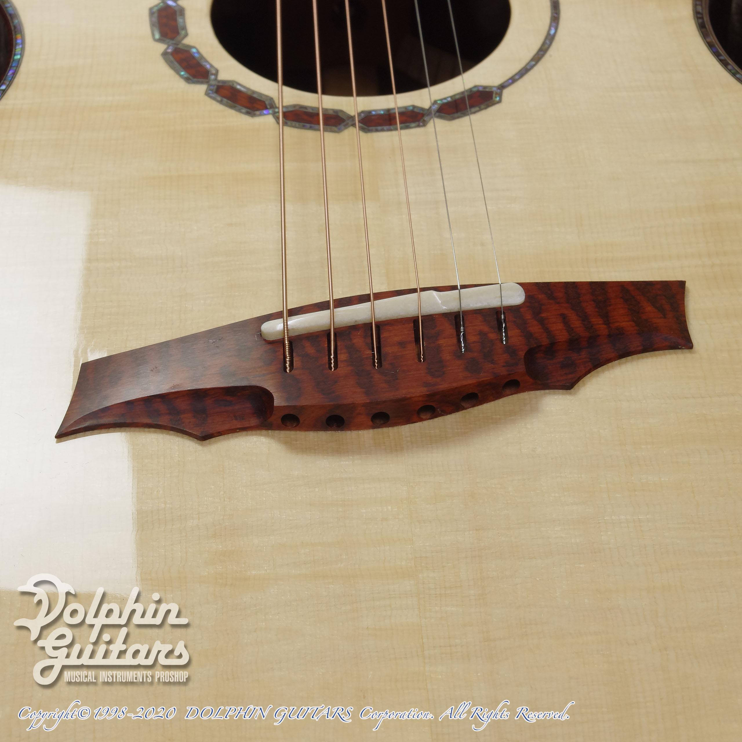 サイドサウンドホールのオプションも加わり、弾き手自身へのモニターともなります。メインとサイド2つのサウンドホールから放たれるステレオ感を楽しめるこの仕様は現在最もご希望の多いオプションの一つです。