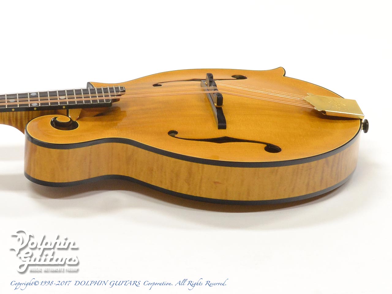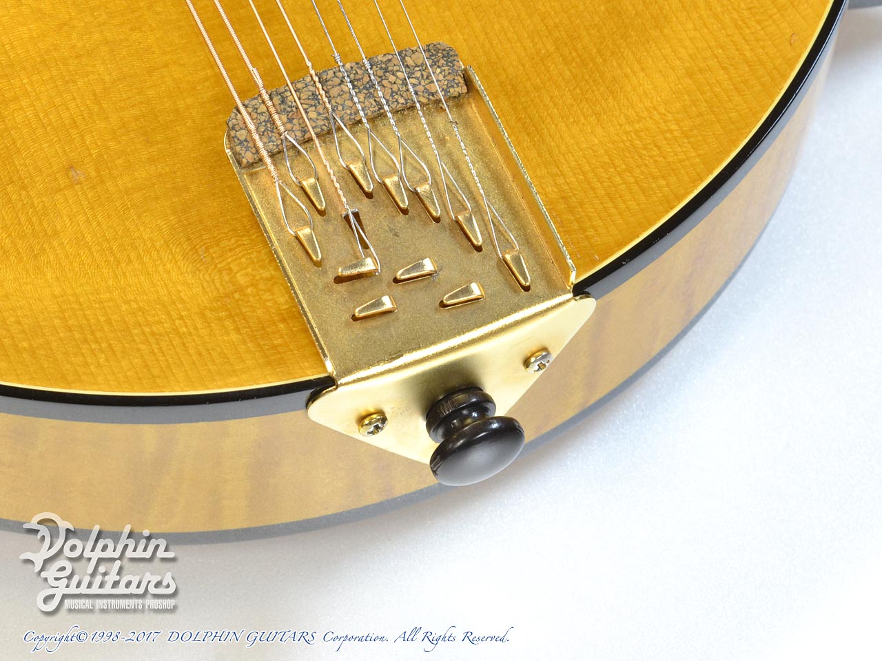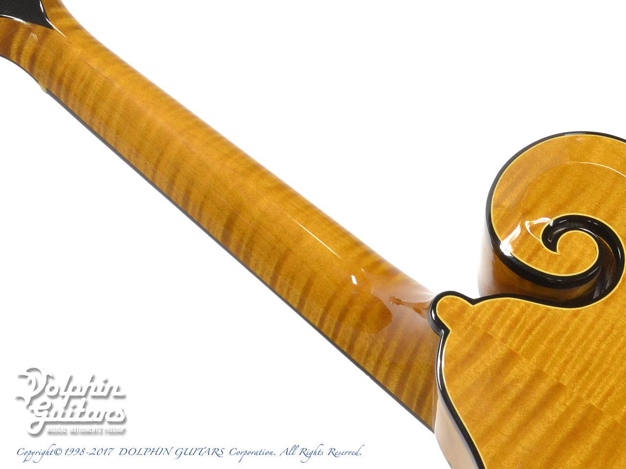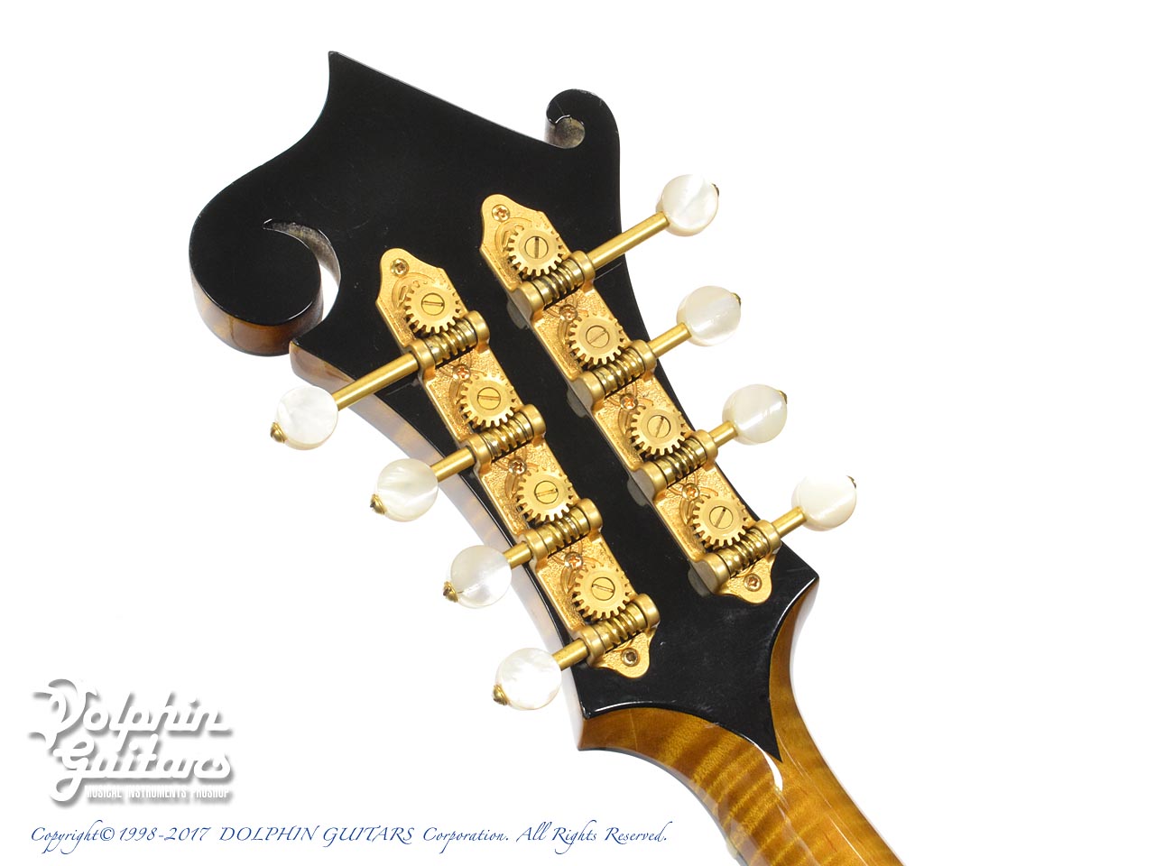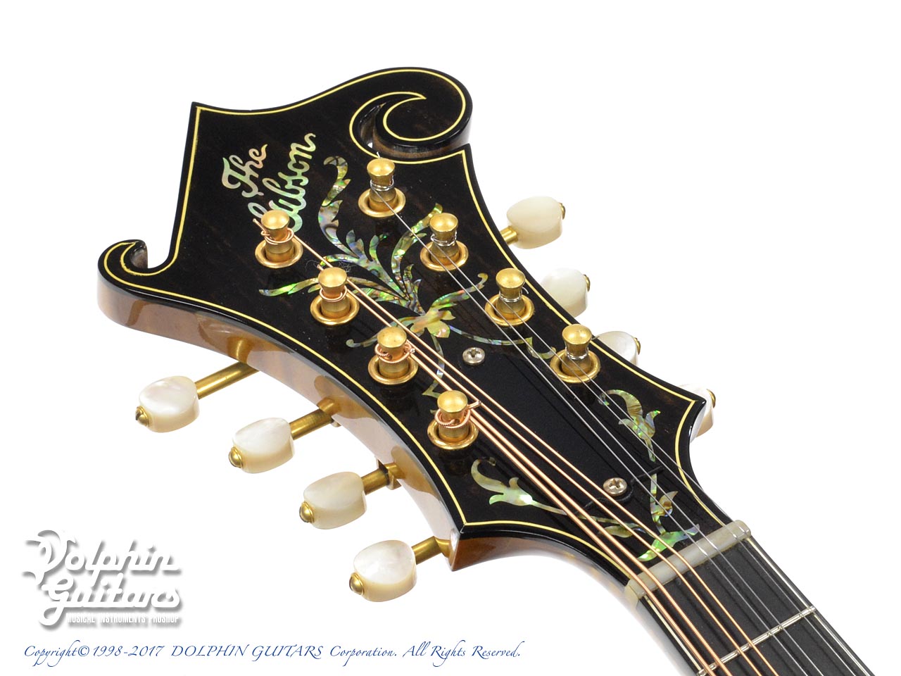 ナチュラルフィニッシュのF-5、Goldrushは、黄金色にカラーリングされたボディとゴールドパーツのコンビネーションが非常に綺麗な仕上がり、またヘッドに施されたファーンインレイの美しさは見るものを魅了します。