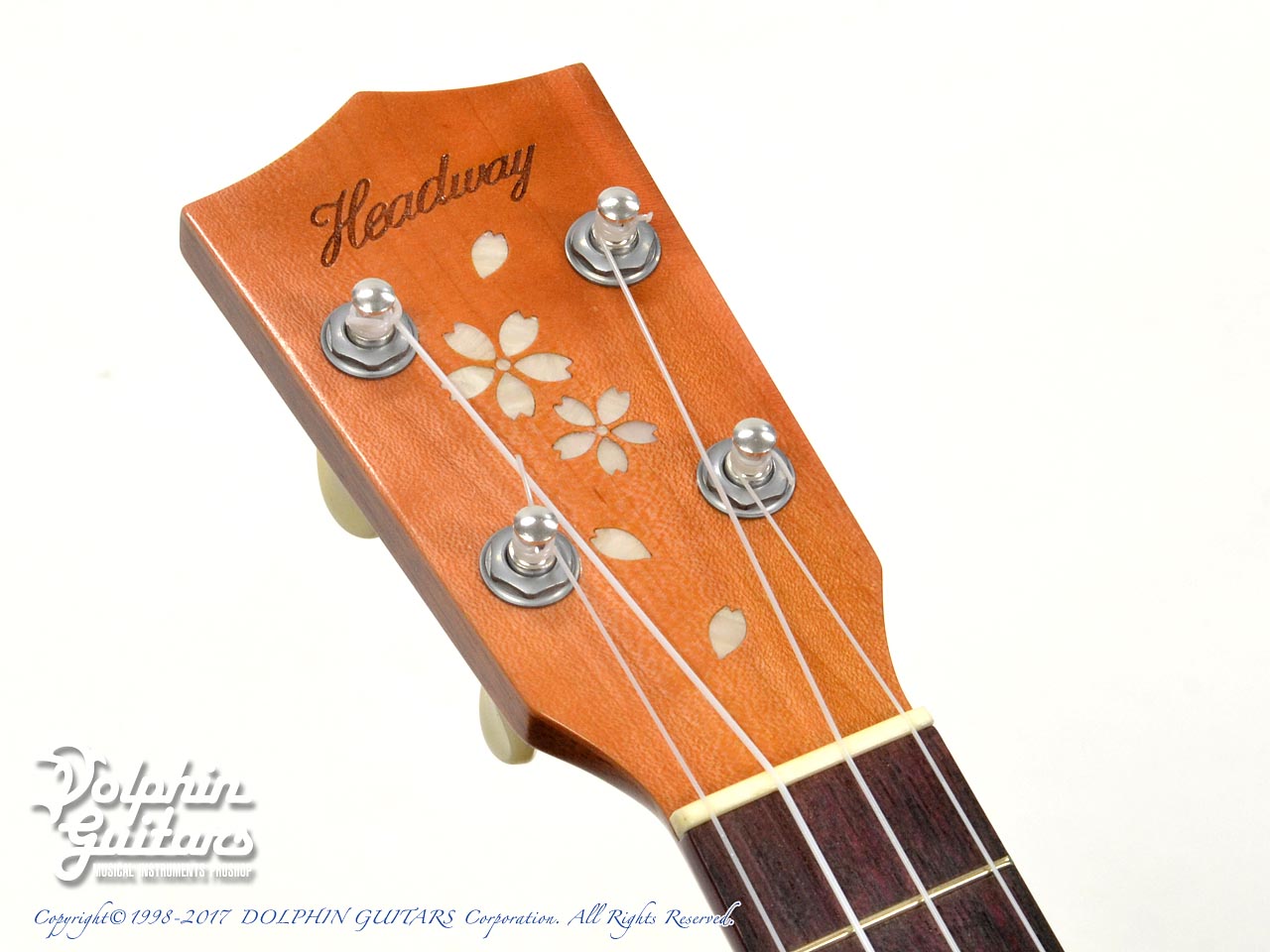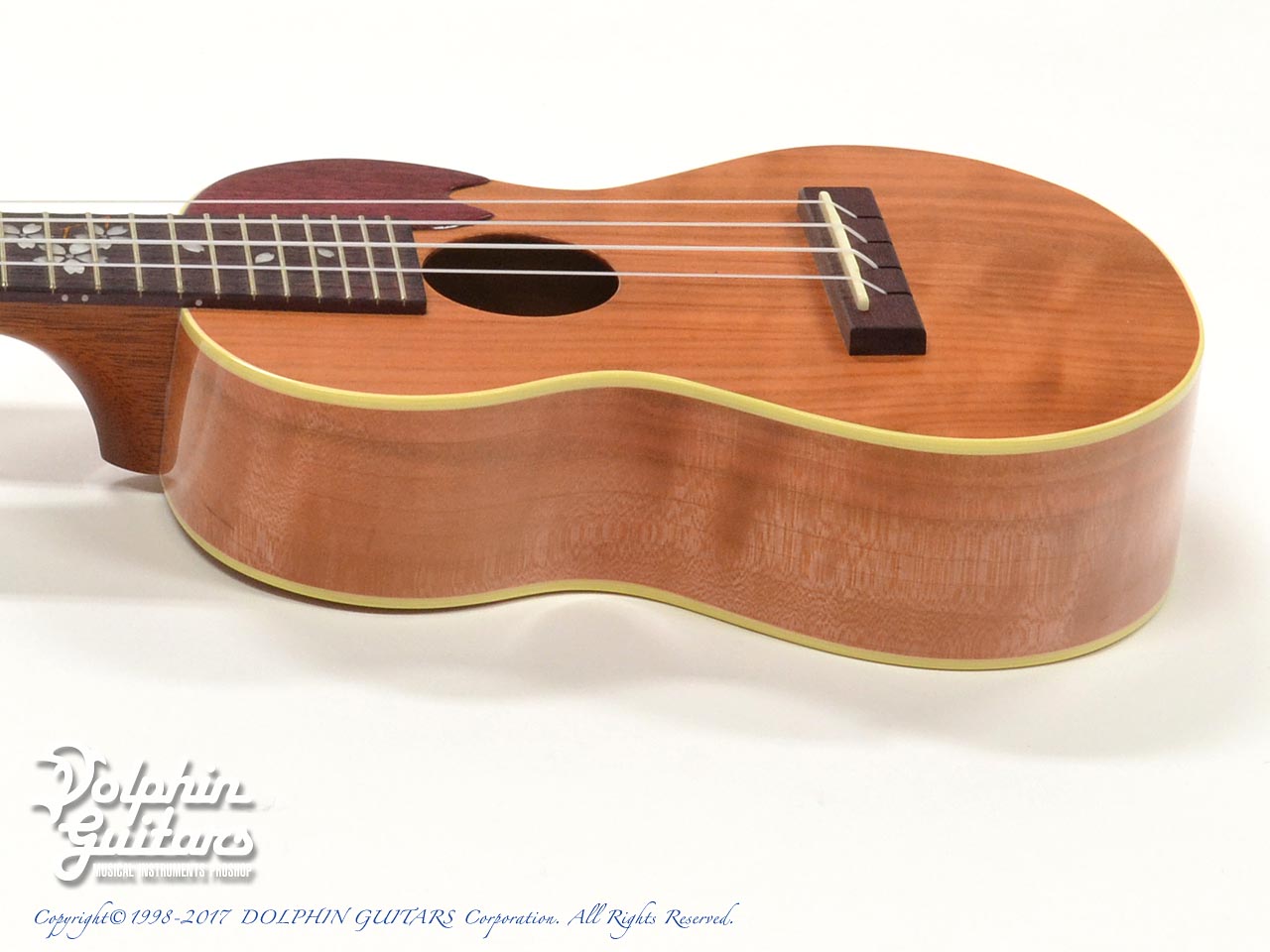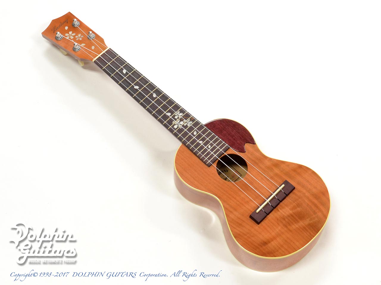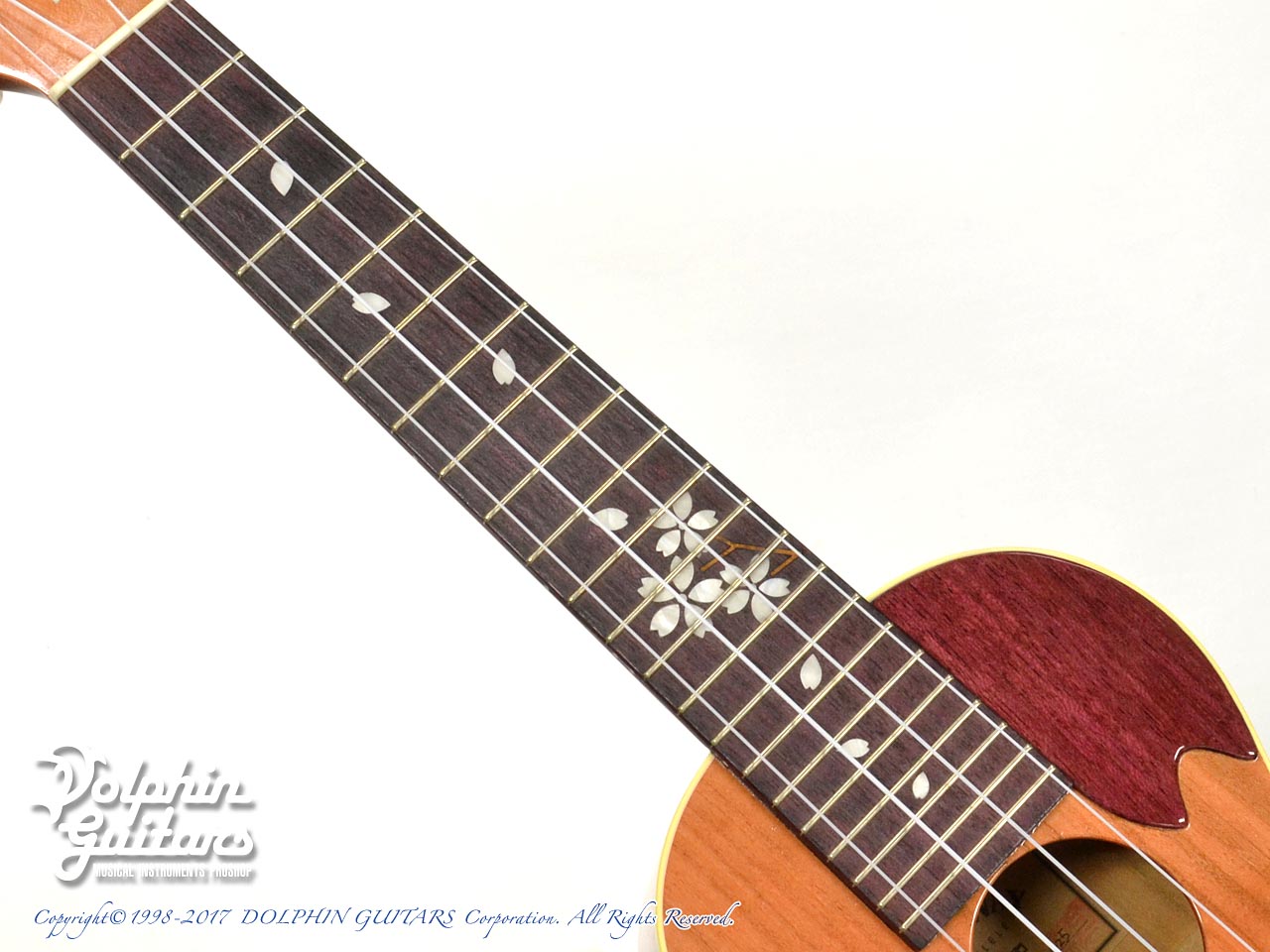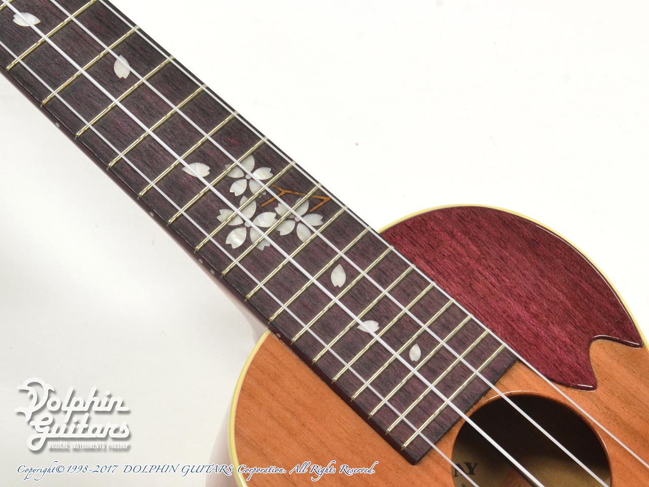 可憐な桜のインレイと、品がいい天然の紫が"和"を演出するパープルハートとほのかなピンクに色付けされたボディが美しく可愛いウクレレです。