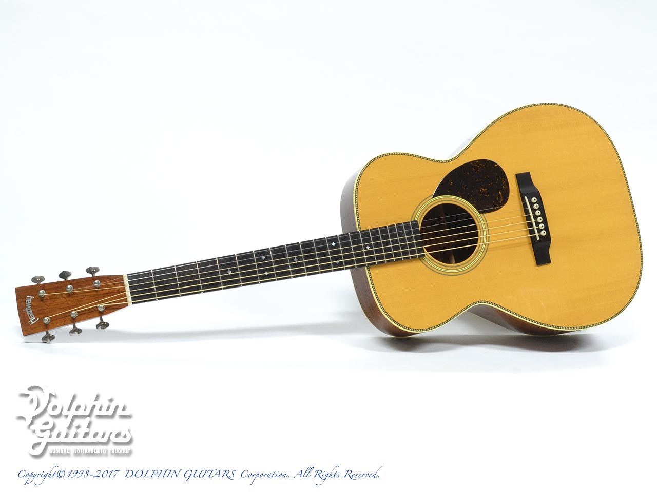 イングルマン・スプルース・トップ、インディアン・ローズウッド・サイド&バック、エボニー指板&駒、スキャロップドXブレイス、鼈甲柄ピックガード、ヘリンボーントリム&アイボロイド・バインディング、ゴトー糸巻き仕様。