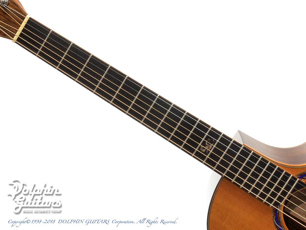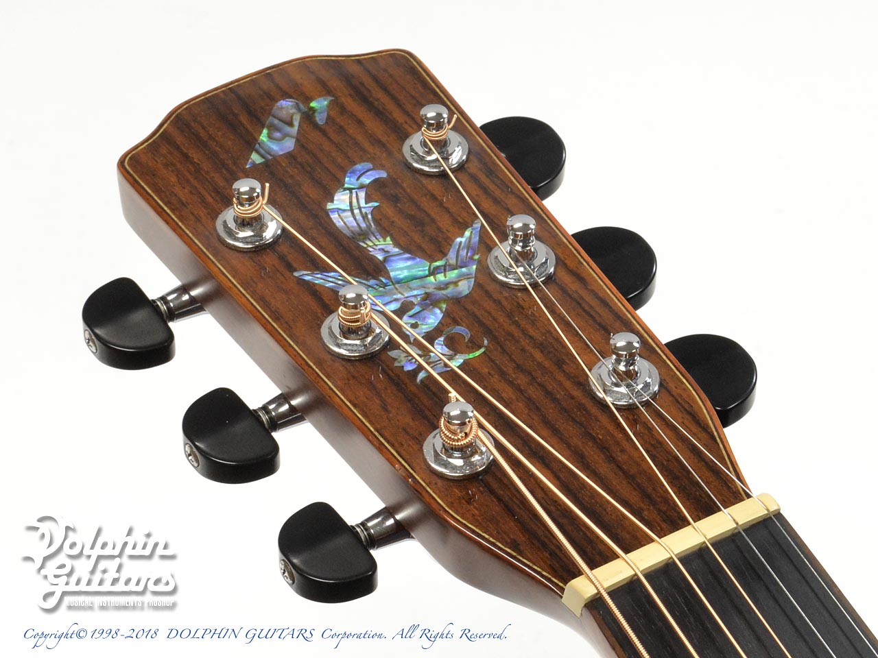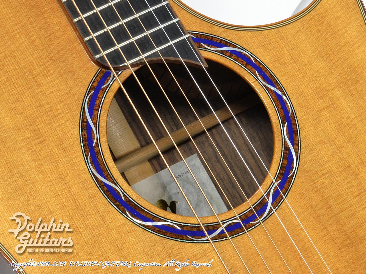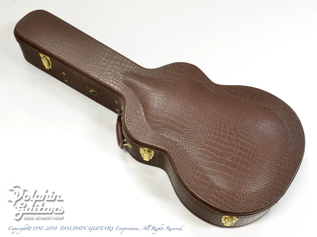 旧モデルと異なるのは、ブレイシング、ヘッド・指板インレイ、付属のケースもワニ皮風の高級ケースとなっています。