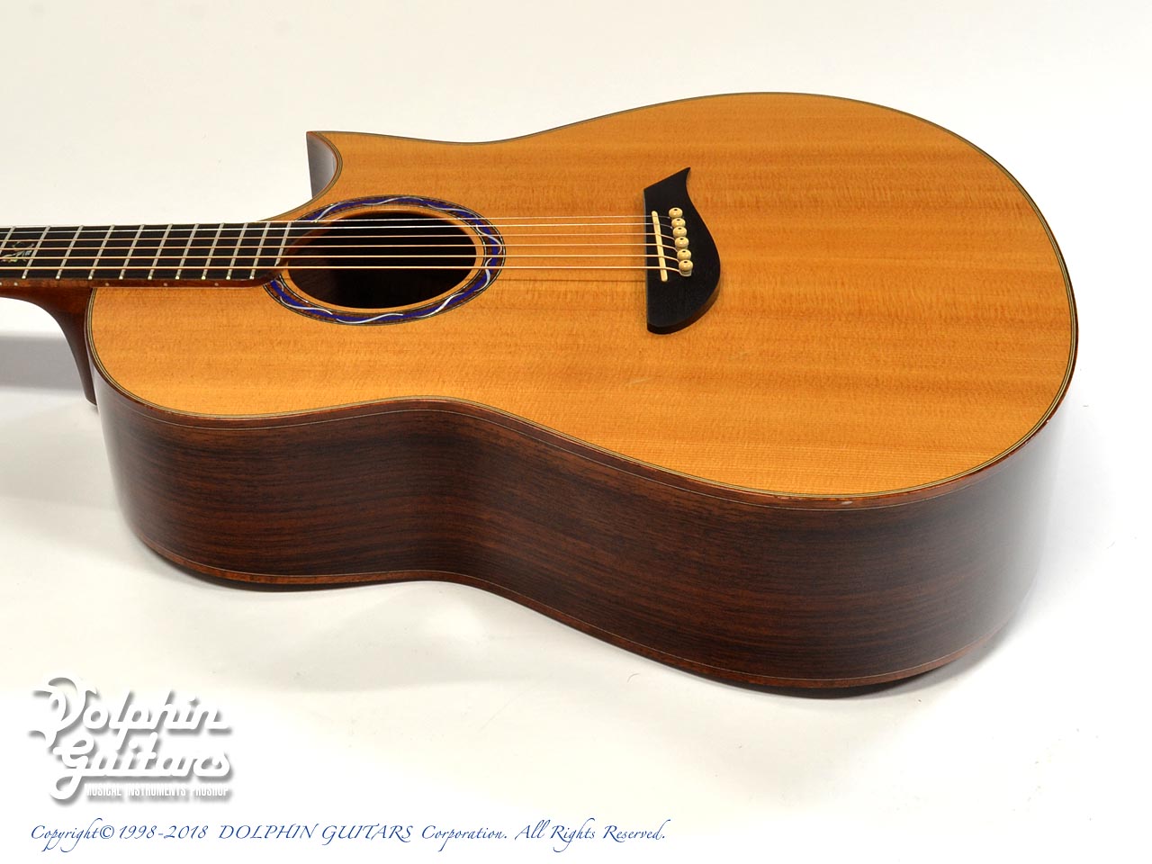 また個性的なブリッジ形状、サウンドホール・ロゼッタ、カーリーコア・ウッド・バインディングは優雅さを強調します。