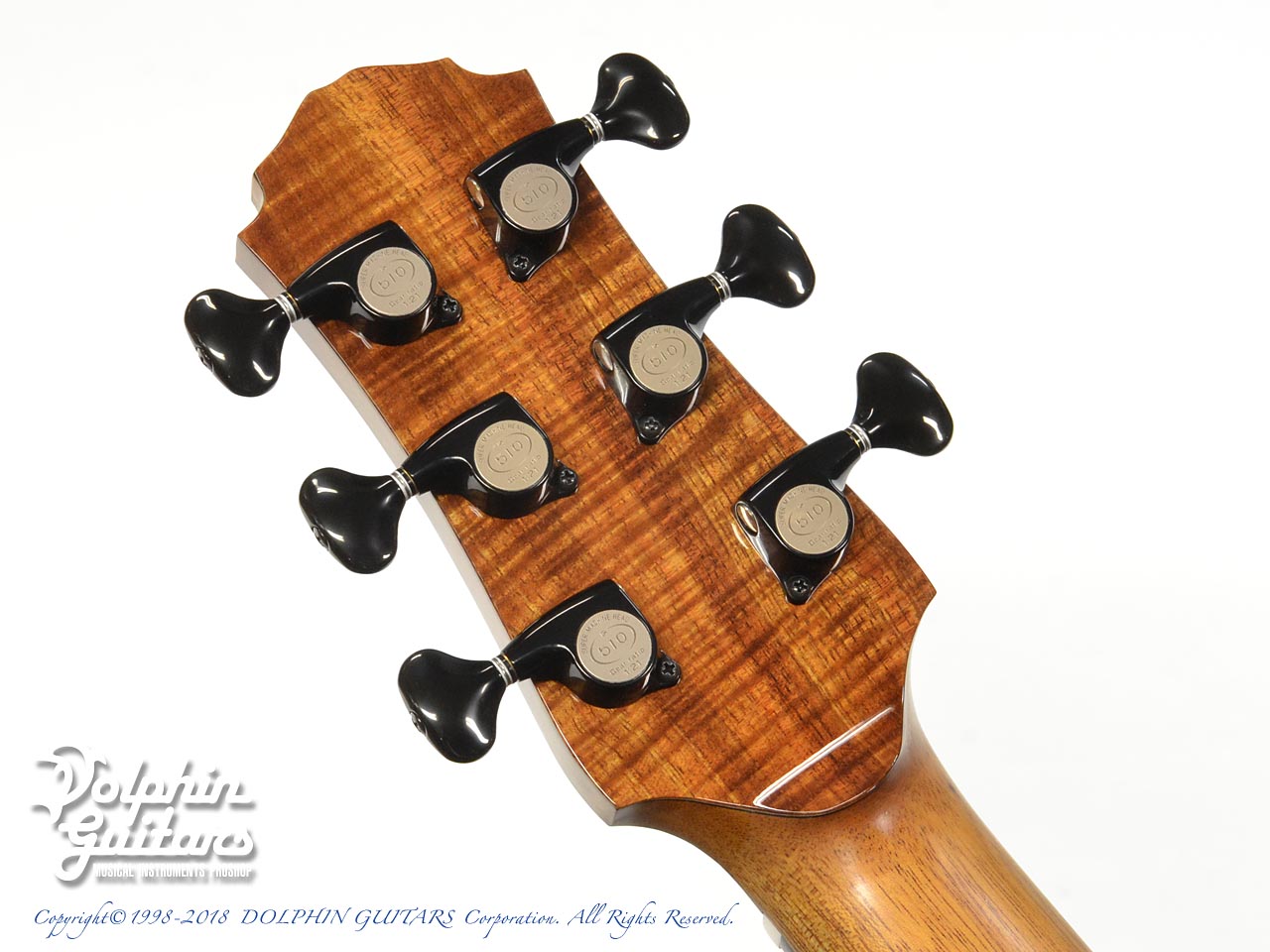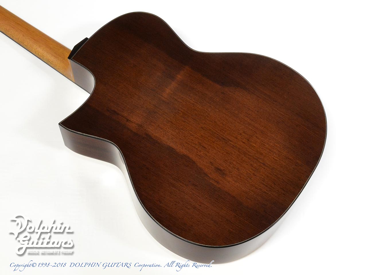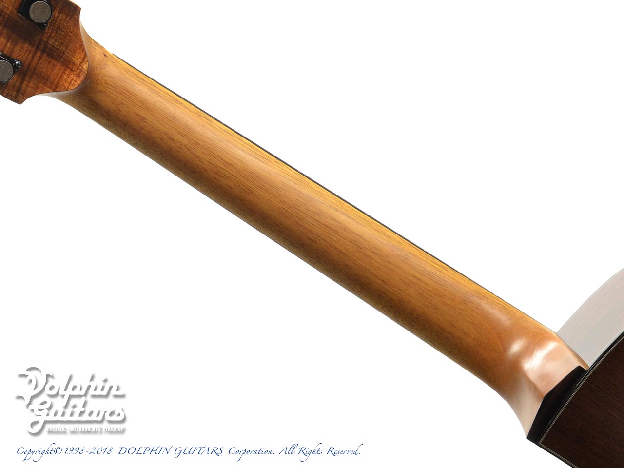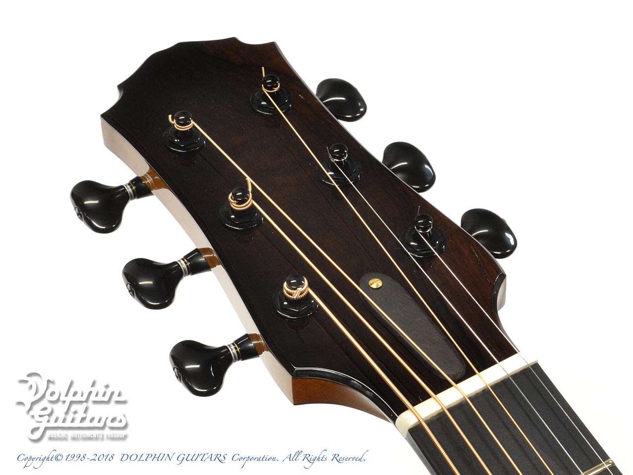 ベアクロウ・ジャーマン・スプルーストップ、マダガスカル・ローズウッド・サイド&バック、ホンジュラス・マホガニー1pネック、エボニー指板、駒&バインディング、アバロン+ウッド・ロゼッタ、フローレンタイン・カッタウェイ。