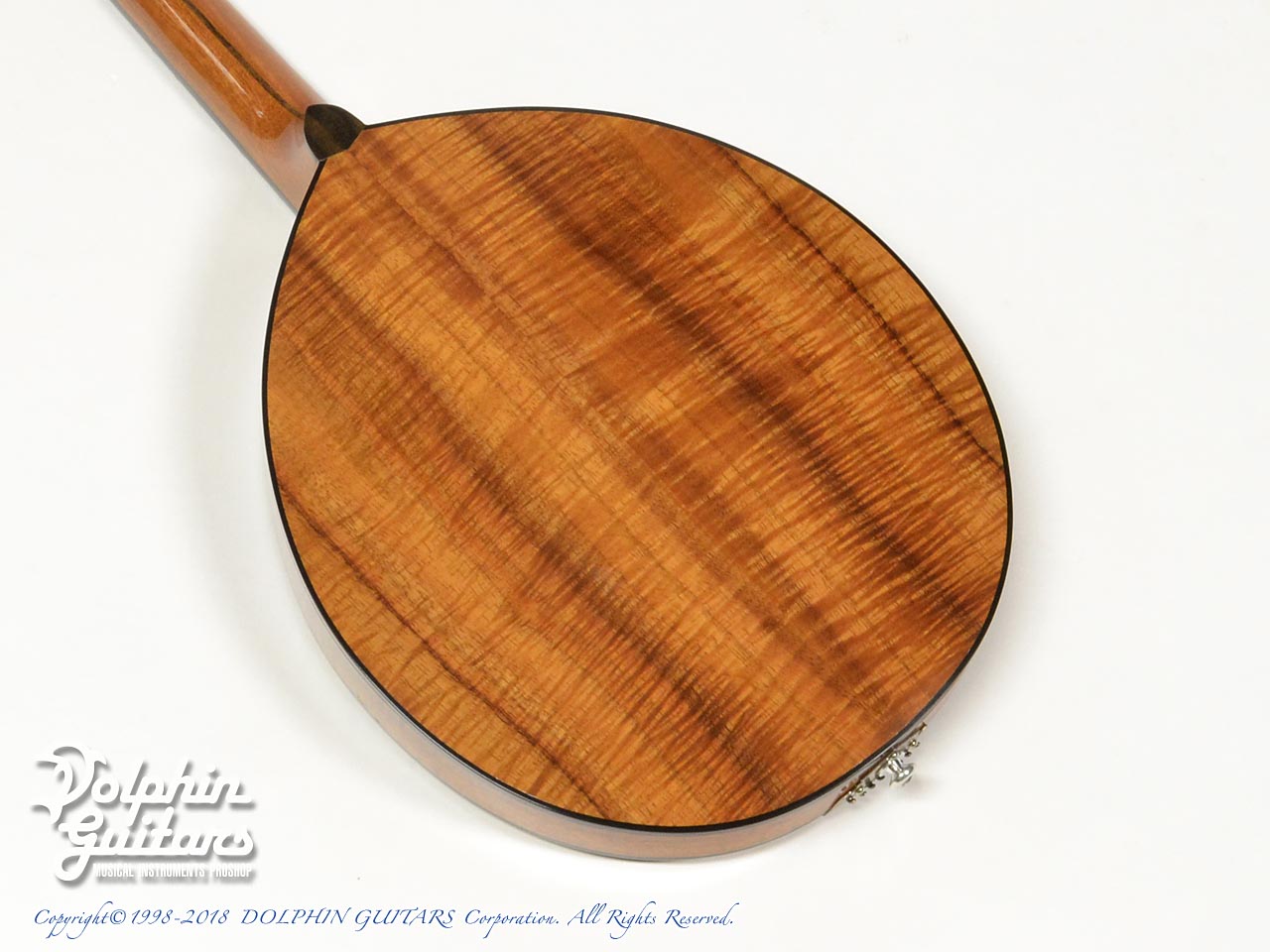 本器はフラットアイアンのラインナップの中でも非常に珍しいアーミーネイビータイプ(元ネタは1910-20年代にギブソンが製造していた兵士の為のシンプルなマンドリン)で、柔らかいサウンドや伸びのあるサスティーンなどは、ギター的なニュアンスを持ちます。またハワイアン・コアウッドボディとなっており、メイプルやマホガニーと比較すると乾いた明るめのトーンがお楽しみ頂けます。ロープパーフリングも可愛くてGOOD!です。