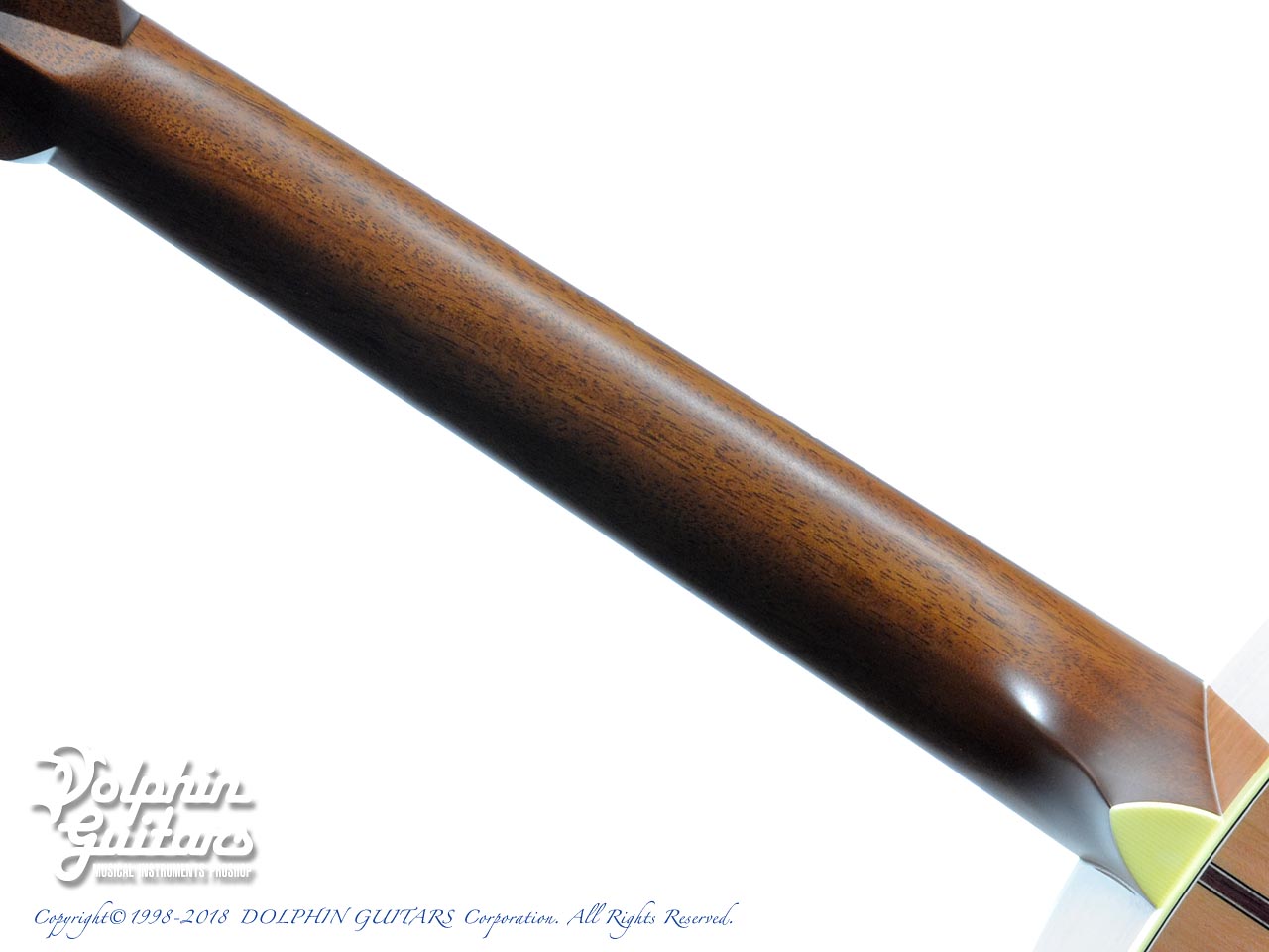 スプルース・トップ、サクラ・サイド&バック、アフリカンマホガニー・ネック、パープルハート・フィンガーボード&ブリッジ&ピックガード、オリジナル・ゴールド・ペグ。