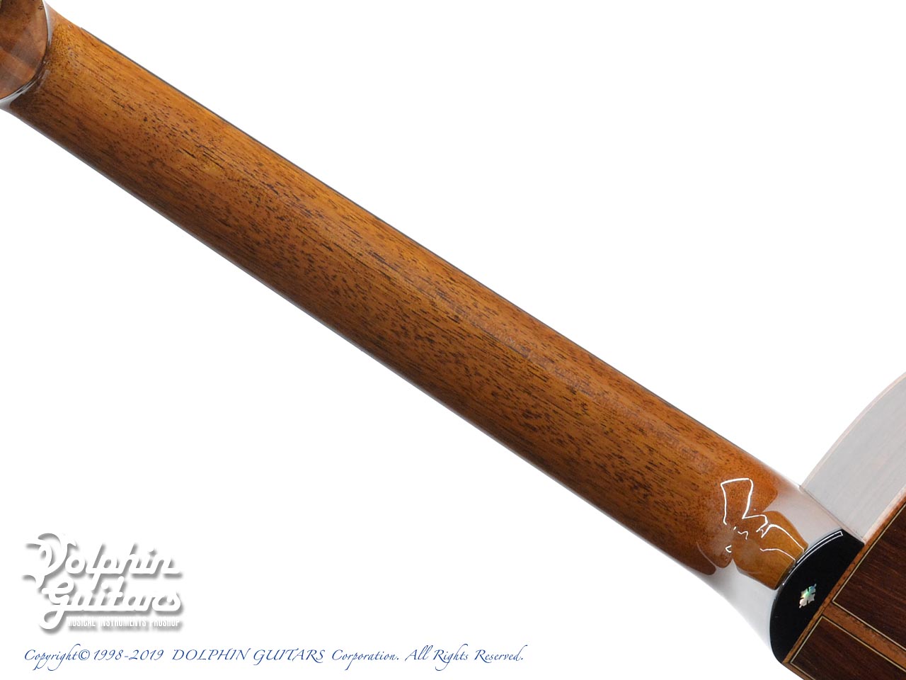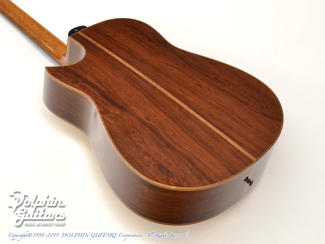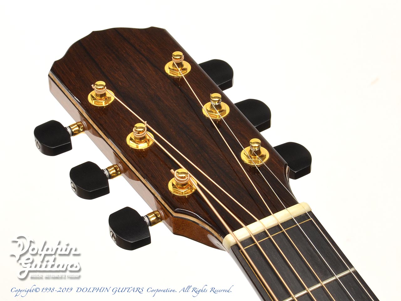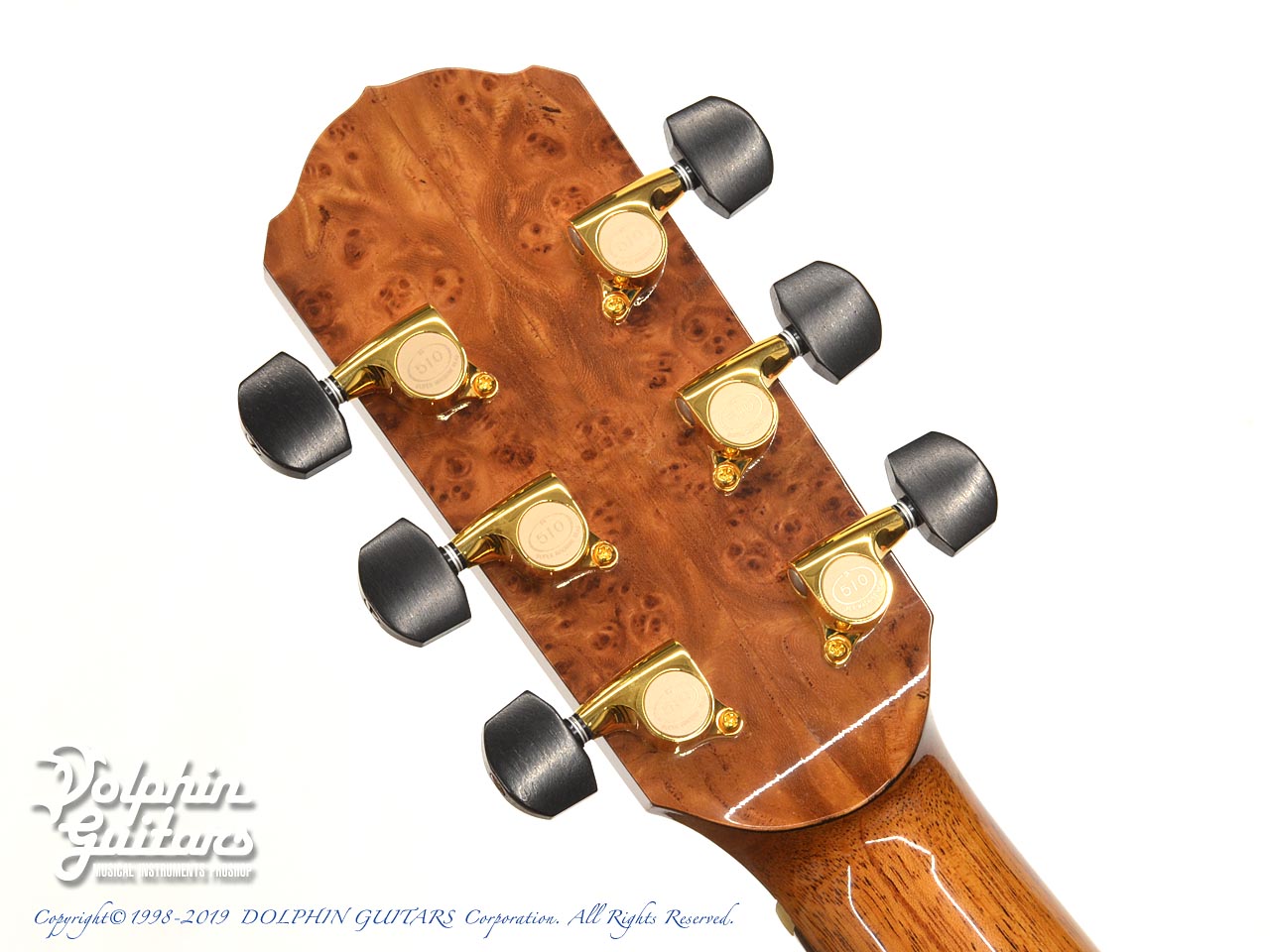 ヨーロピアンスプルース・トップ、マダガスカルローズウッド・サイド&バック、マホガニーネック、エボニー指板&駒、コア・ウッドバインディング、フローレンタインカッタウェイ、アバロン・ロゼッタ、ゴトー510糸巻き仕様。