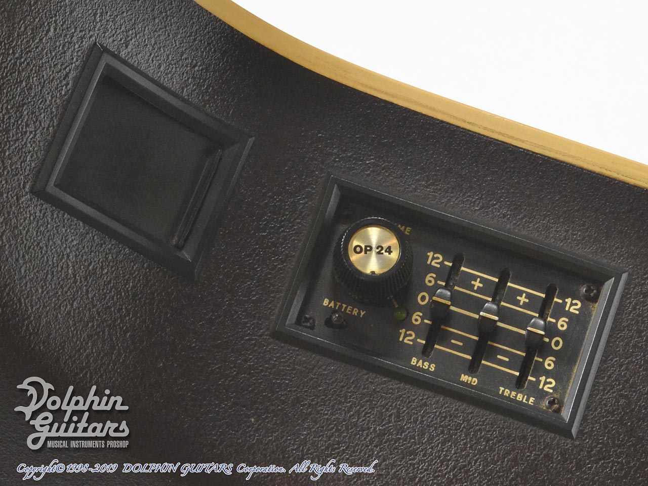 スプルース・トップ、リラコード・ボディ、マホガニー・ネック(5P)、ローズウッド・フィンガーボード、OP-24プリアンプ、ディープボディ。