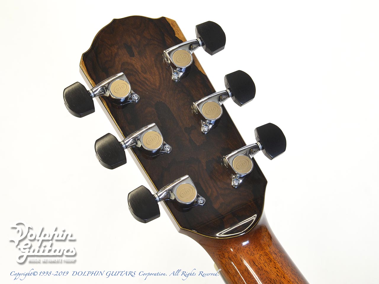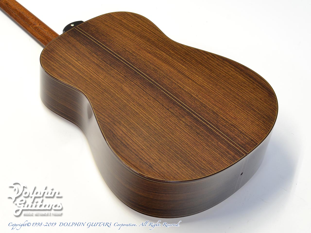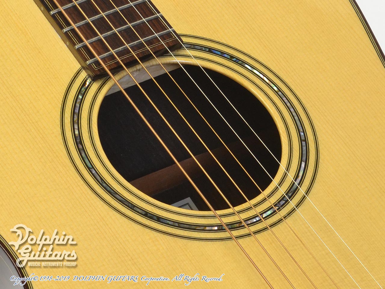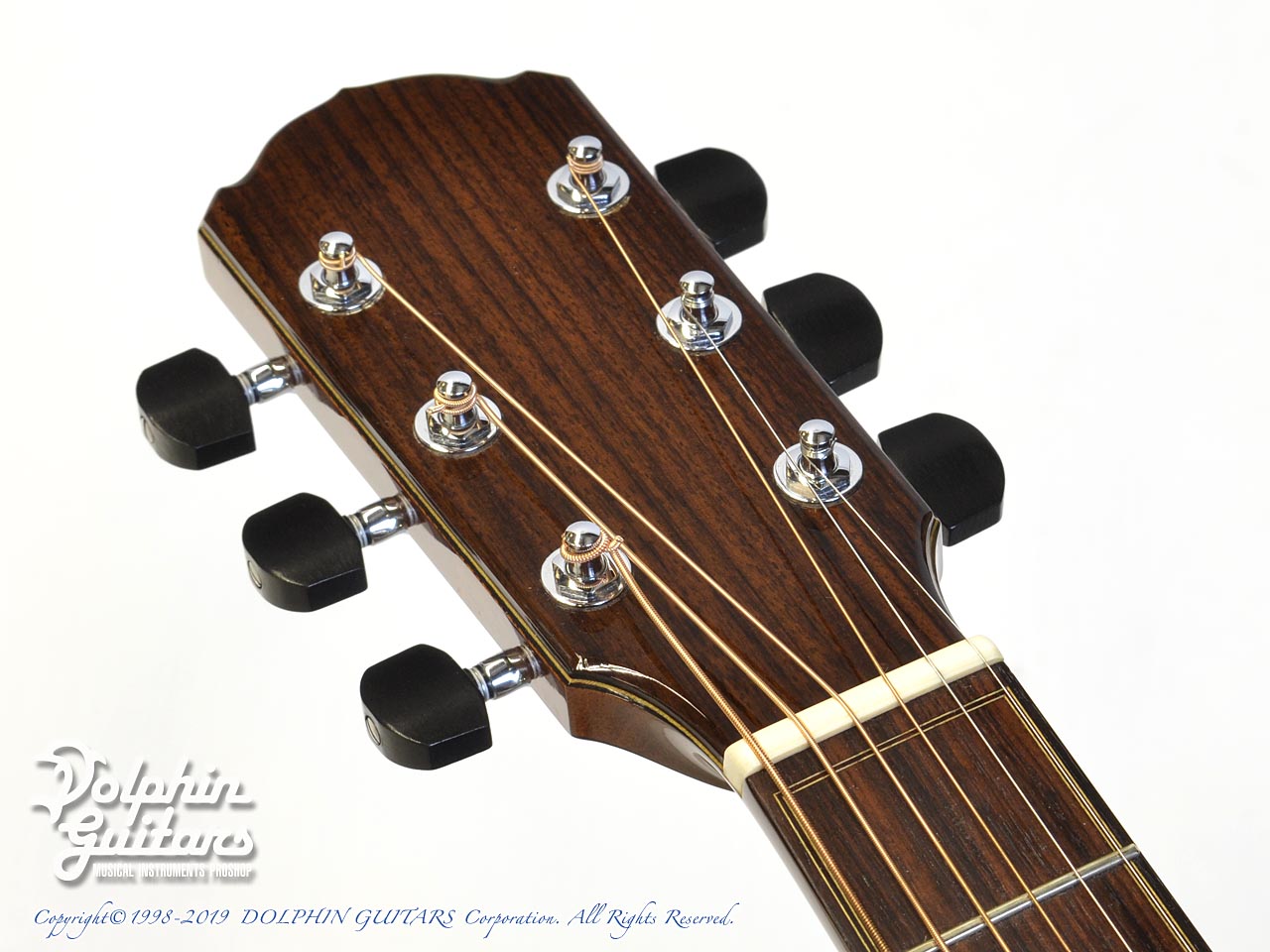 ジャーマン・スプルース・トップ、インディアン・ローズウッド・サイド&バック、ホンジュラス・マホガニー・ネック、インディアンローズウッド指板&駒、スネークウッド・バインディング、アバロン・ロゼッタ、ゴトー510糸巻き仕様、指板にはユニークな雫インレイ。