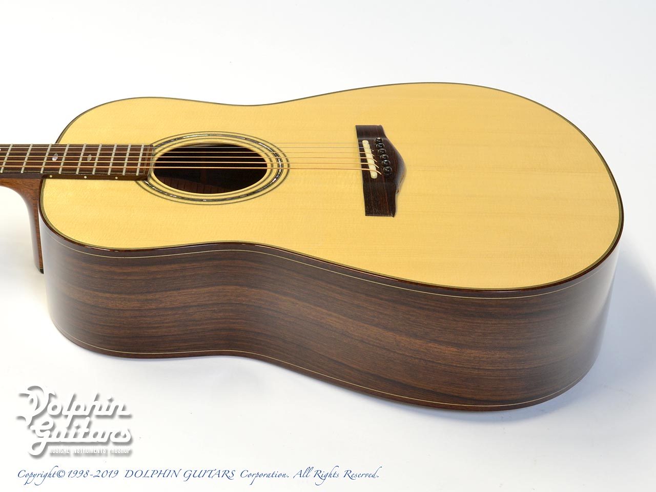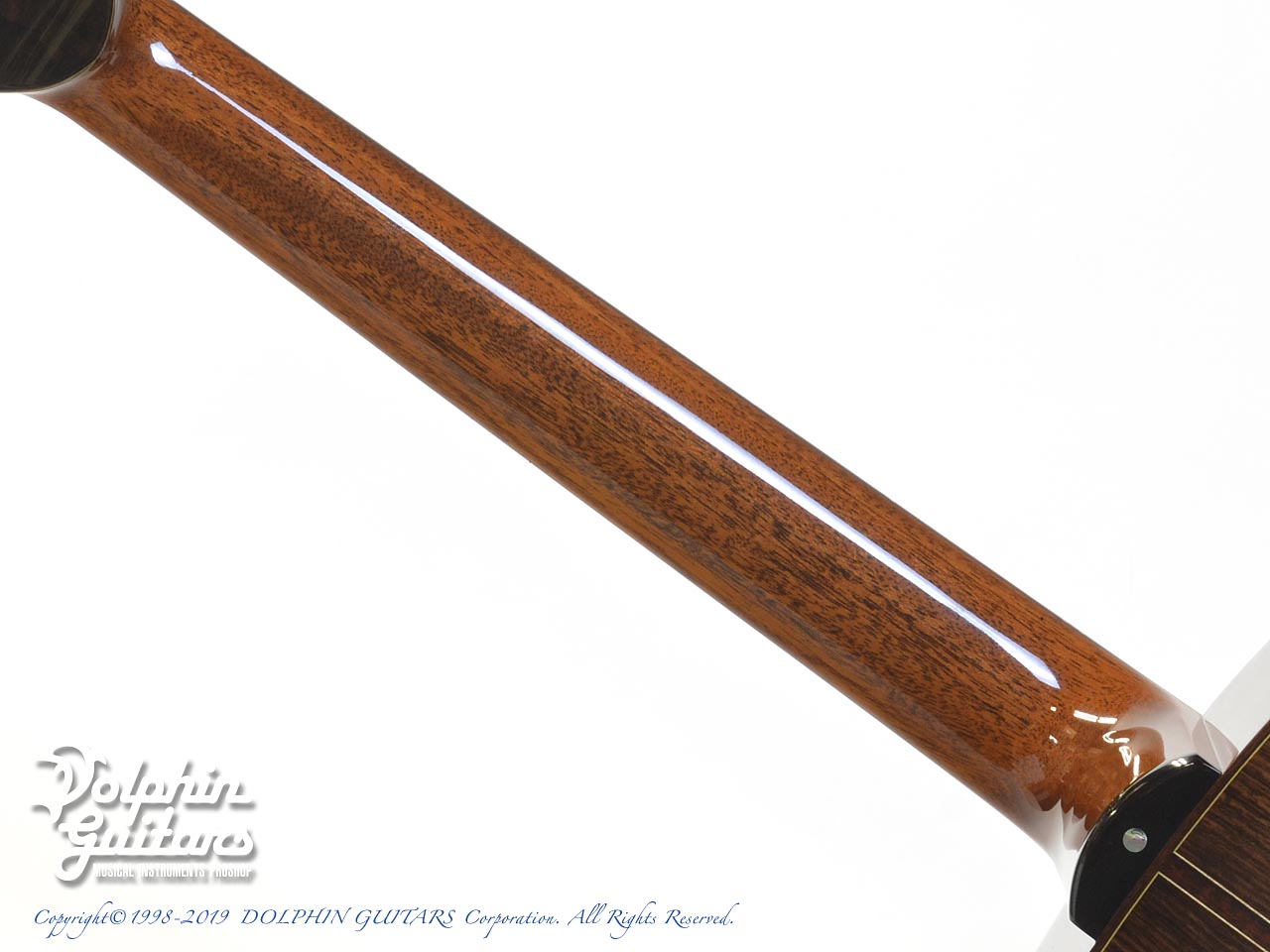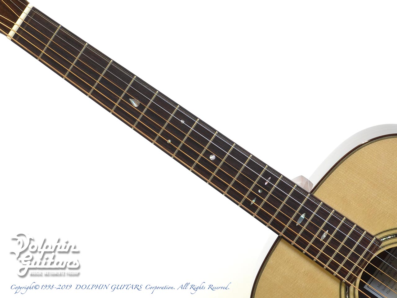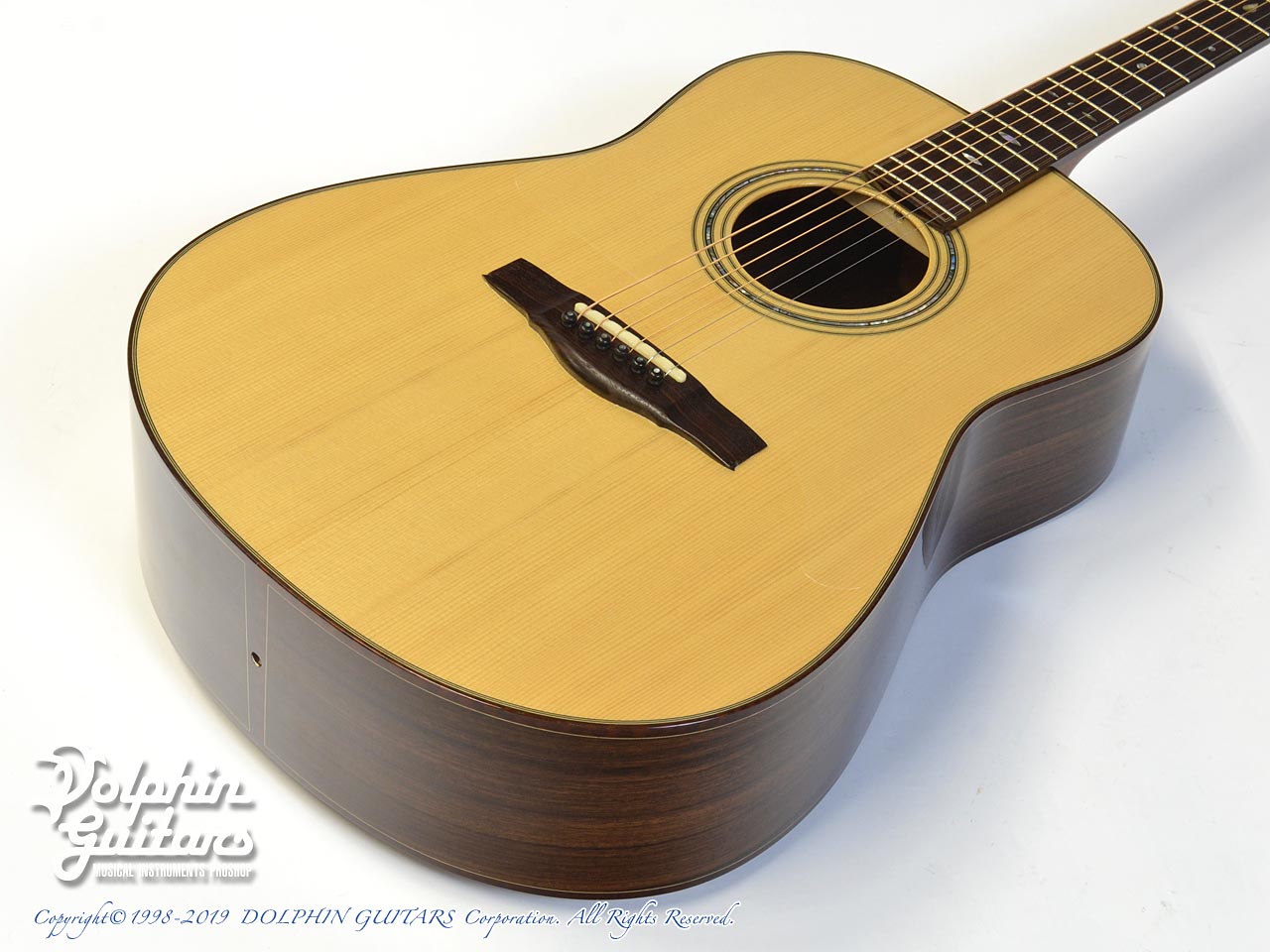 ジャーマン・スプルース・トップ、インディアン・ローズウッド・サイド&バック、ホンジュラス・マホガニー・ネック、インディアンローズウッド指板&駒、スネークウッド・バインディング、アバロン・ロゼッタ、ゴトー510糸巻き仕様、指板にはユニークな雫インレイ。