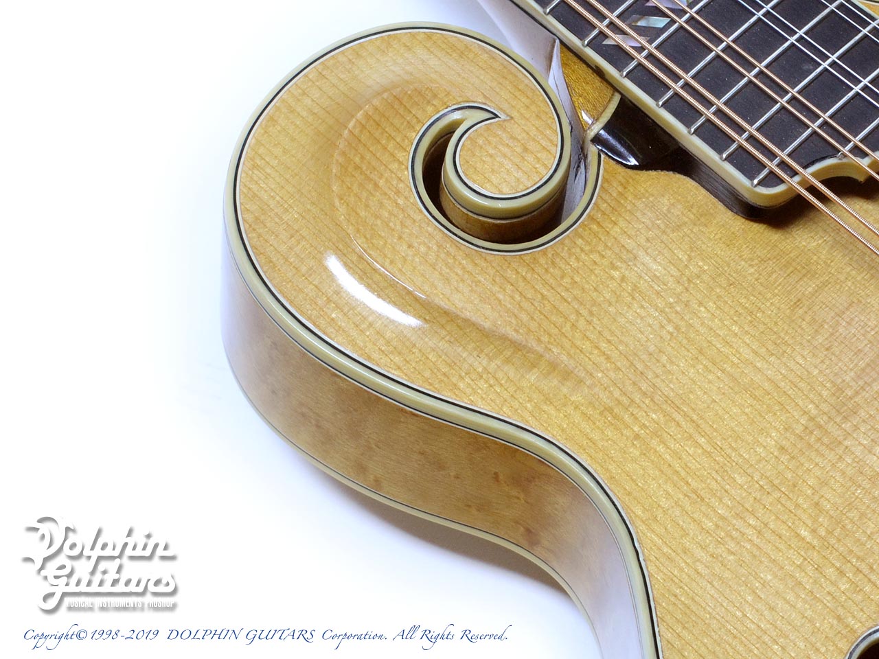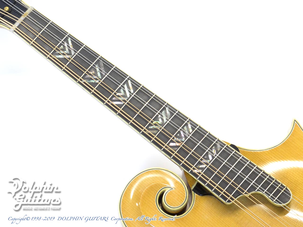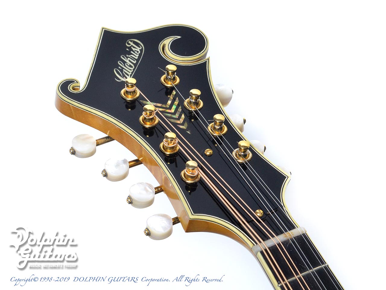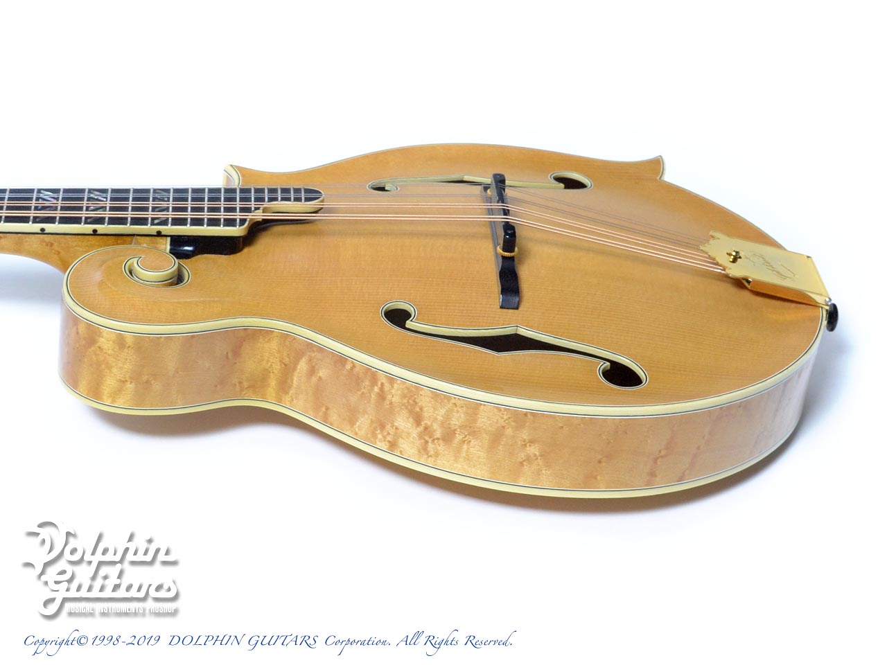 スクロールの鋭利な削り込みやバックの独特な膨らみを持つアーチ形状、バーズアイメイプルの素晴らしい杢目は、ギルクリストならではでしょう。他の追随を許さない圧倒的な完成度を誇るフラットマンドリンと言えます。
