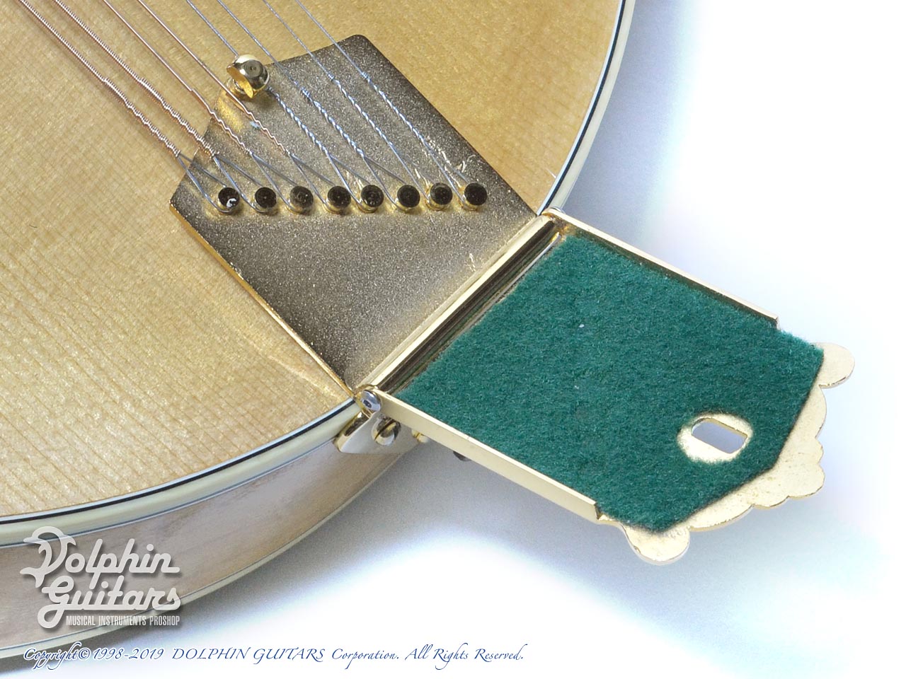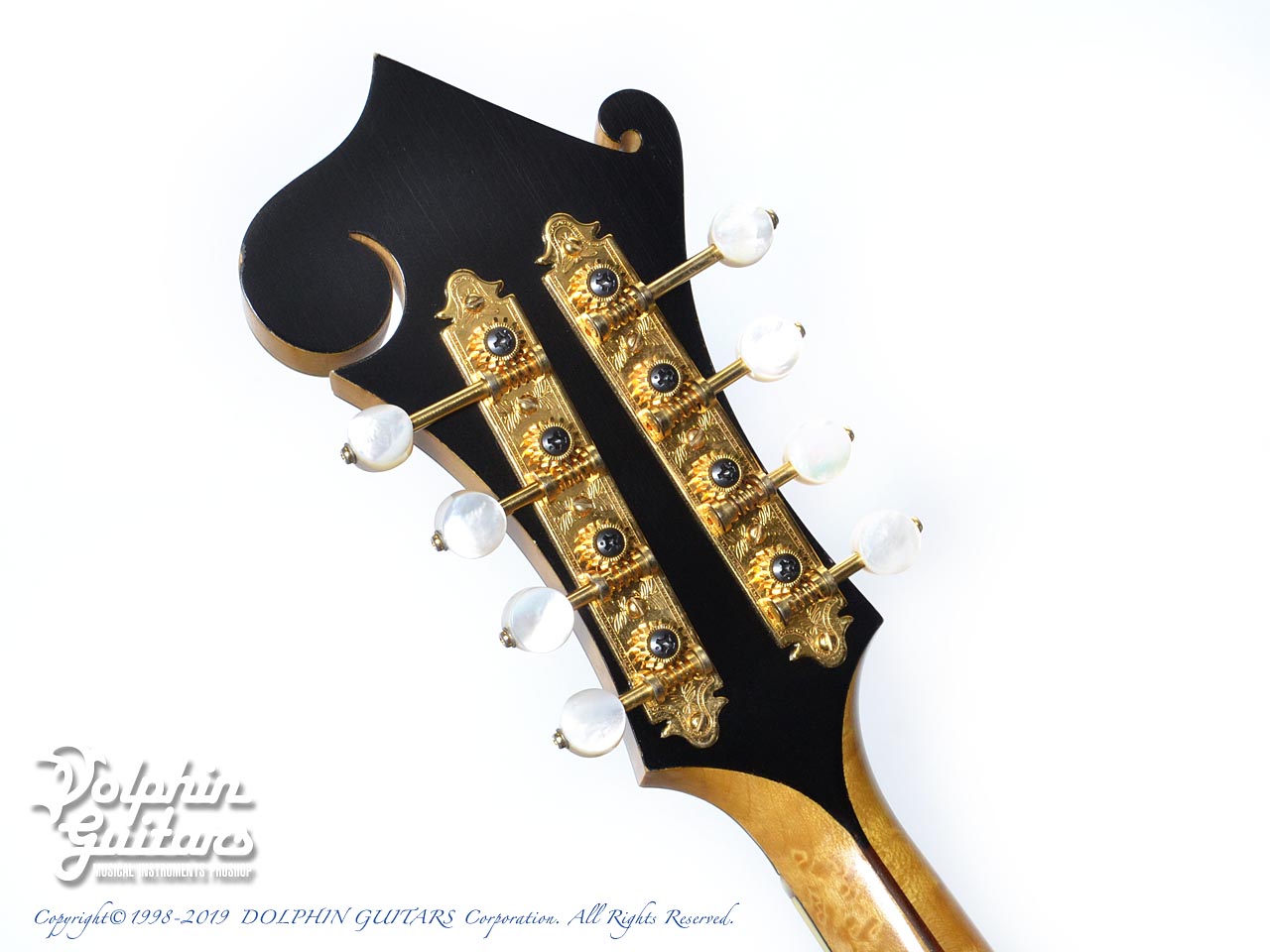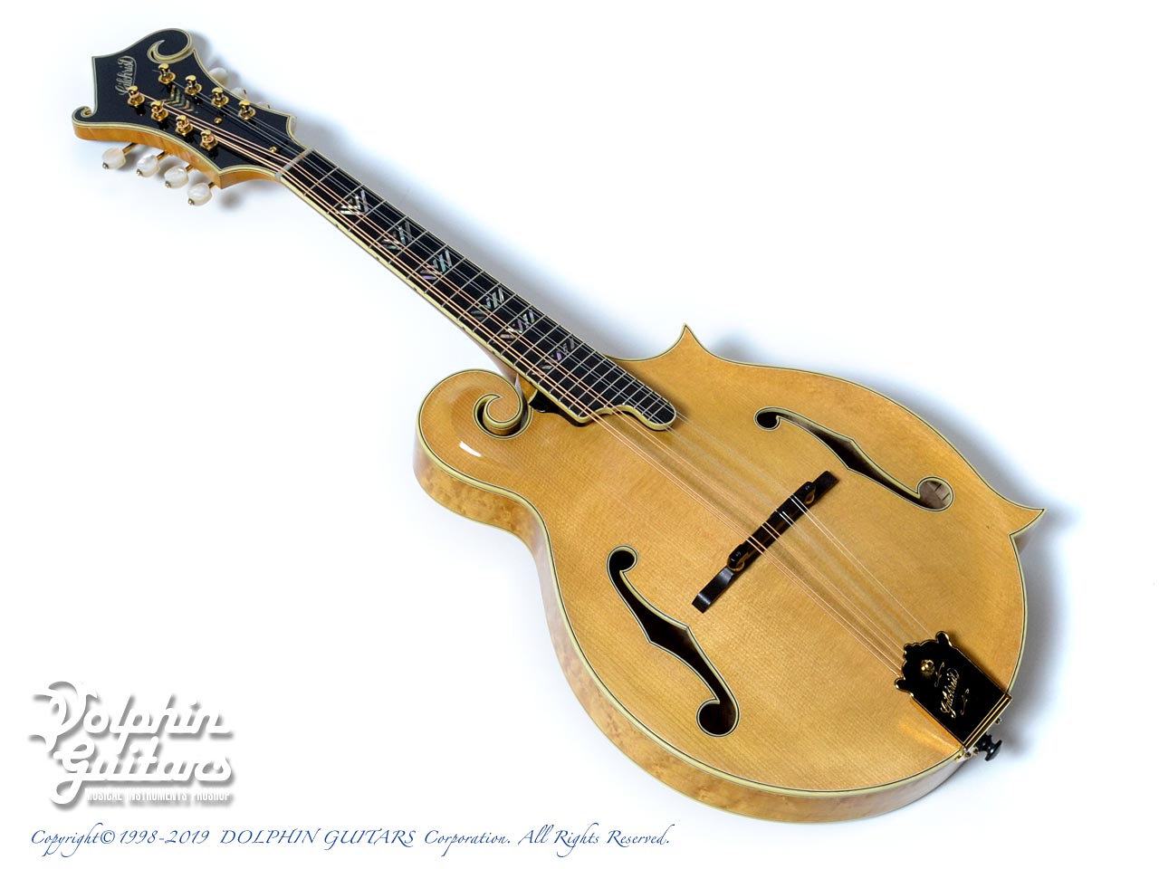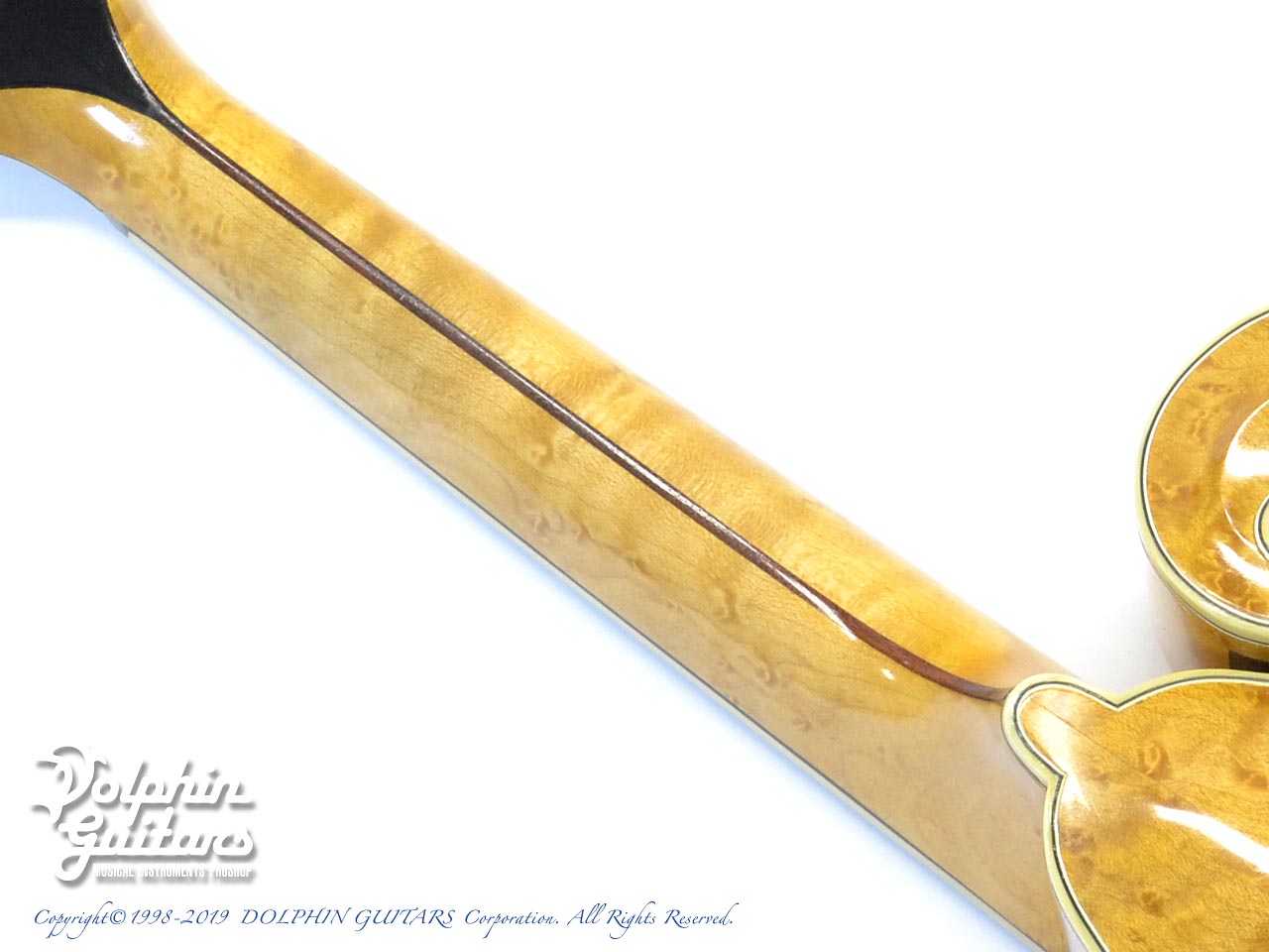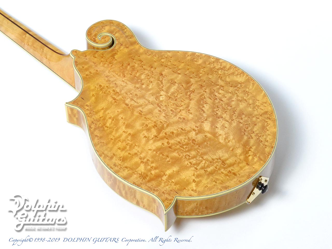 スクロールの鋭利な削り込みやバックの独特な膨らみを持つアーチ形状、バーズアイメイプルの素晴らしい杢目は、ギルクリストならではでしょう。他の追随を許さない圧倒的な完成度を誇るフラットマンドリンと言えます。