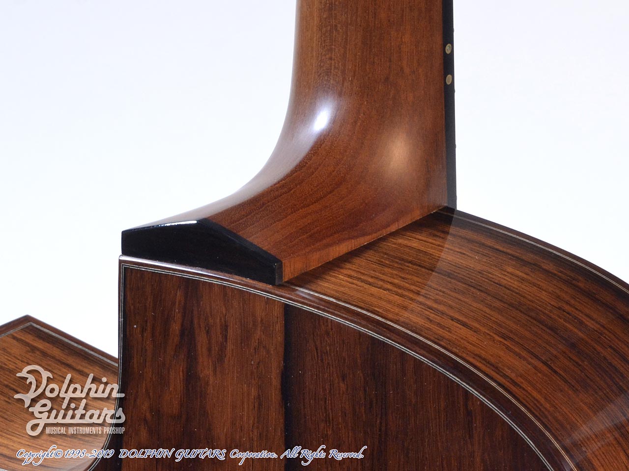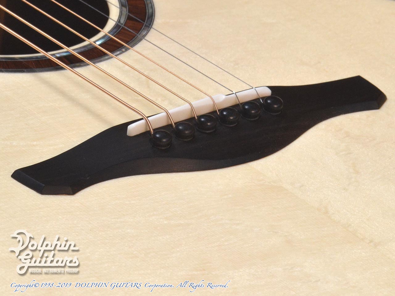 トップ全体に入ったベアクロウ杢が色白のムーンスプルースを輝かせ、とても上品かつエキゾチックな印象を与えます。ムーンウッドとは、月の引力が弱まる新月の夜に、含水率の低い状態で伐採された木材で、経年での狂いにも強く、音響特性にも優れた伝統的な伐採方法です。神秘的なストーリーも素敵ですね。サイドバックのマダガスカル・ローズウッドも近年稀に見るほどの上質な杢目。木材フェチの方はこの外観ですでにノックアウトしてしまいそうなほどのマテリアル。