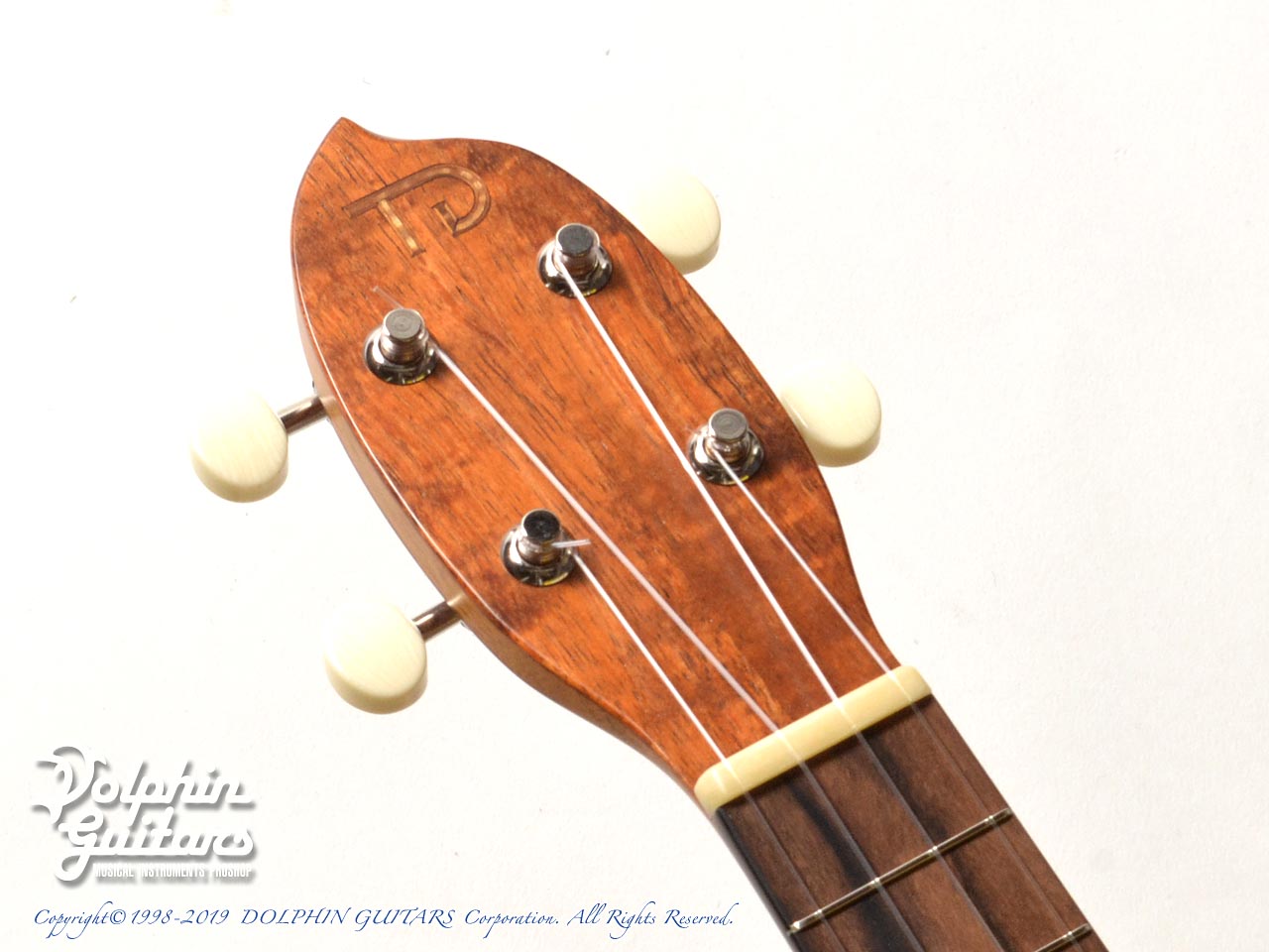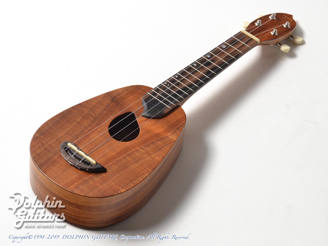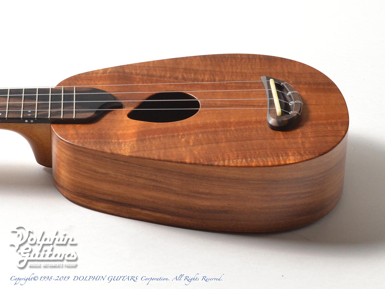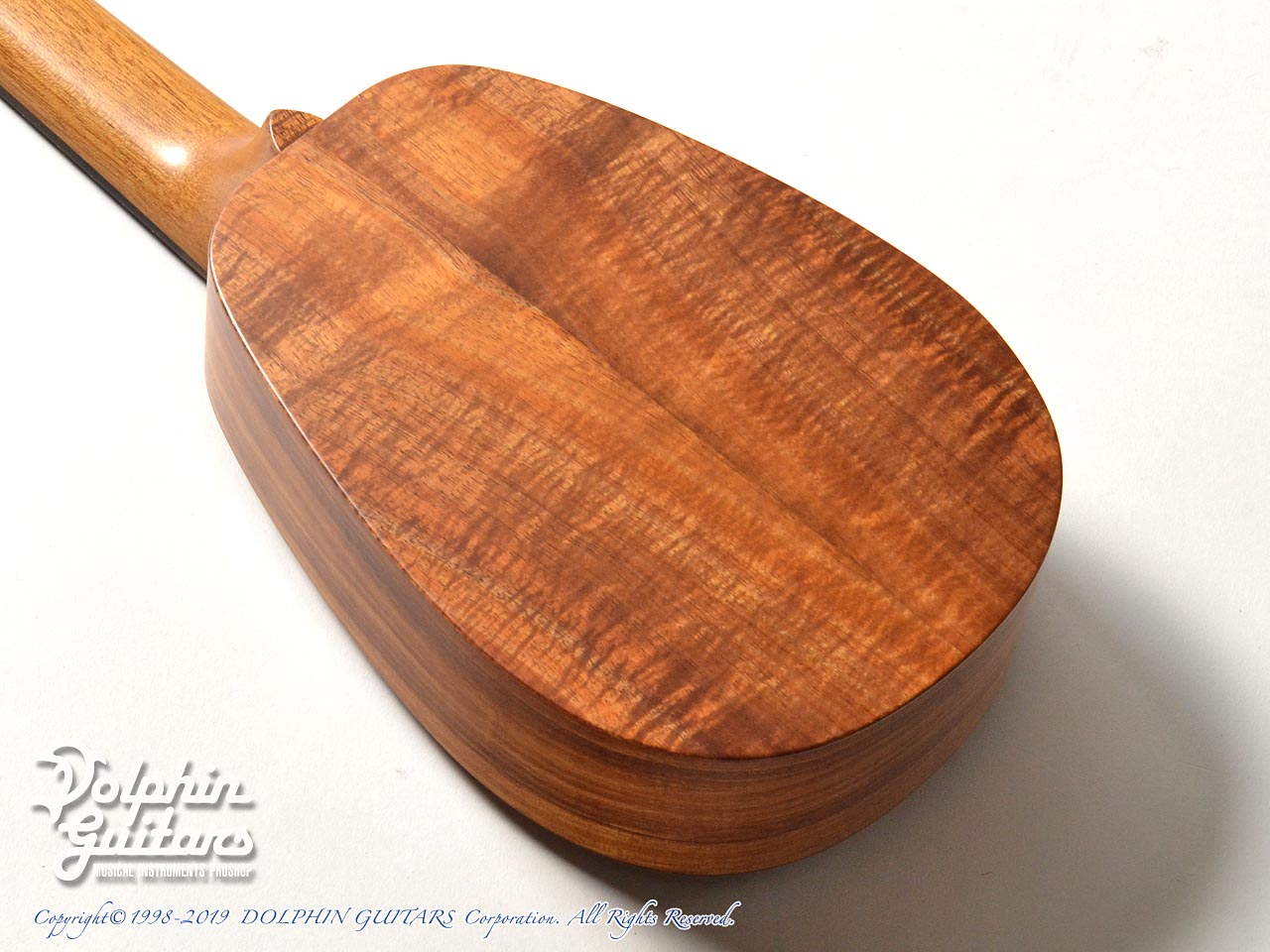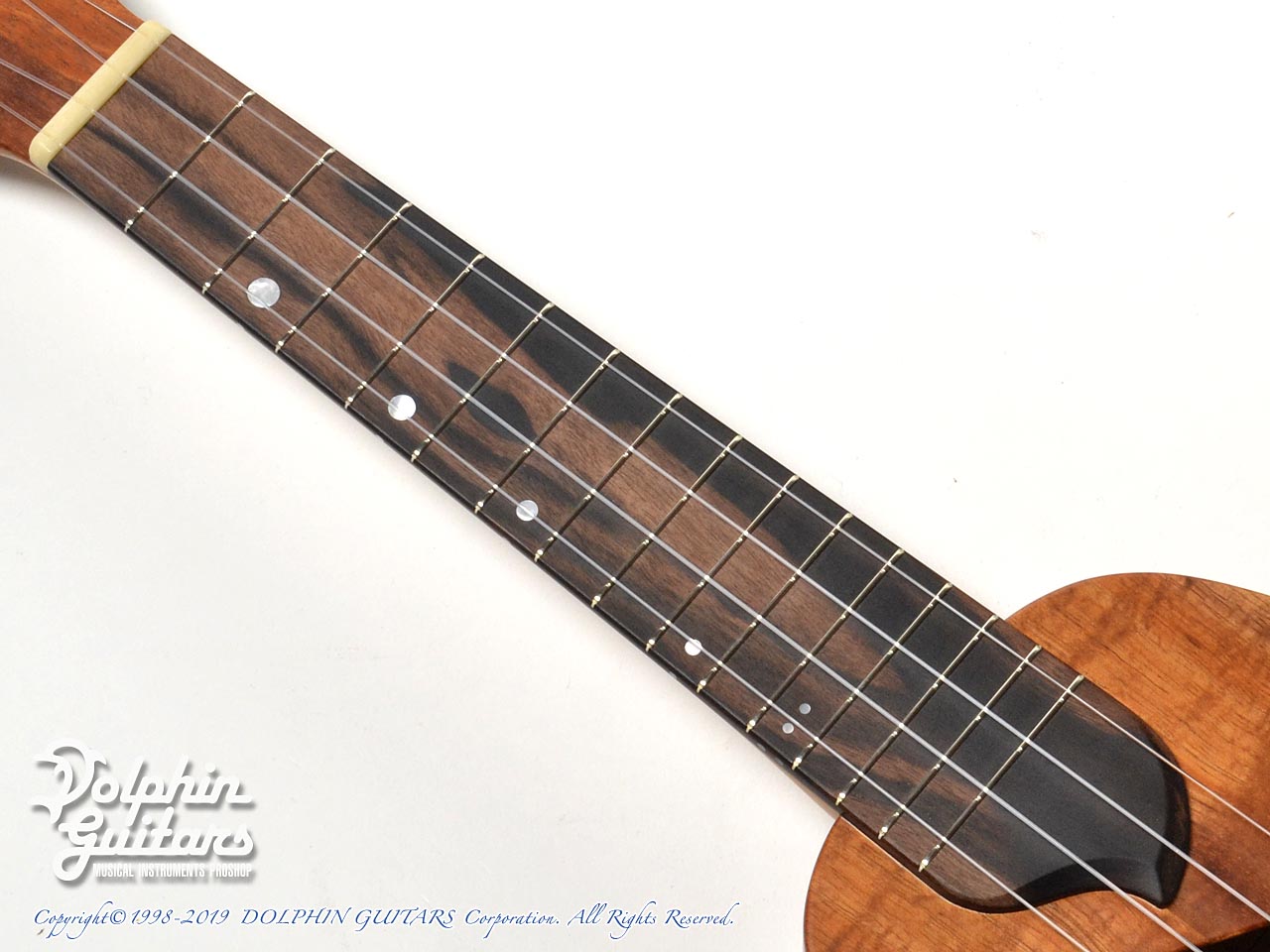 ハワイアンコアをボディに、コントラストの効いた特徴的な木目を持つマッカーサーエボニーをフィンガーボードに採用、ユニークなヘッド形状とサウンドホールと相まってミステリアスでありながらどこか可愛い仕上がりとなっております。