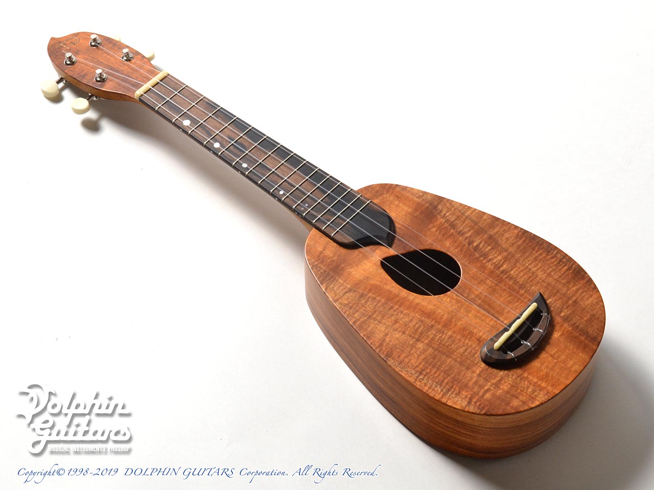 本器は意外にもトダギターズ初となるパイナップルシェイプ、オール・ハワイアンコア・ボディのソプラノサイズ、PS-ALL KOA。=サウンドメッセin大阪2019&東京ハンドクラフトギターフェス2019出展作品=