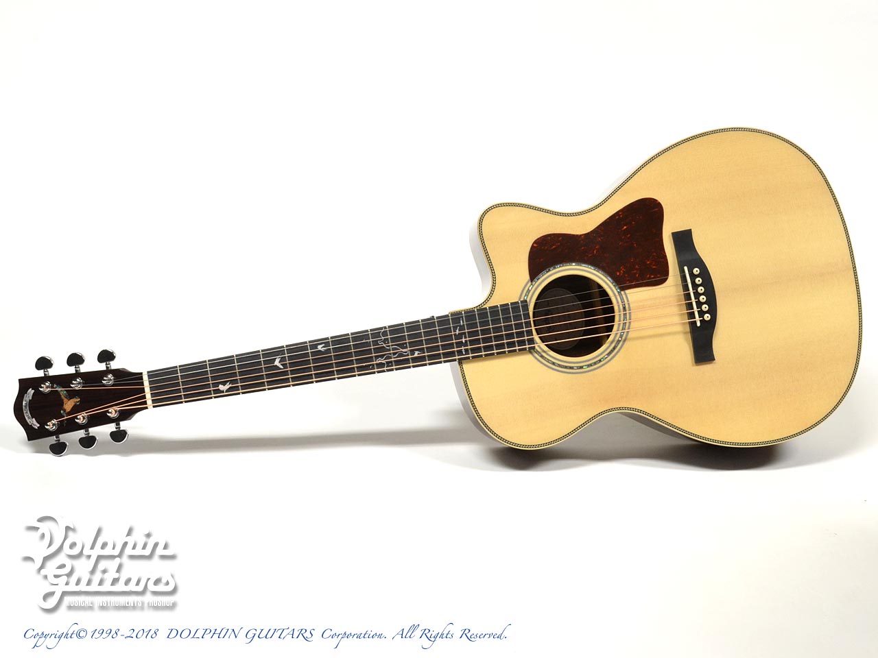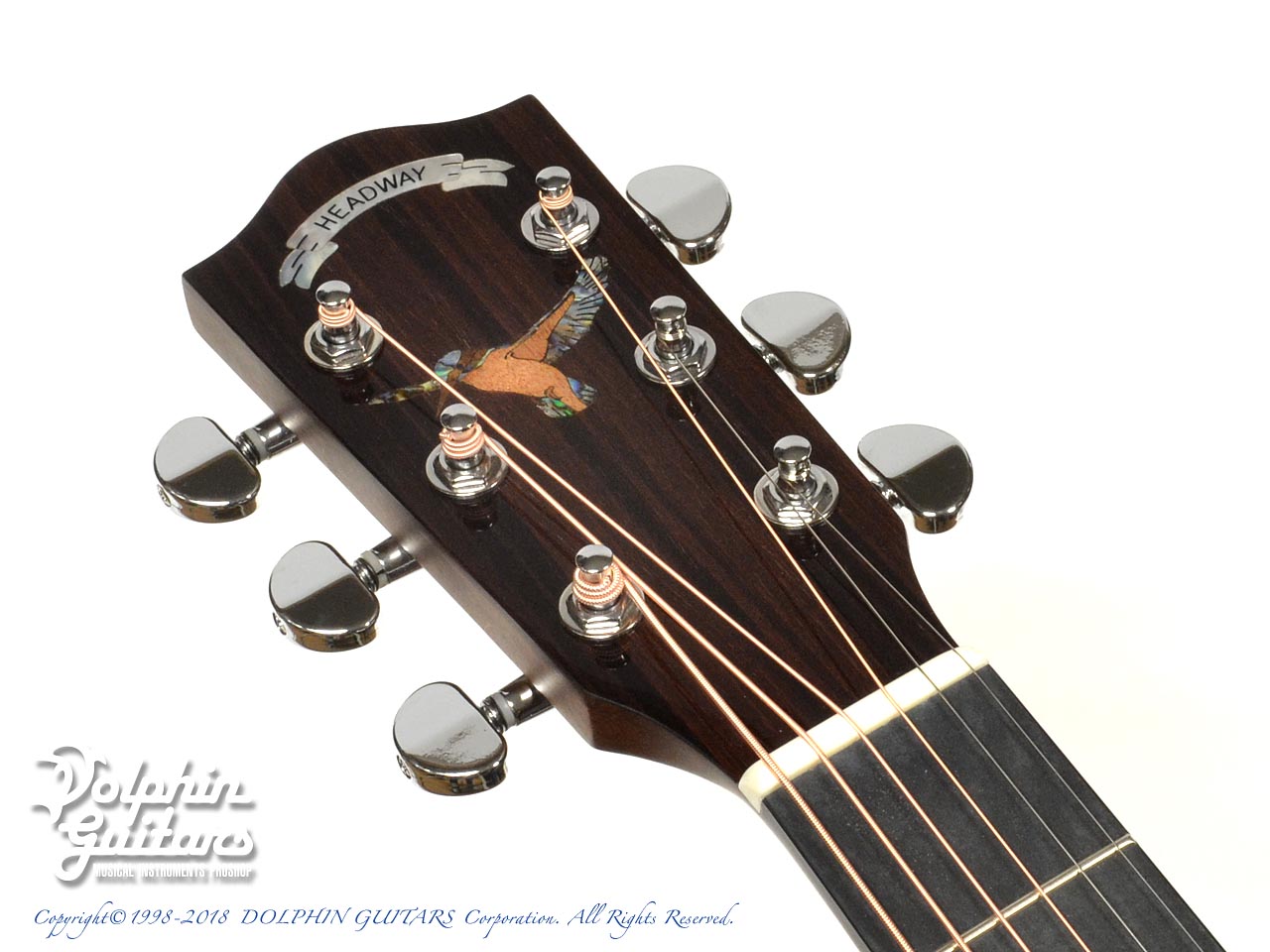 デザイン面では往年の愛機である、当店特注のカスタムモデルHDC-1020 "King Fisher"のデザインを落とし込み、ユニークなインレイデザインで指板やヘッドを装飾。