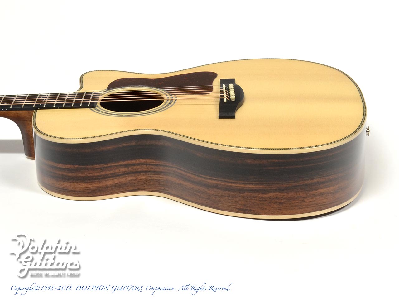 スプルース・トップ、マッカーサー・エボニー・サイド&バック、ナトー・ネック、ブラックミカルタ・指板&駒、アバロンロゼッタ。
