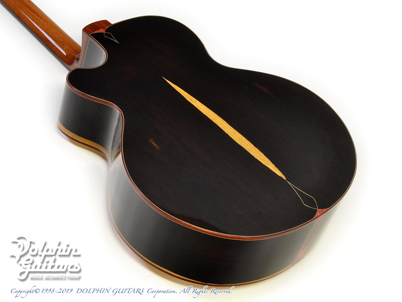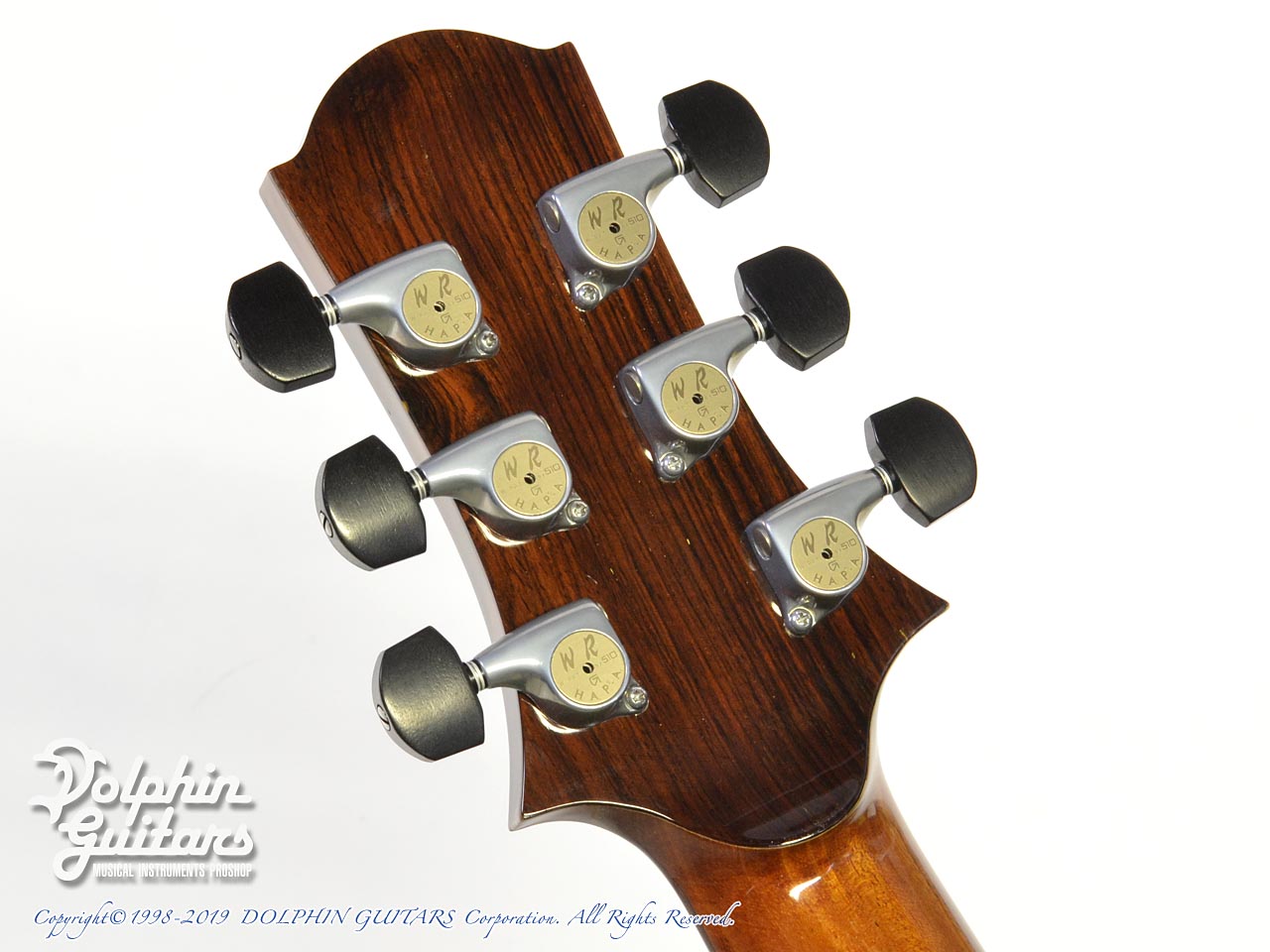 ロゼッタ、ブリッジにはサイドバックに合わせたサップウッドで美しく統一されております。杢目を生かした巧みなデザインは増田氏の十八番。