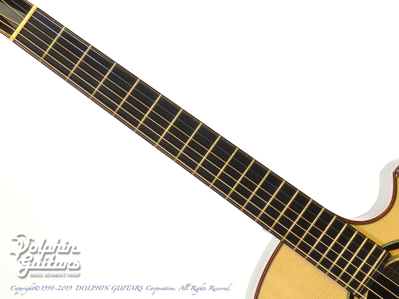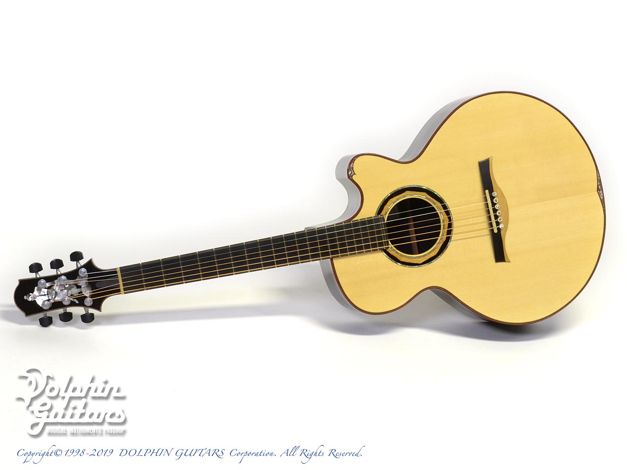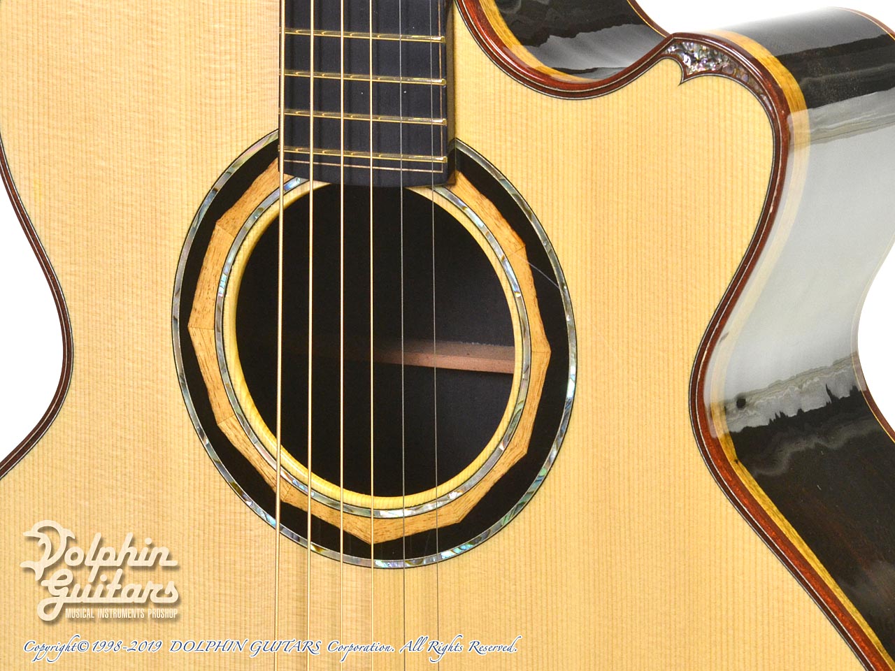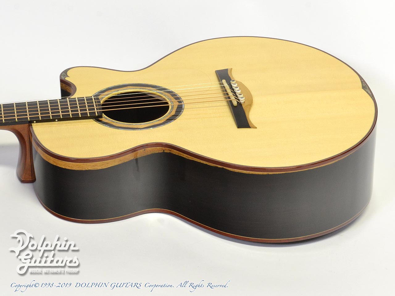 均整のとれた美しいジャーマン・スプルースをトップに、アフリカン・ブラックウッド・サイド&バック、エボニー指板、アフリカン・ブラックウッド・ブリッジ&ロゼッタ、ゴトー510糸巻き、カスタムヘッドインレイ。