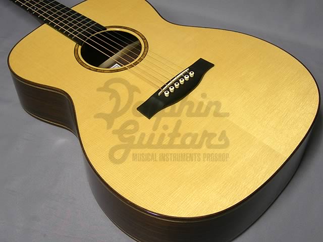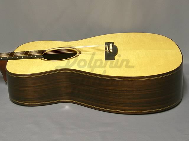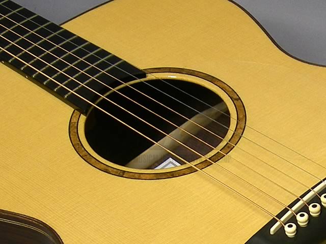 鈴川弘也氏製作。 その工作精度、完成度の高さは、ベテラン・ルシアーとも思える程。 本器は初期の作品である000モデル、2002年製、M-000のUSED品。 イングルマンスプルース・トップ、インディアンローズウッド・サイド&バック、ホンデュラスマホガニーネック、エボニー指板。 低音〜高音全域にわたり芯があり、特に密度の高い低音域は特筆ものです。 年間製作本数も極めてわずかな為、非常に入手が困難です。