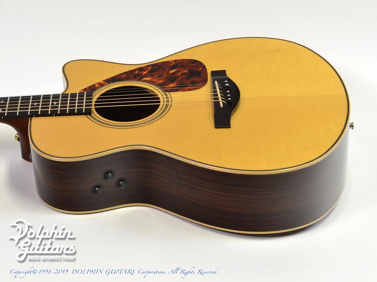 イングルマン・スプルース・トップ(A.R.E.)、ローズウッド・サイド&バック、マホガニー・ネック、エボニー指板&駒、カッタウェイ、System60Ⅱ。