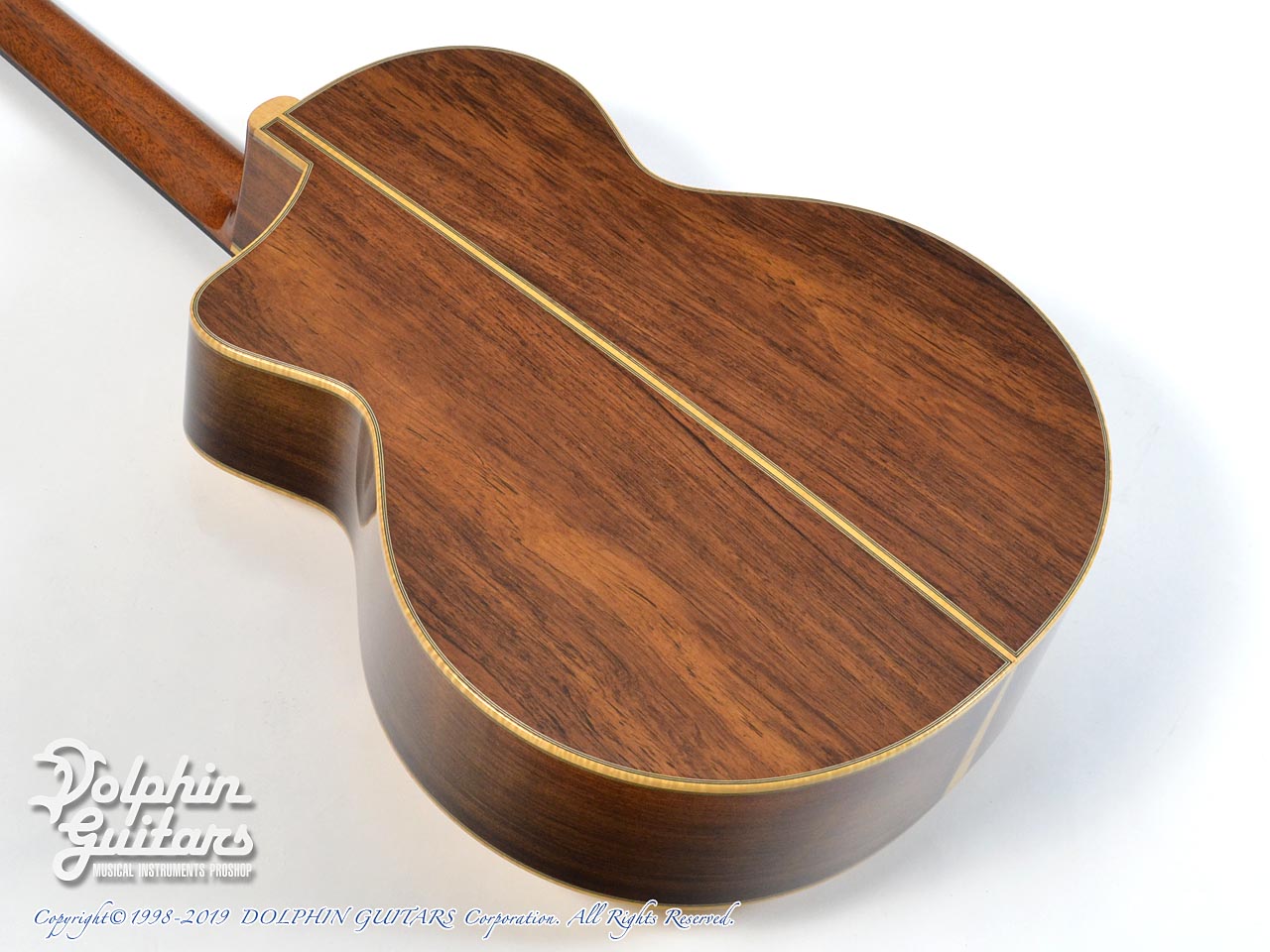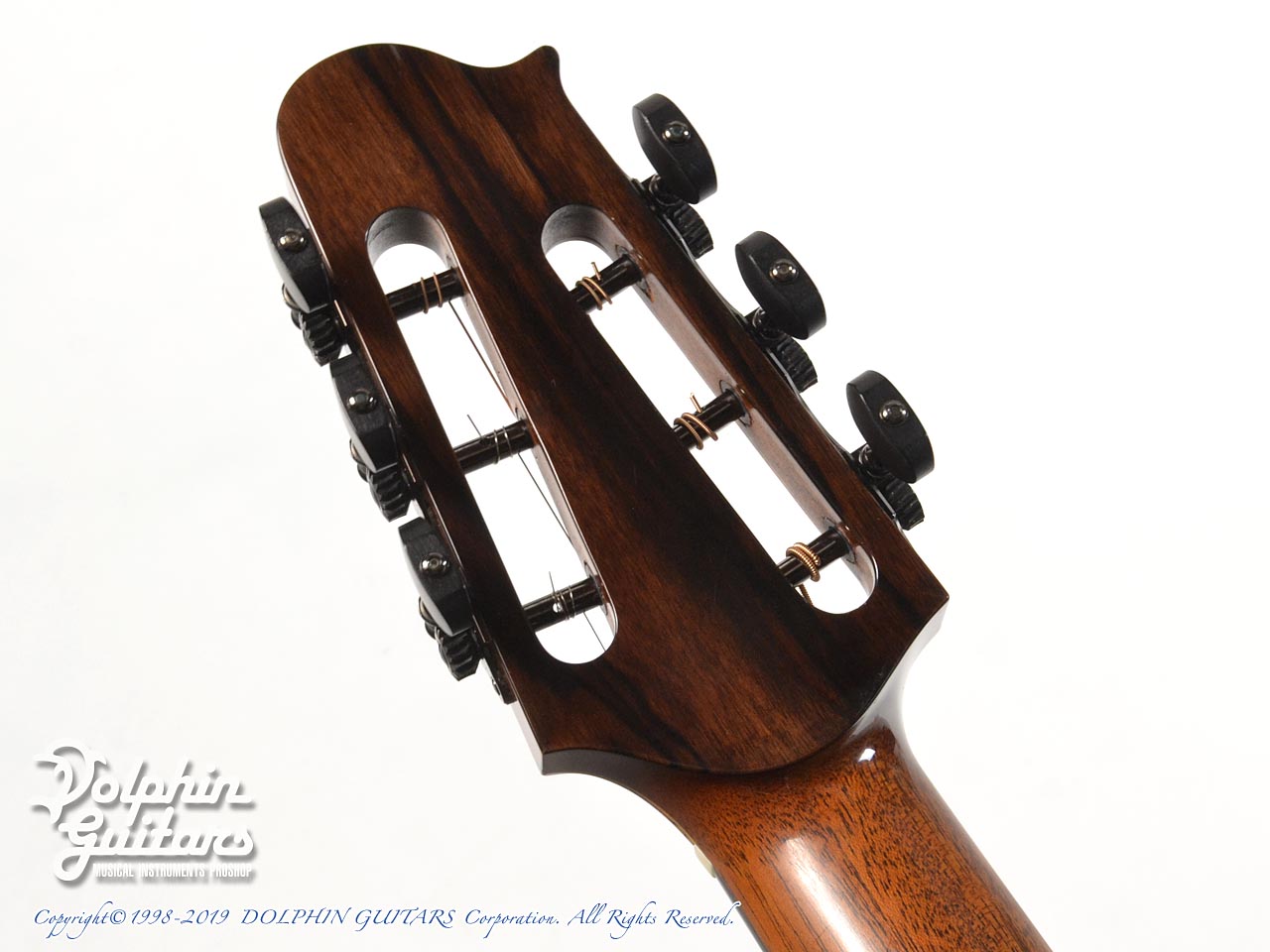 上質なアディロンダック・スプルースをトップに、厳選されたマダガスカル・ローズウッドをサイド&バックに使用、エボニー・フィンガーボード、ハカランダ・ブリッジ、スモール・ドットポジション(オプション)、SUGITA KENJI特注GOTOH糸巻き。
