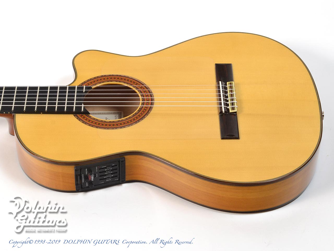 ヨーロピアン・スプルース・トップ、シープレス・サイド&バック、エボニー・フィンガーボード、ローズウッド・ブリッジ、Fishman Prefix Pro Blend搭載。
