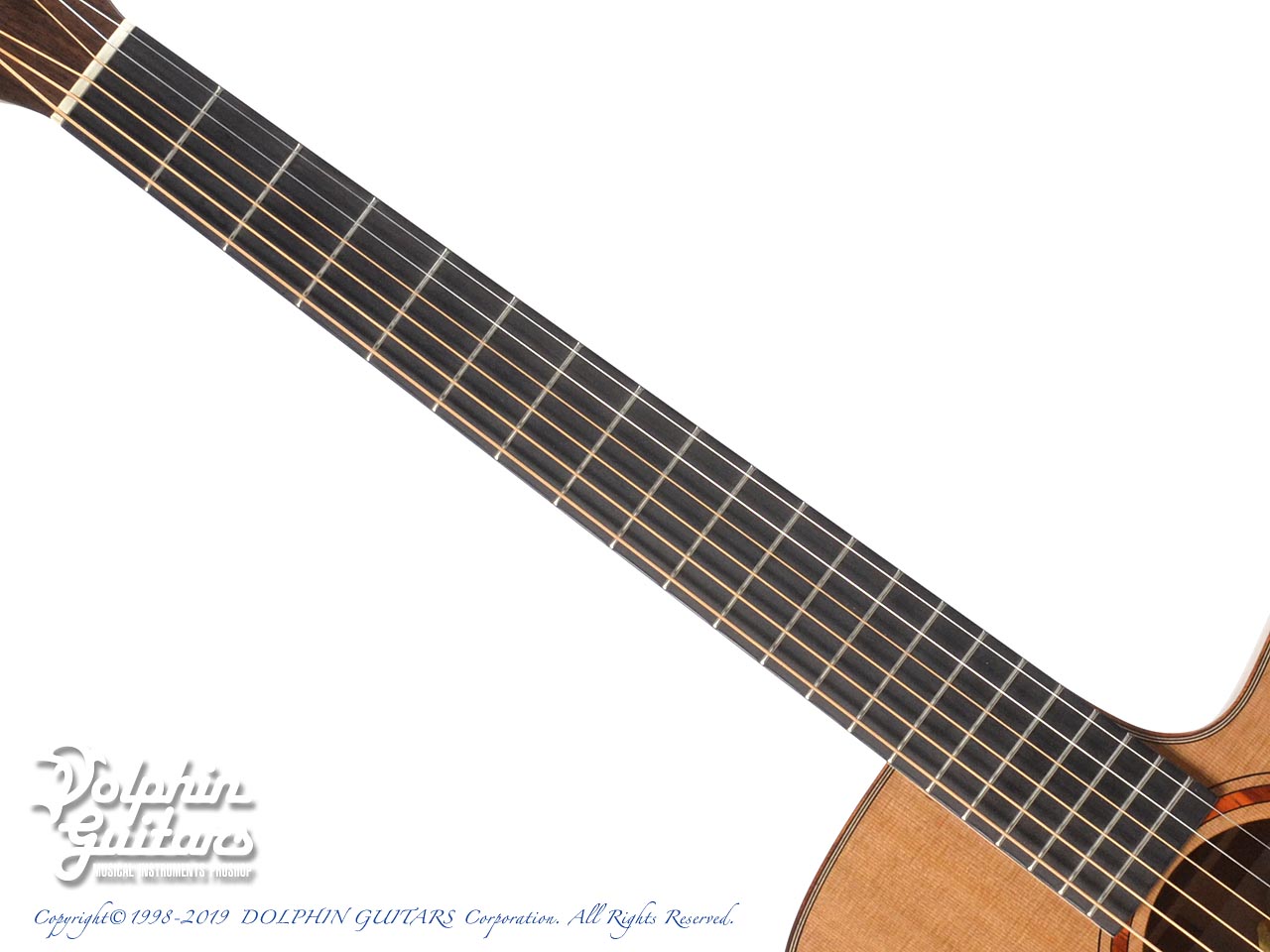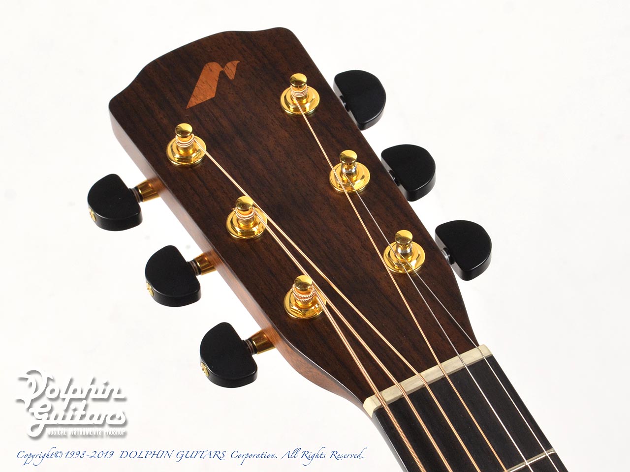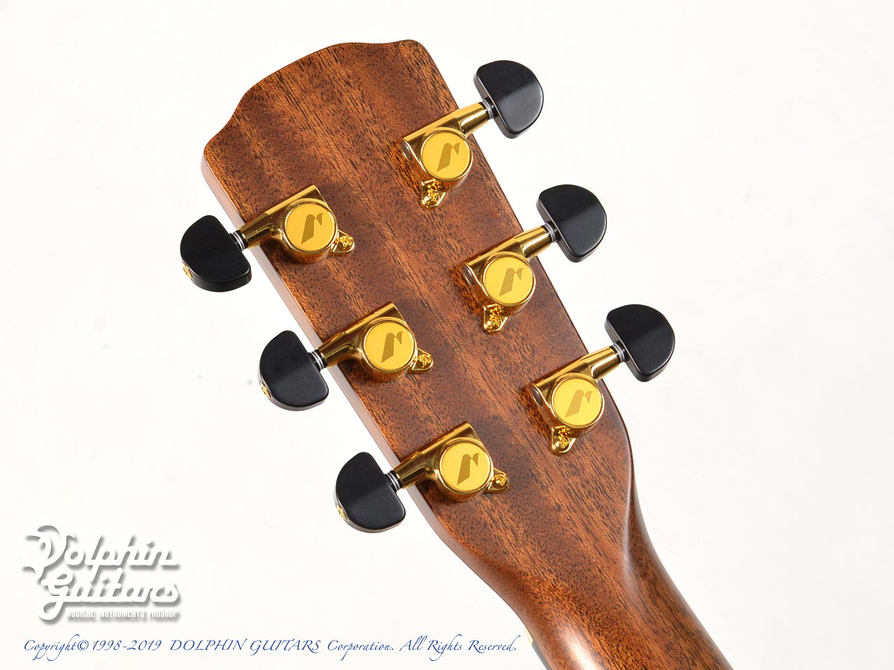 シダー・トップ、マホガニーサイド&バック、マホガニーネック、エボニー指板&ブリッジ、ピンレス・スルーブリッジ、ゴトー糸巻き仕様。