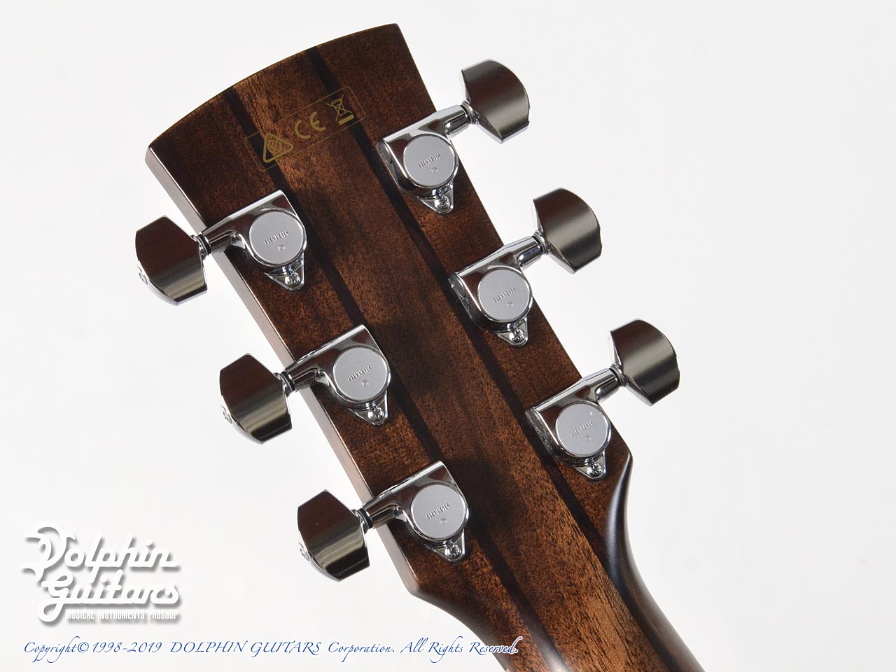 アルパイン・スプルース・トップ、パーフェロー・サイド&バック、マホガニー&パーフェロー・5pネック、エボニー指板&駒、メイプル・バインディング、アバロン&パーフェローロゼッタ、ゴトー糸巻き、セミグロスフィニッシュ。