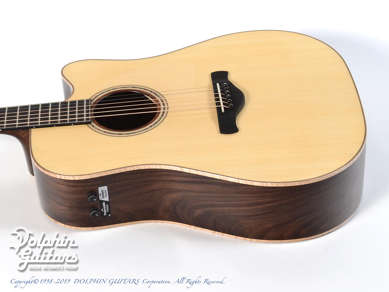 生鳴りは非常にナチュラル。スラム奏法などストローク弾き中心のフィンガースタイル向けボディシェイプとして開発されたややシャロウなドレッドノート。スピード感ある迫力に加え、歯切れ良さ、音の粒立ちを獲得しています。幅広で薄めのネックはスムーズなフィンガリングを約束し、ローアクションセッティングとともに思うがままにコントロールできるでしょう。