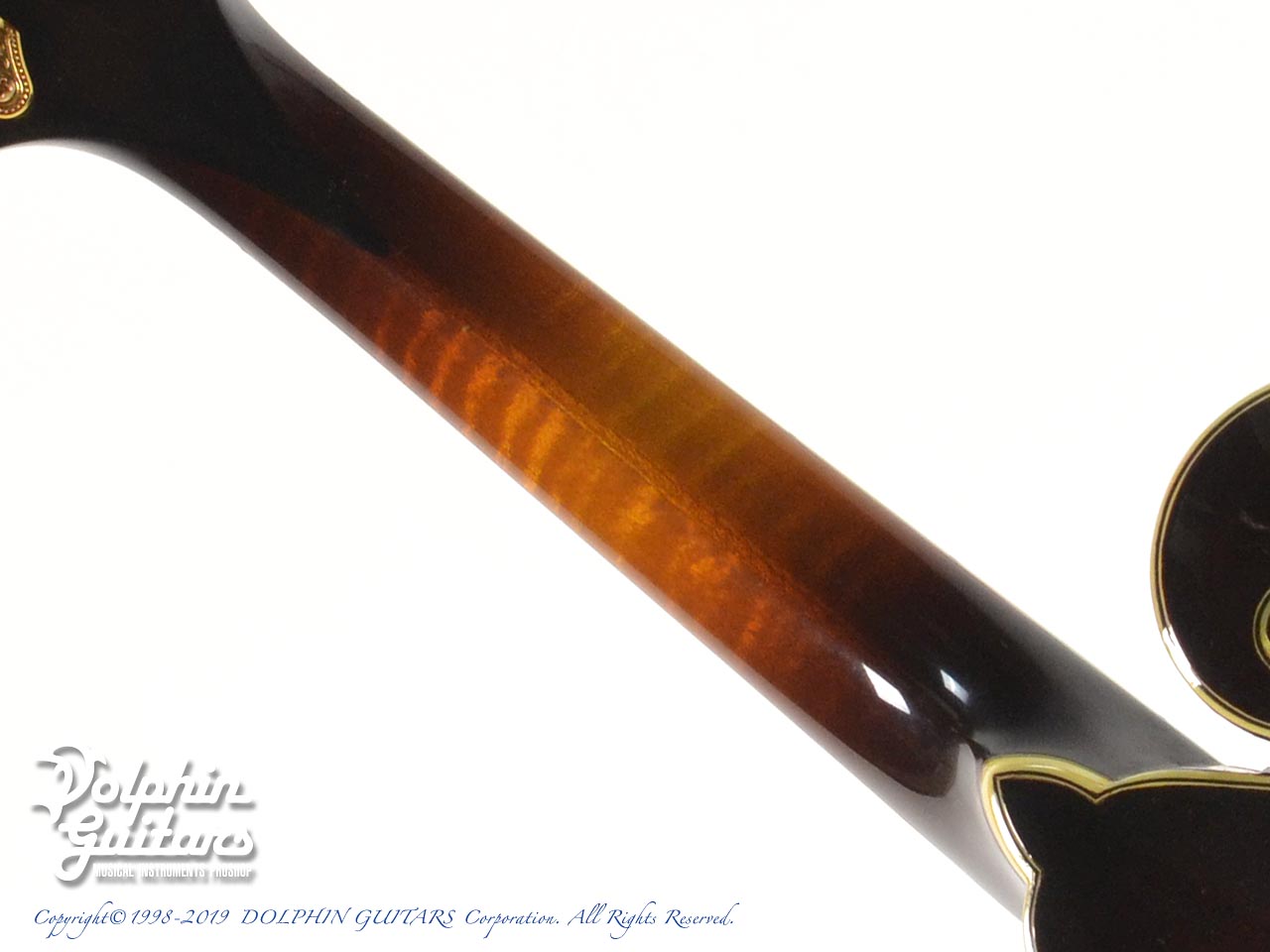 GIBSONのF-4がモチーフだと思われ、スクロールとオーバルホール(菱形の装飾は一つ一つノミで丁寧に開けて入れている!)のコンビネーションがクラシカルな雰囲気を醸し出しています。