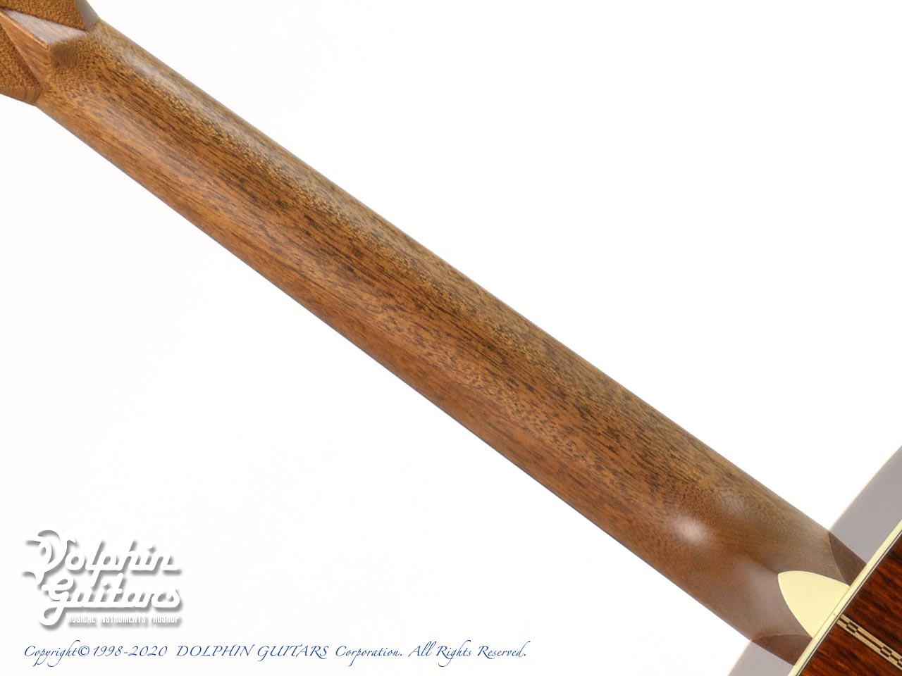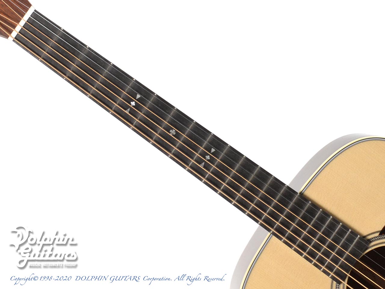 アディロンダック・スプルース・トップ、アディロンダック・ゴールデンエラスタイル・ブレーシング、ココボロ・サイド&バック、マホガニー・ネック(1 11/16 42.86mm)、エボニー指板&駒、ドロップイン・ロングサドル、ボールドヘリンボーン・ロゼッタ、ウェイバリーゴールド糸巻き、オーセンティック・スタイルロゴ。