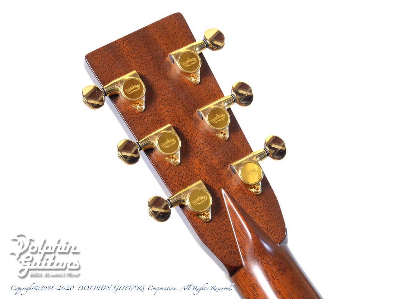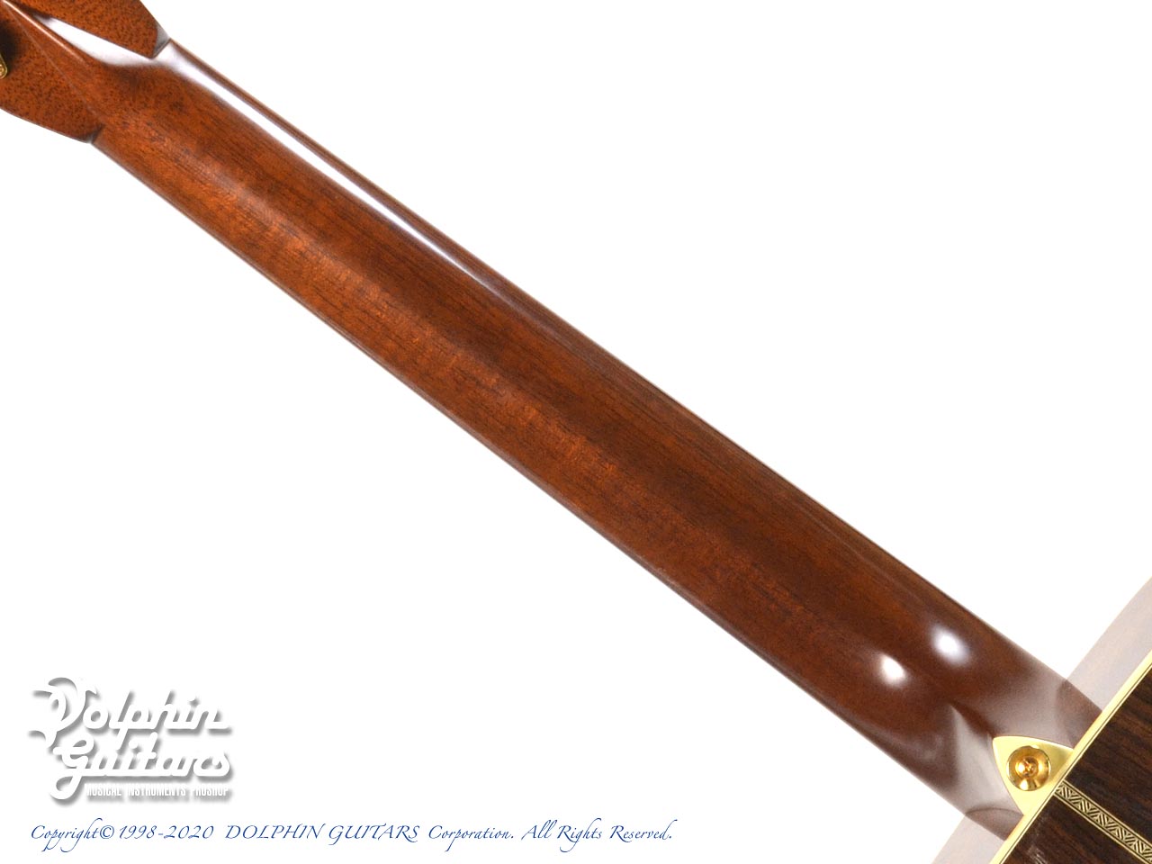 シトカ・スプルーストップ、インディアン・ローズウッドS&B、アフリカン・マホガニー1Pネック、エボニー指板&ブリッジ、43mmナット、644mmスケール、スノーフレークス指板インレイ、Gotohロトマティックペグ。