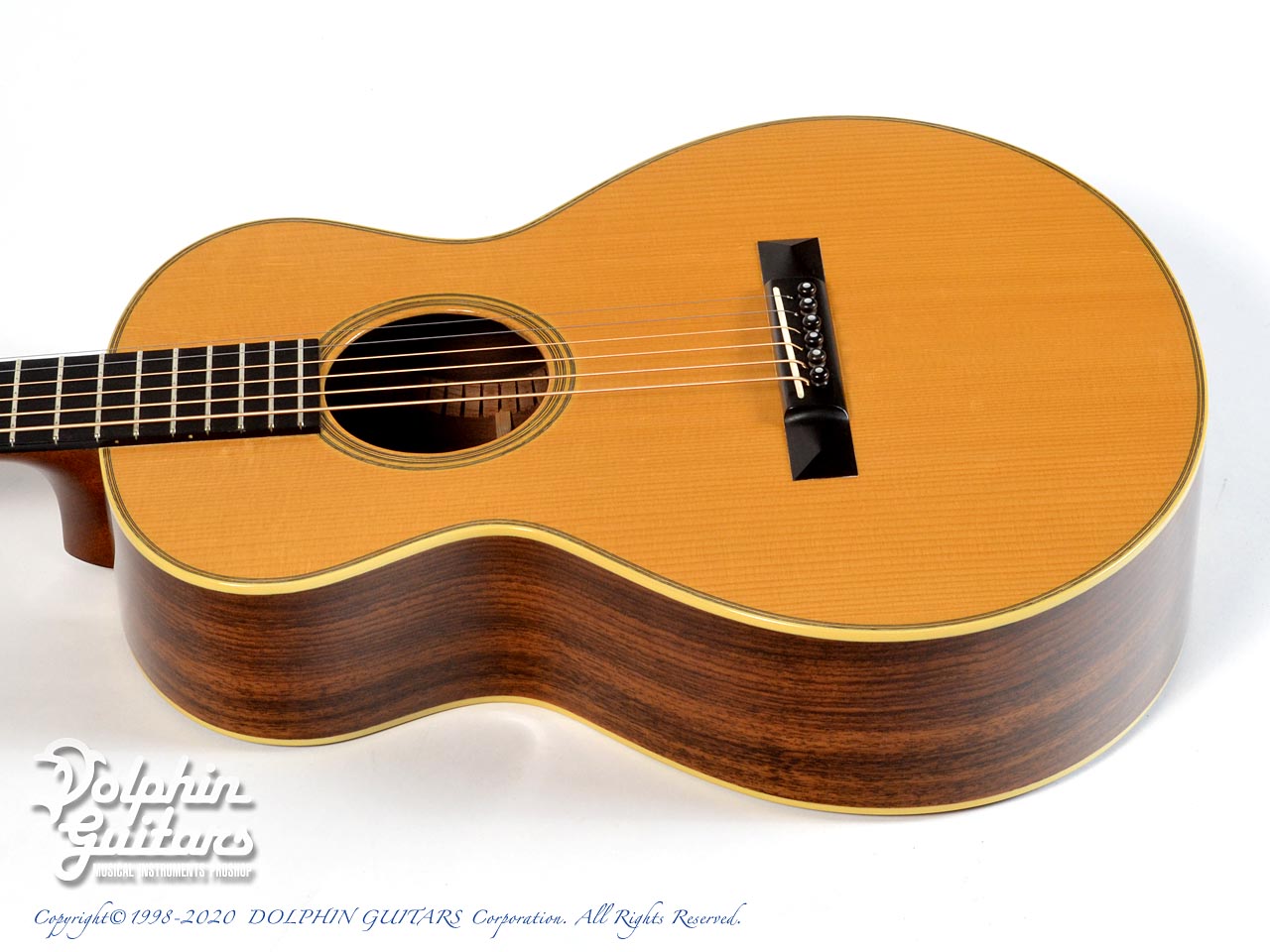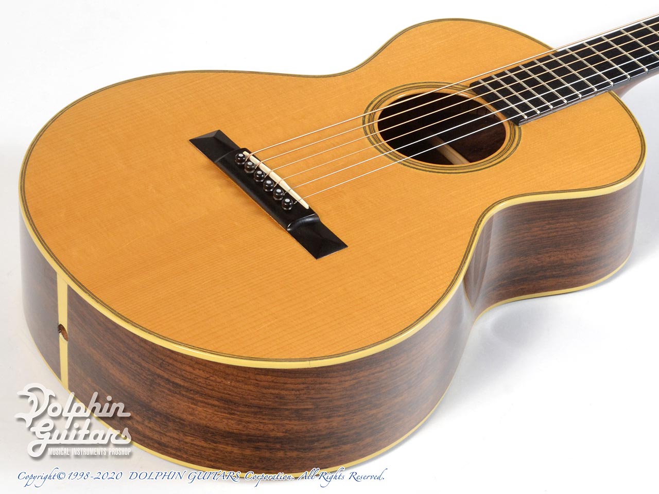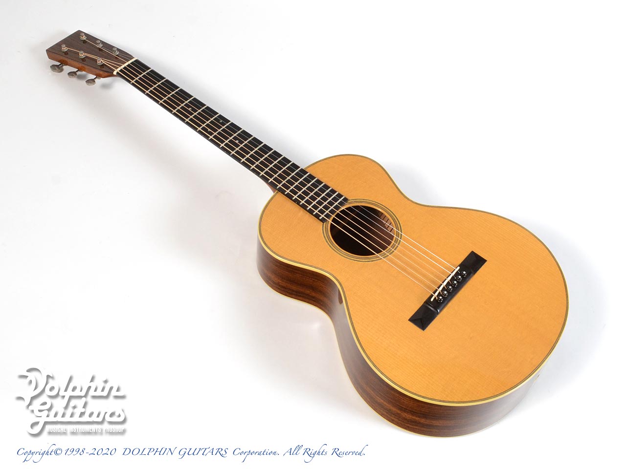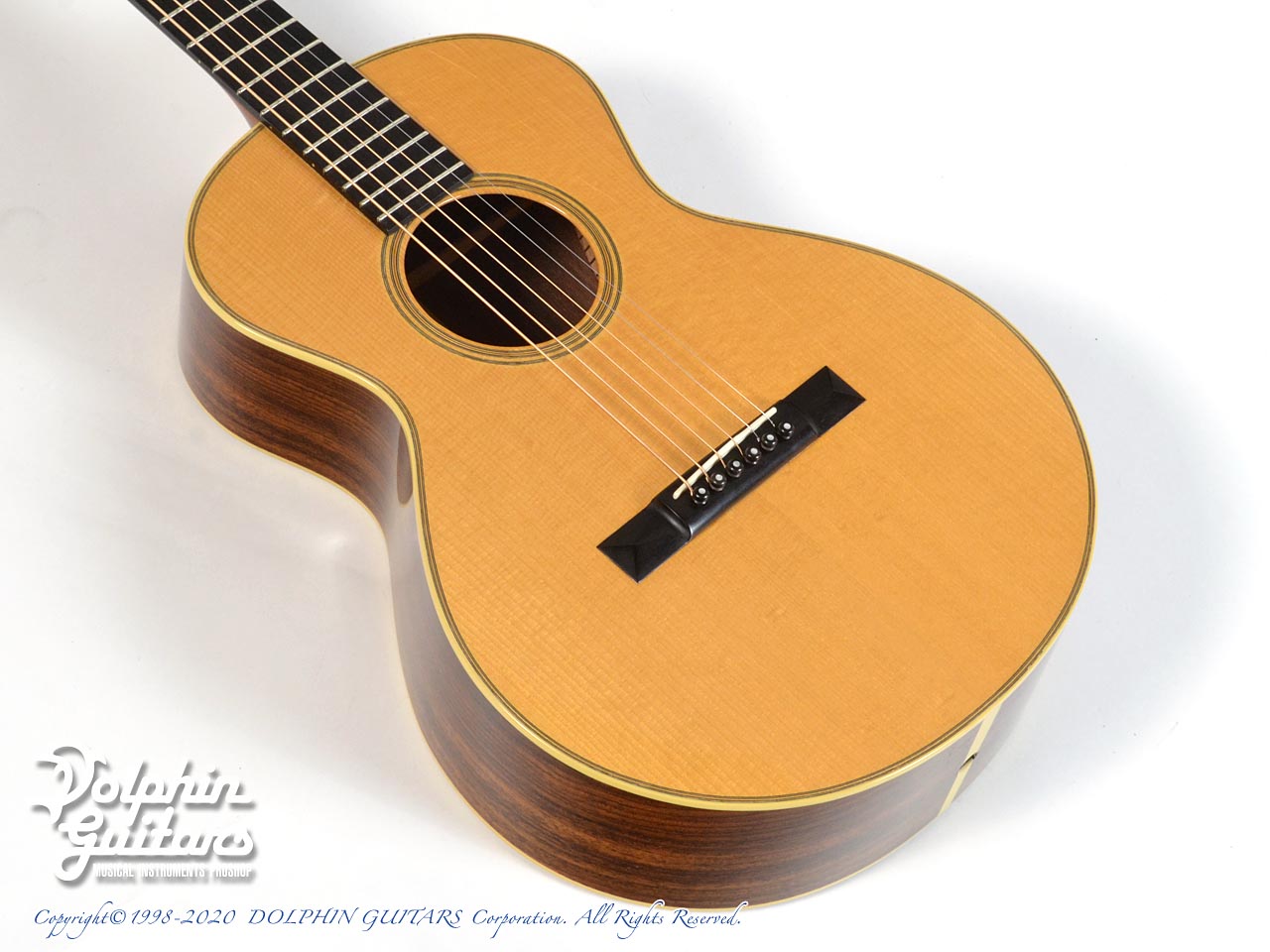 アディロンダック・スプルース・トップ、インディアン・ローズウッド・サイド&バック、マホガニー・ネック、610mmスケール、44.5mmナット幅、エボニー指板&ピラミッド駒、ウェイバリー糸巻き。