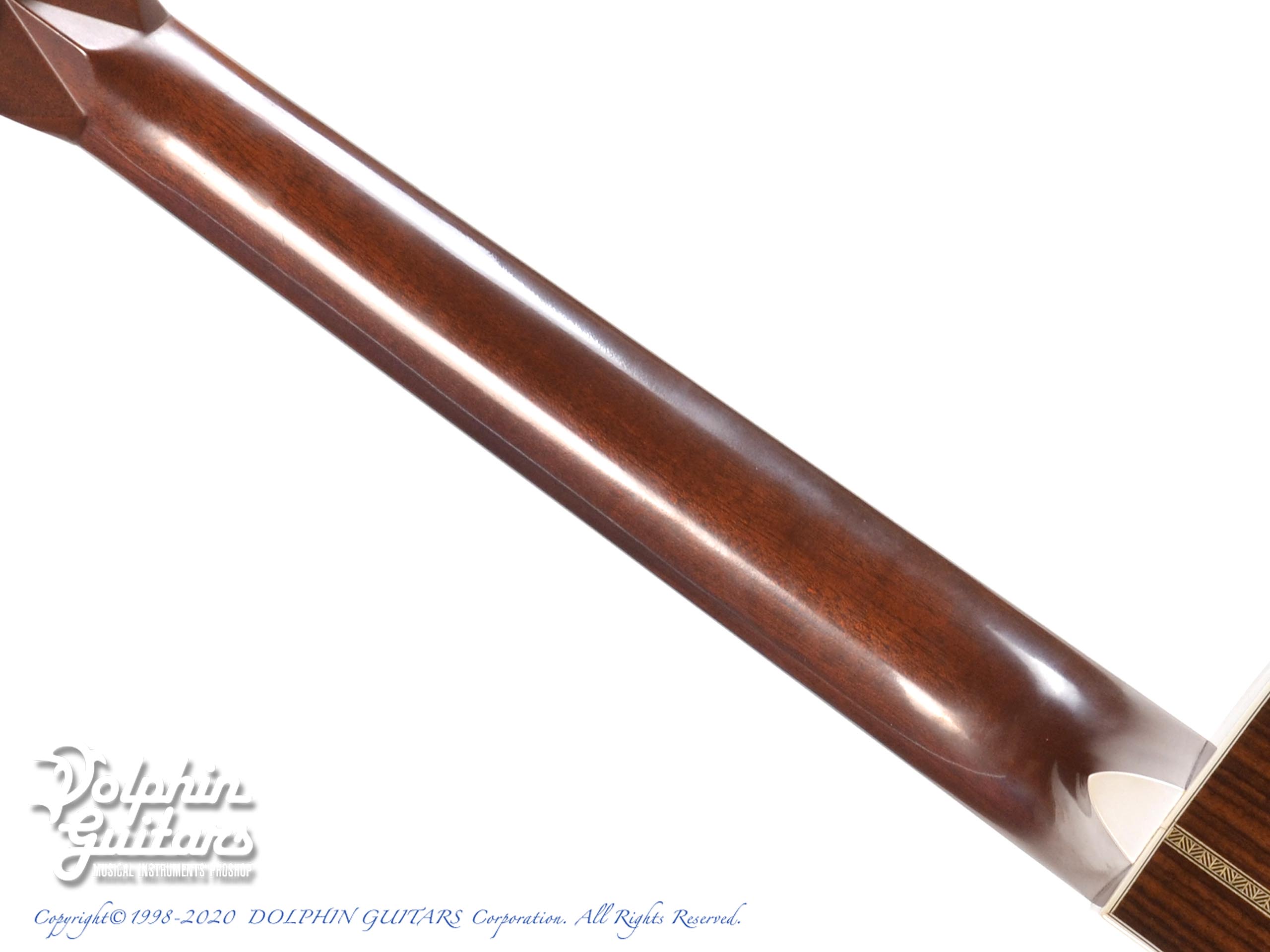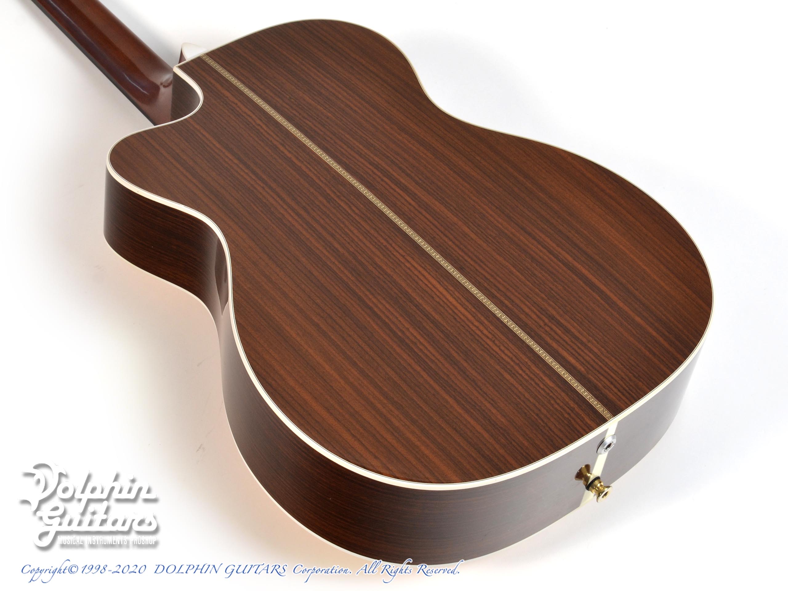 スプルーストップ、インディアン・ローズウッドS&B、セレクトハードウッドネック、エボニー指板&ブリッジ、44,5mmナット、632mmスケール、ラウンドカッタウェイ仕様。
