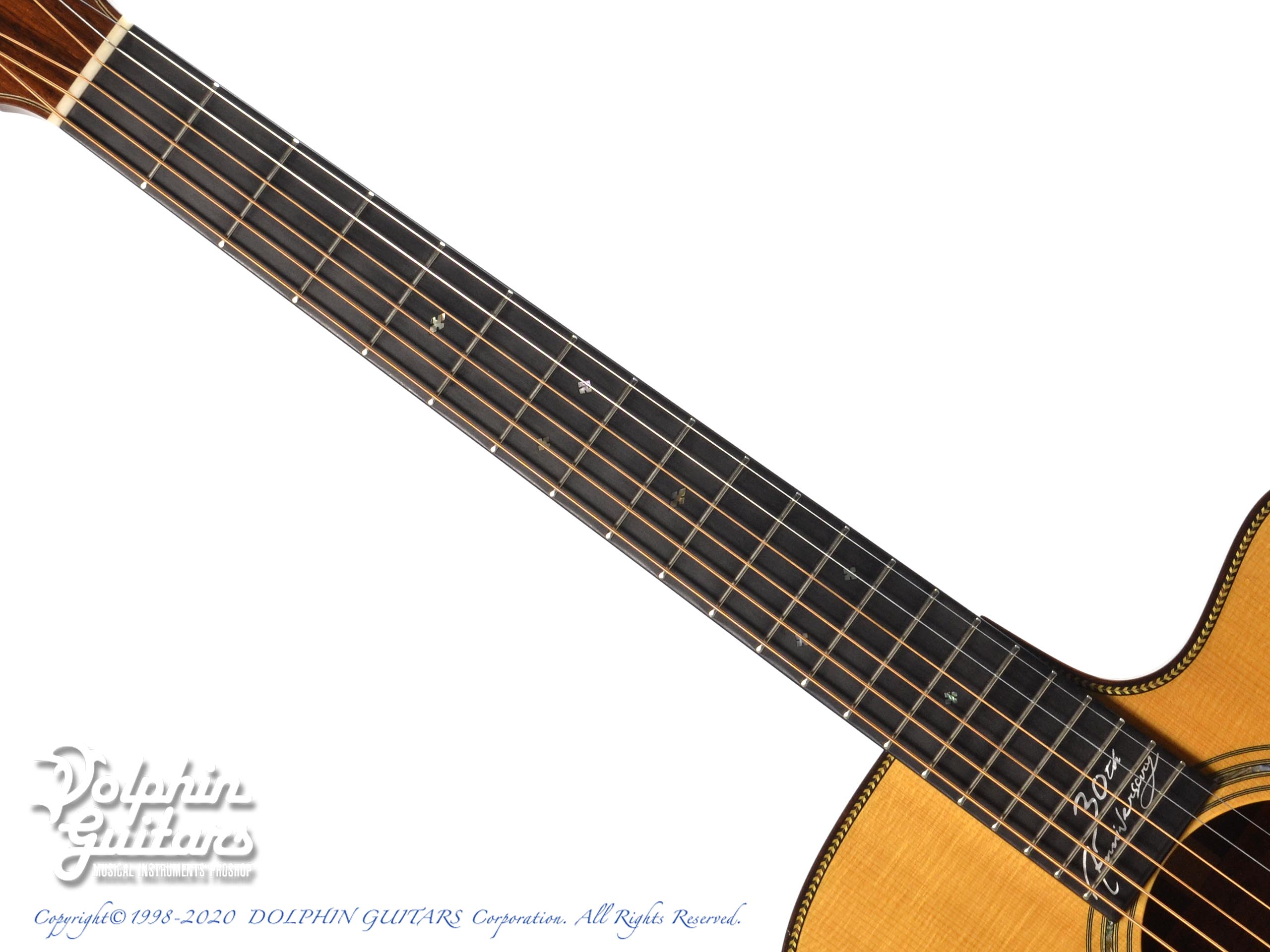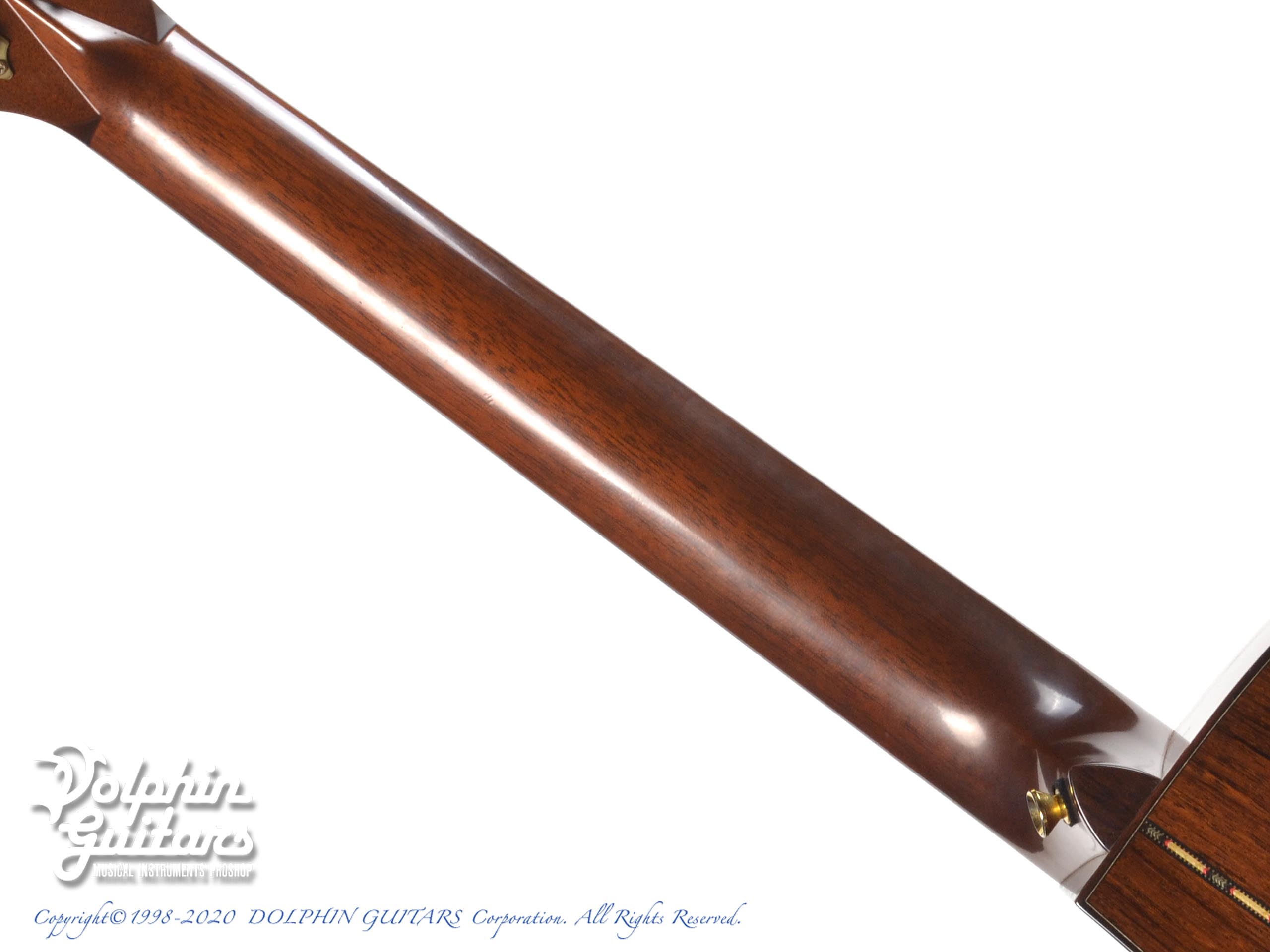 ジャーマン・スプルーストップ、マダガスカル・ローズウッドS&B、マホガニーネック(アジャスタブルロッド)、エボニー指板&ブリッジ、ウッド・バインディング、アバロントリム、ゴトーオープンバック糸巻き仕様。