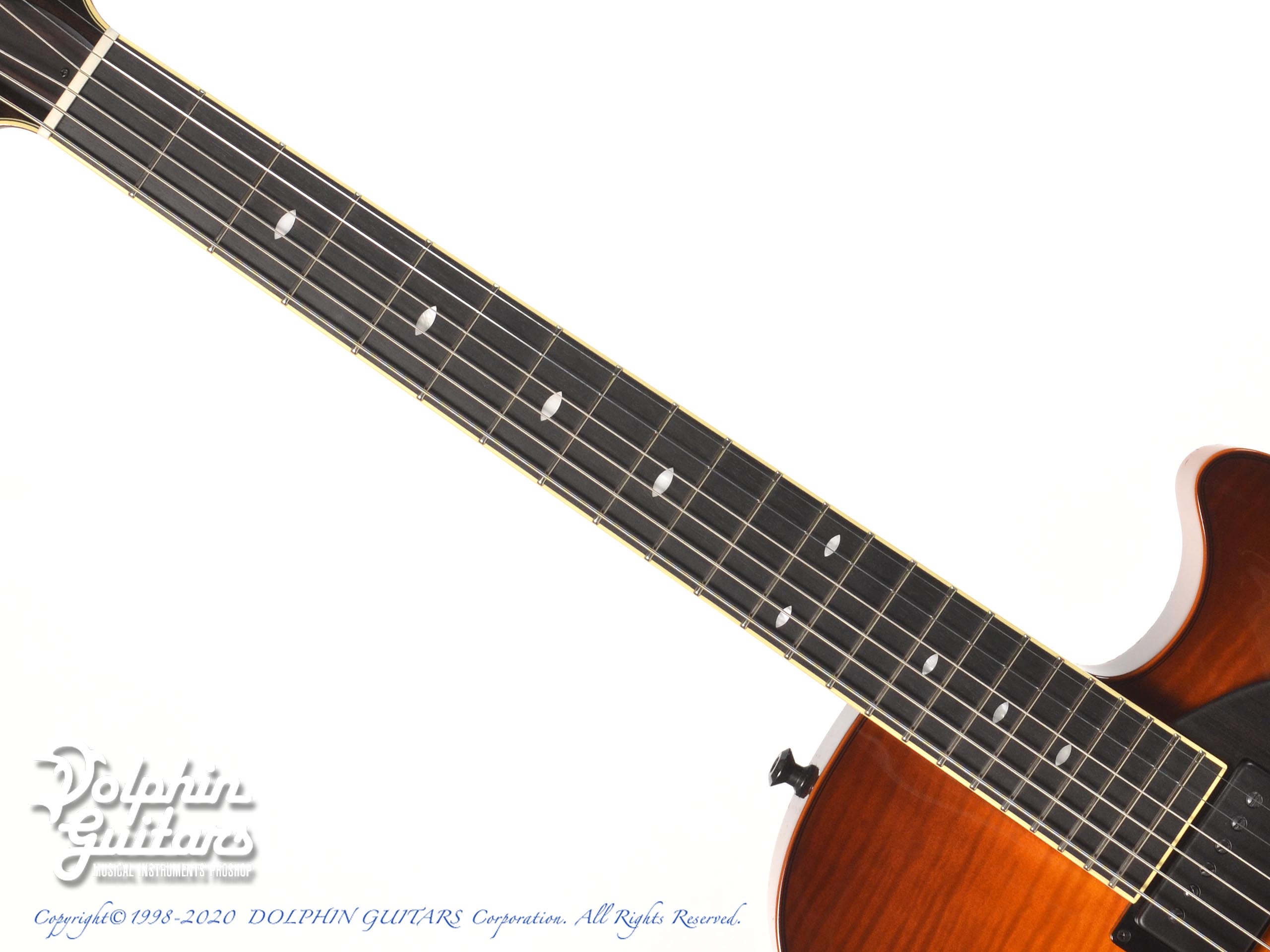 5プライ・ラミネイテッド・フレイム・メイプル・ボディ、マホガニー・ネック、エボニー指板&駒、オリジナルPU、ゴトー糸巻き。