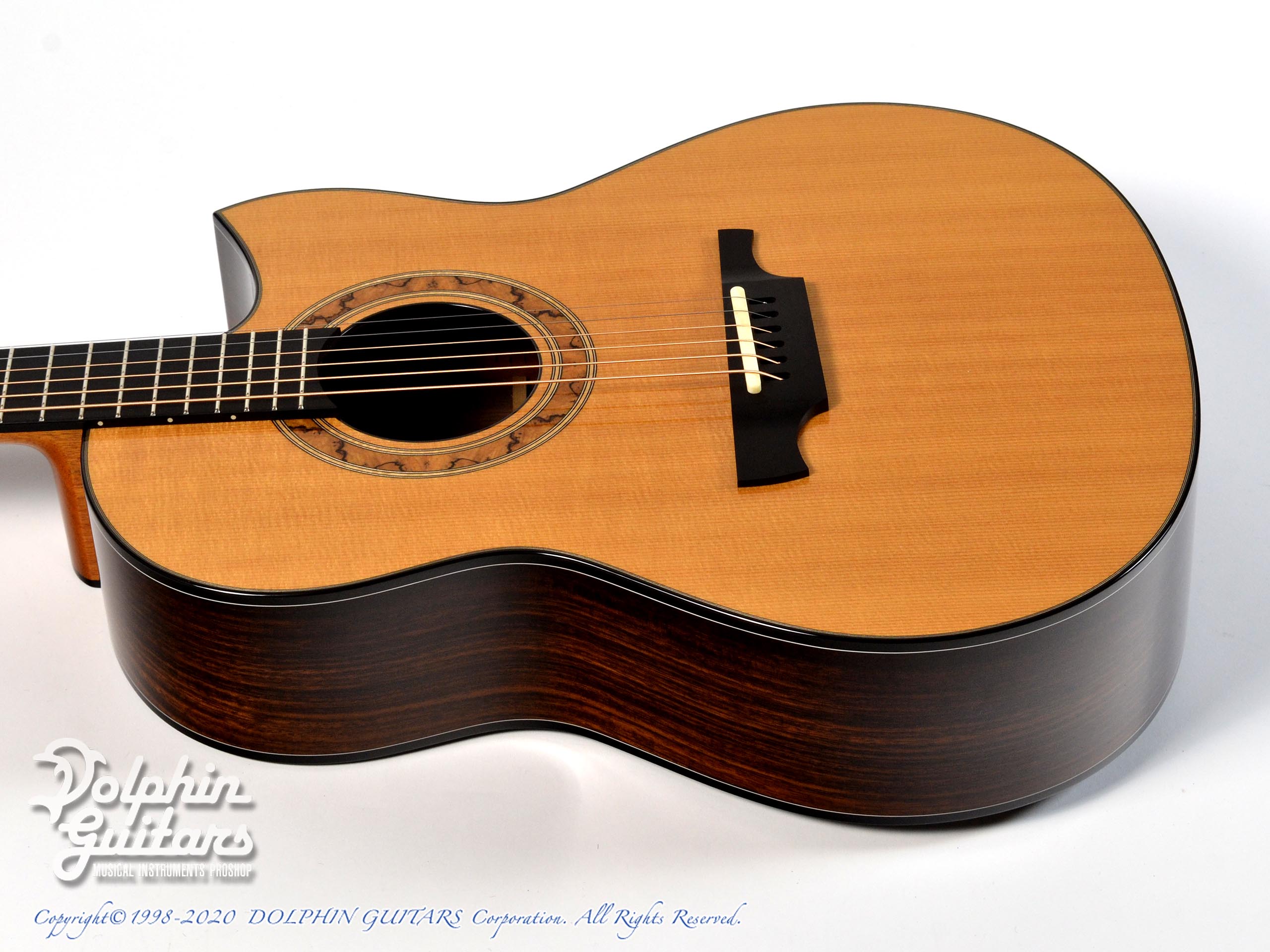 本器はOMスタイルより僅かに大きいGF (Indian Rosewood) with Cutaway。