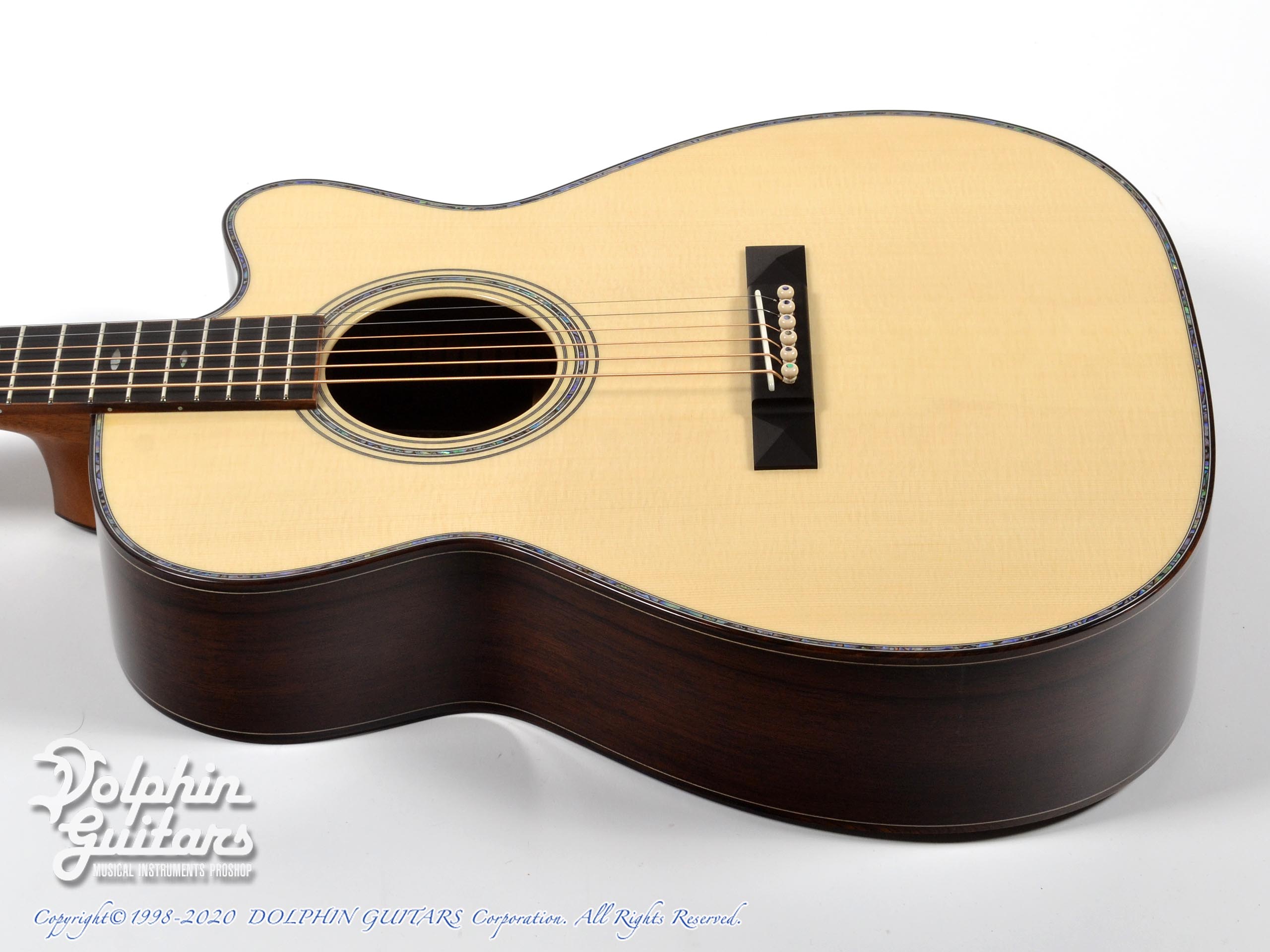 ジャーマン・スプルース・トップ、マスターグレード・マダガスカル・ローズウッド・サイド&バック、エボニー指板&駒、ピラミッドブリッジ。