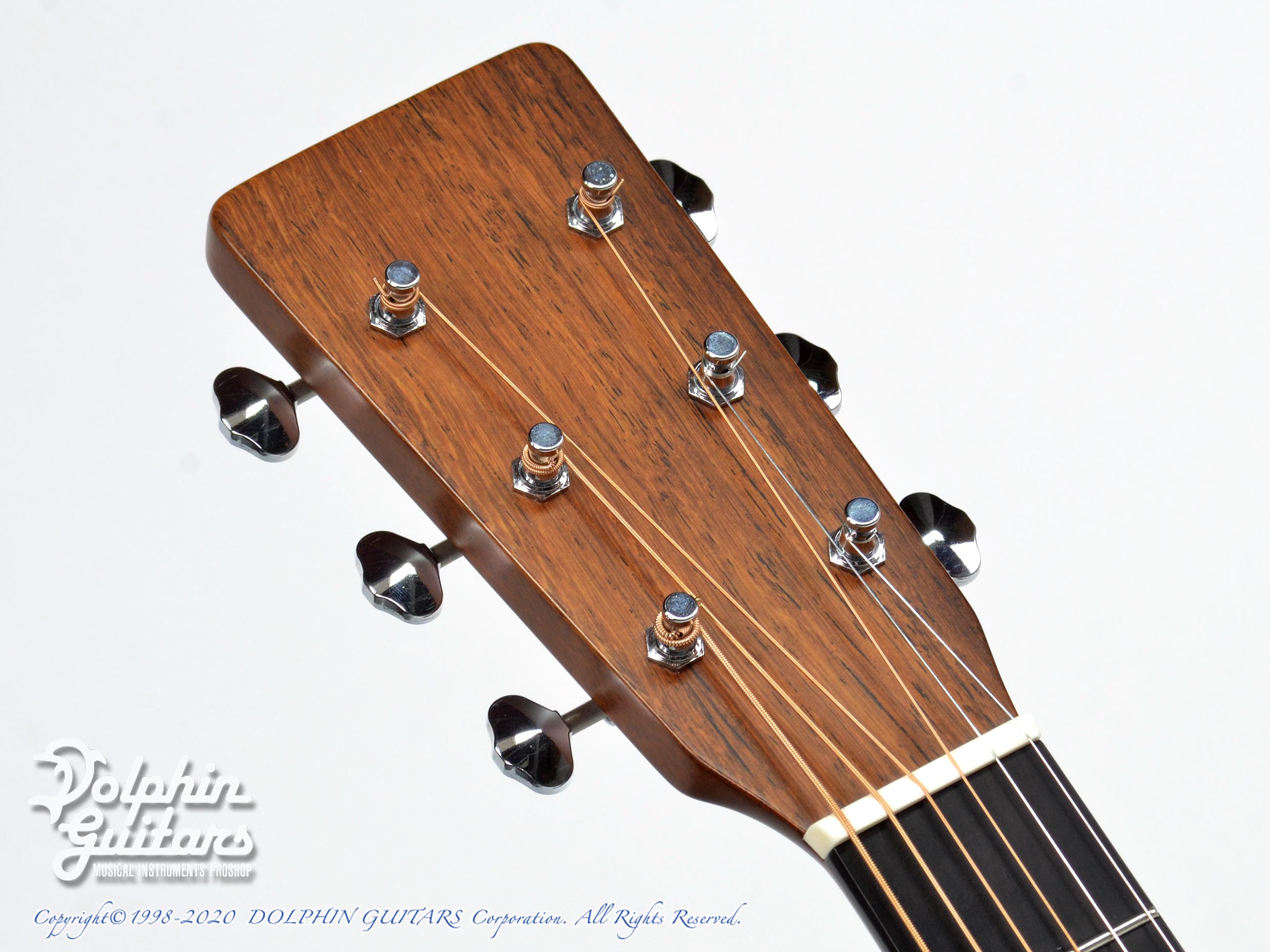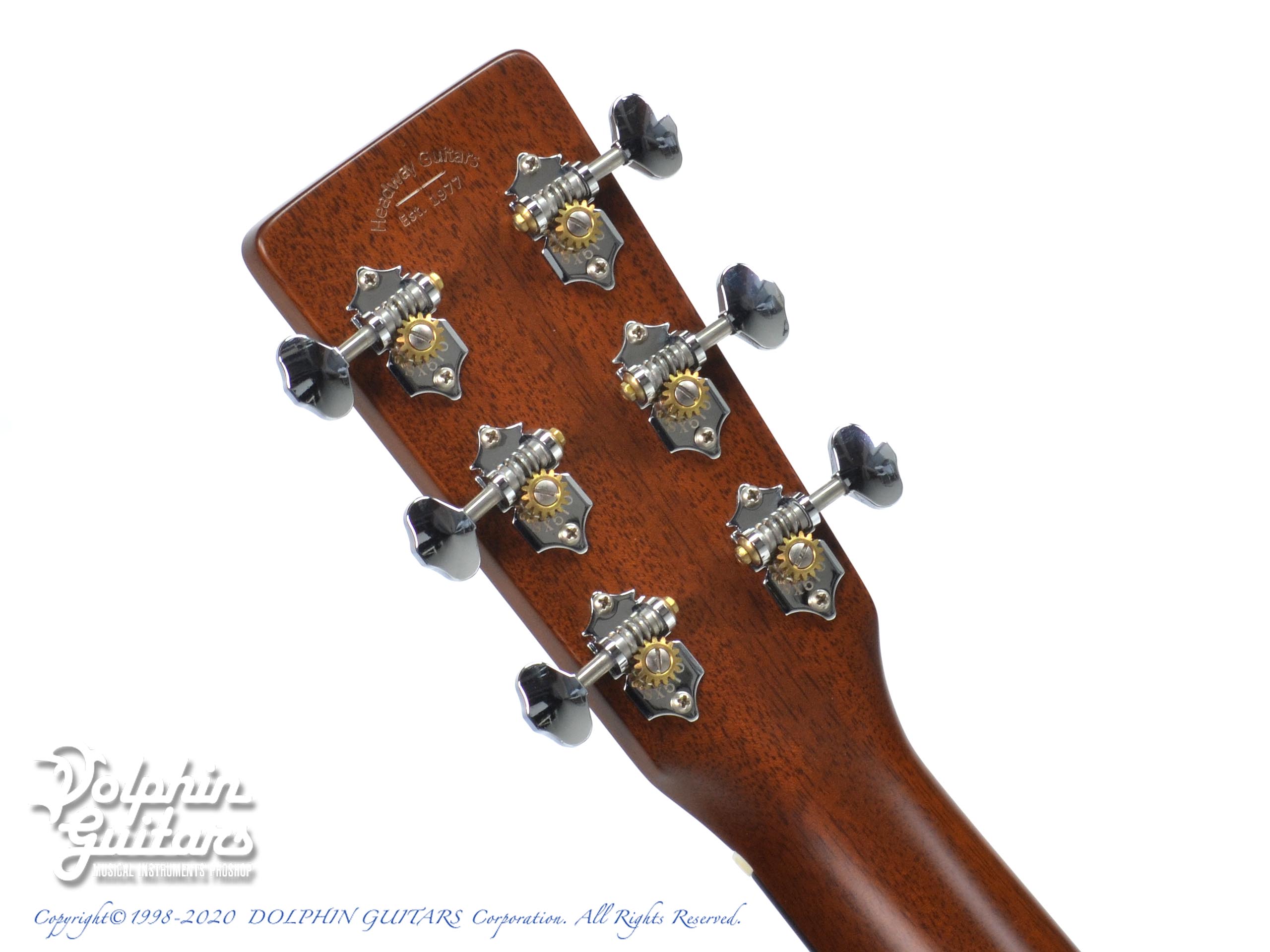 ジャーマン・スプルーストップ、ヴィンテージ・マホガニーS&B、マホガニーネック(アジャスタブルロッド)、エボニー指板&ブリッジ、リアシフト・スキャロップドXブレーシング、000ピックガード、Gotohペグ仕様。